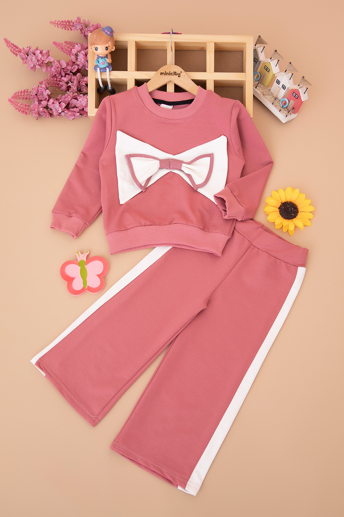Kız Çocuk Büyük Fiyonklu Çift Renkli Takım (2-10 Yaş)