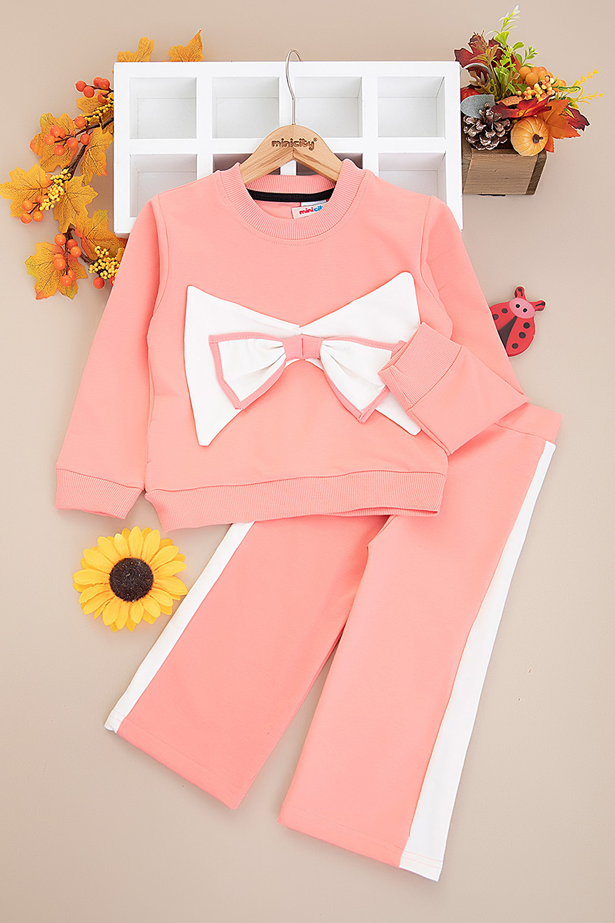 Kız Çocuk Büyük Fiyonklu Çift Renkli Takım (2-10 Yaş)