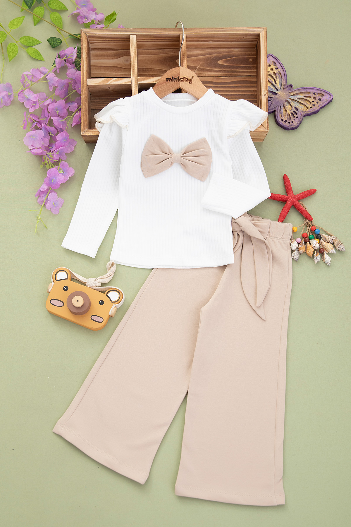 Kız Çocuk Büyük Fiyonklu Fitilli Takım - 2036 (2-5 Yaş)