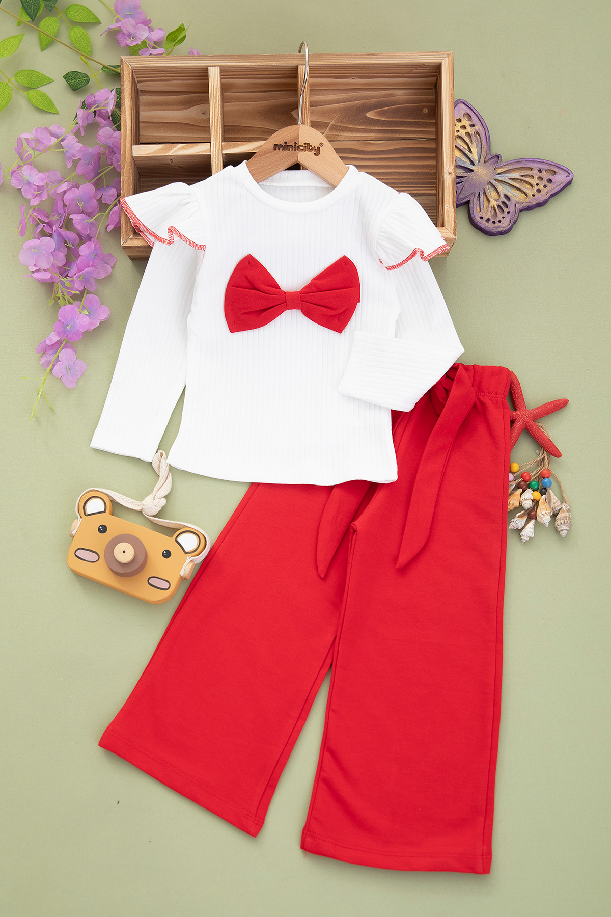 Kız Çocuk Büyük Fiyonklu Fitilli Takım - 2036 (2-5 Yaş)