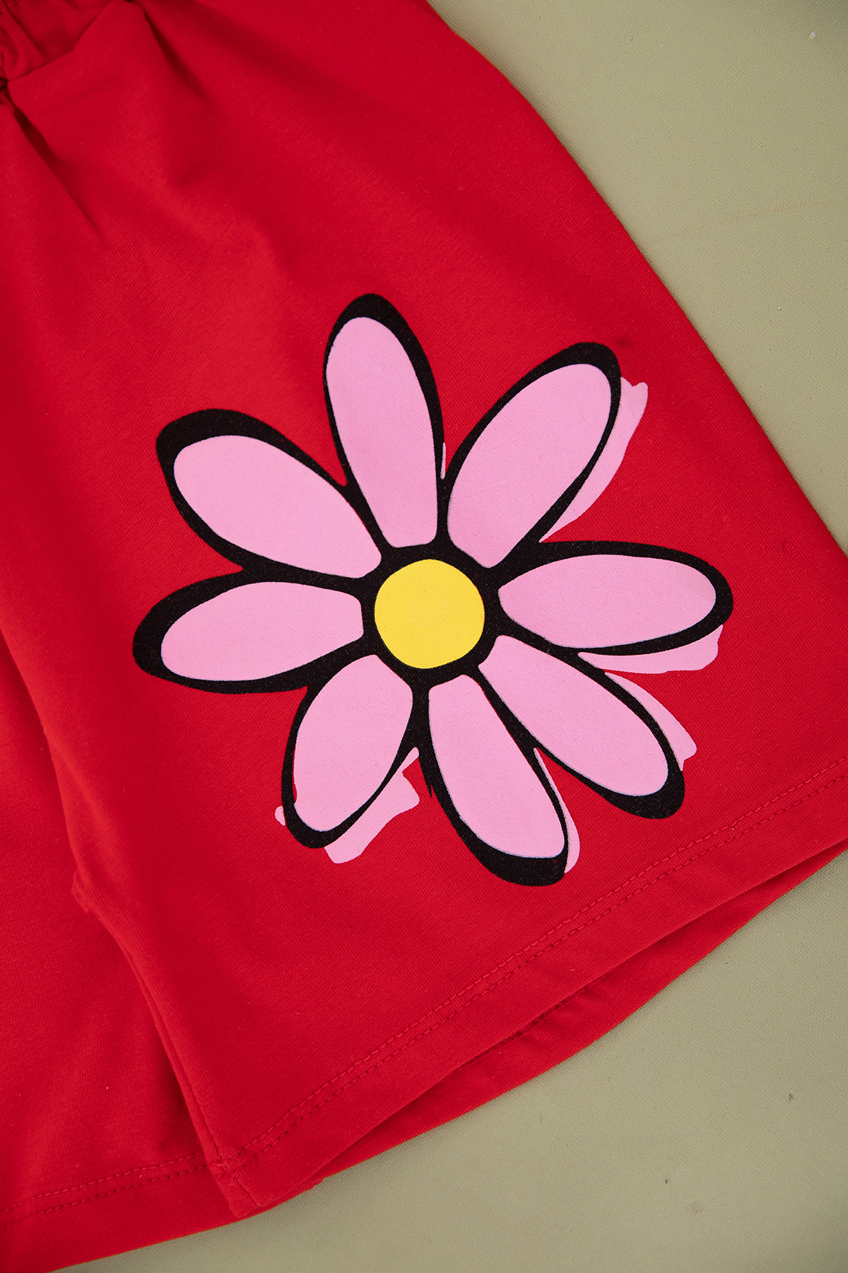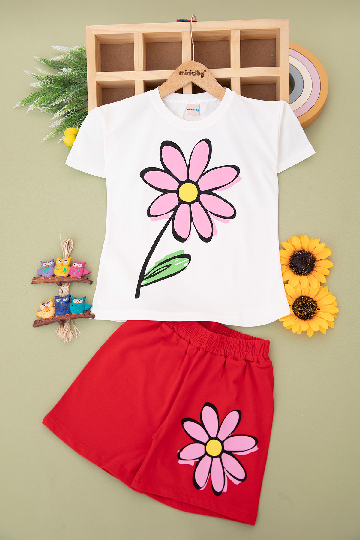 Kız Çocuk Büyük Papatya Şortlu Takım (5-14 Yaş)