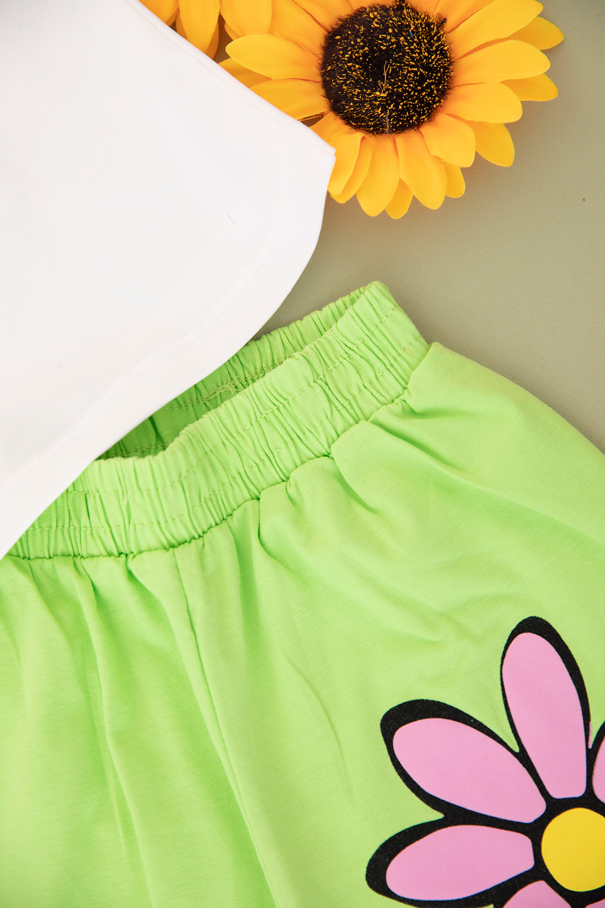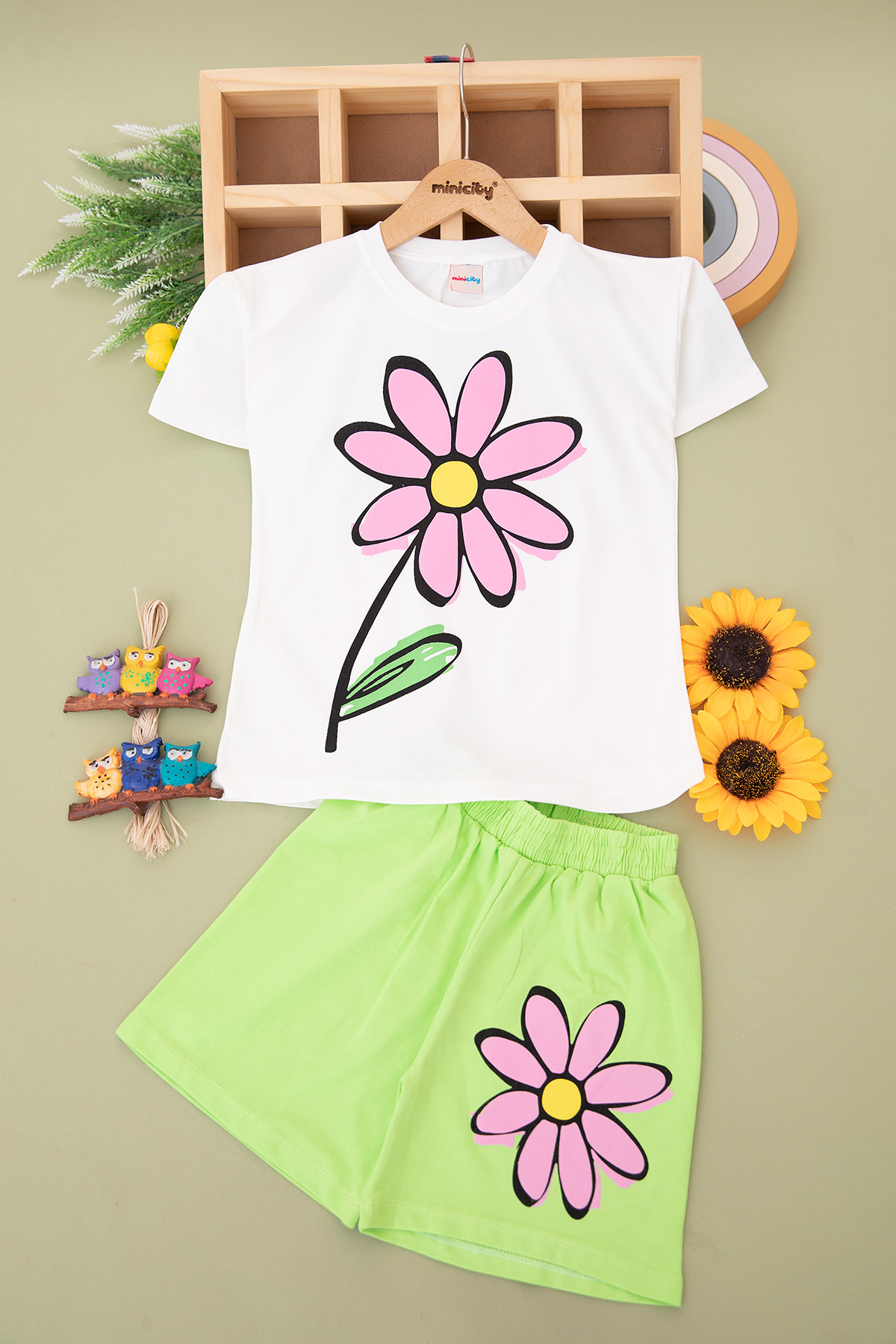 Kız Çocuk Büyük Papatya Şortlu Takım (5-14 Yaş)
