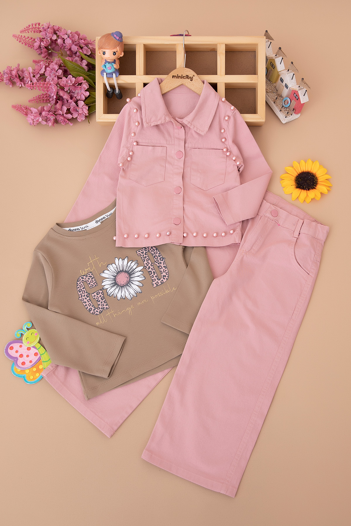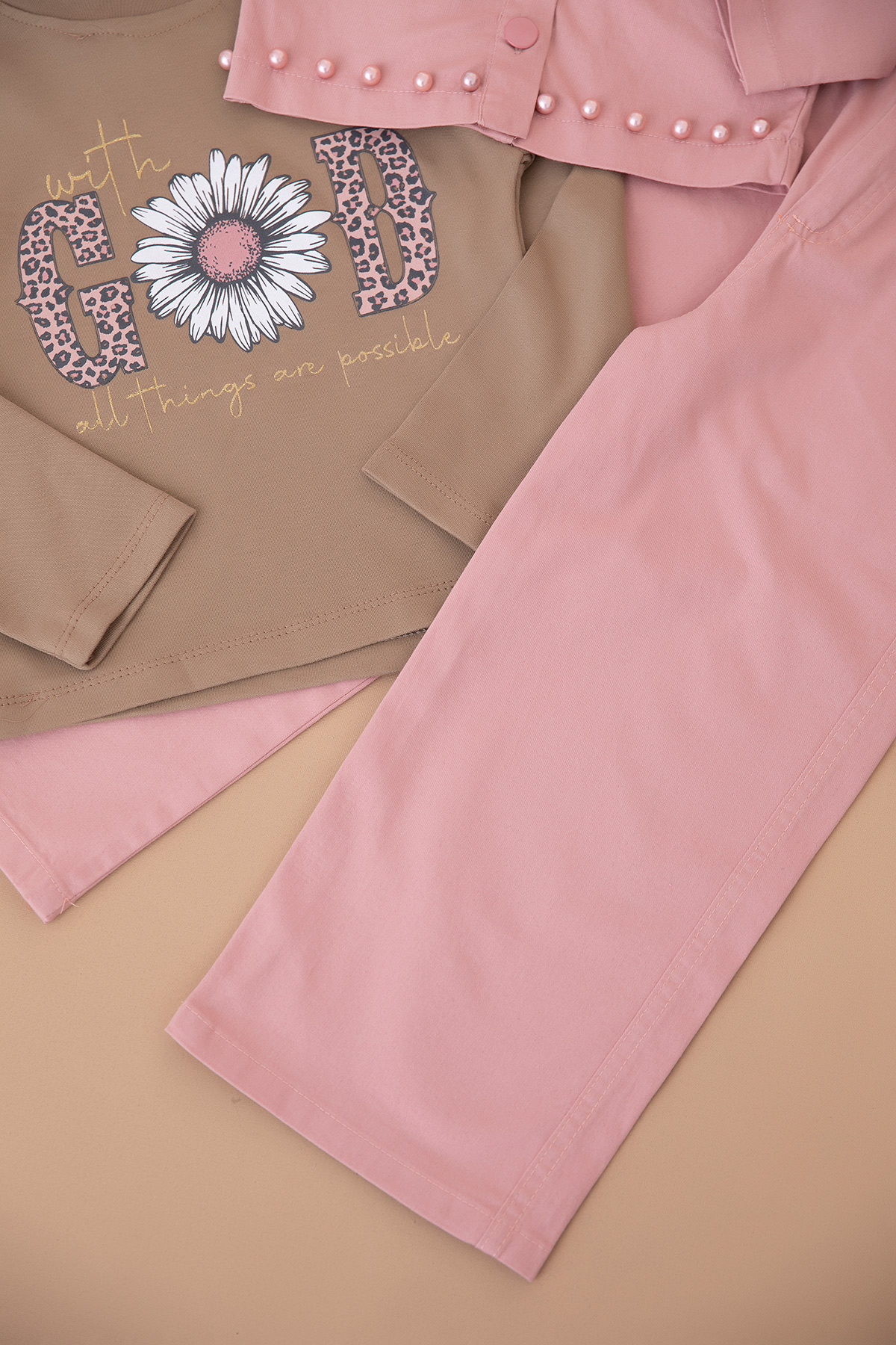 Kız Çocuk Çakma İncili Gabardin Takım - 50720 (5-8 Yaş)
