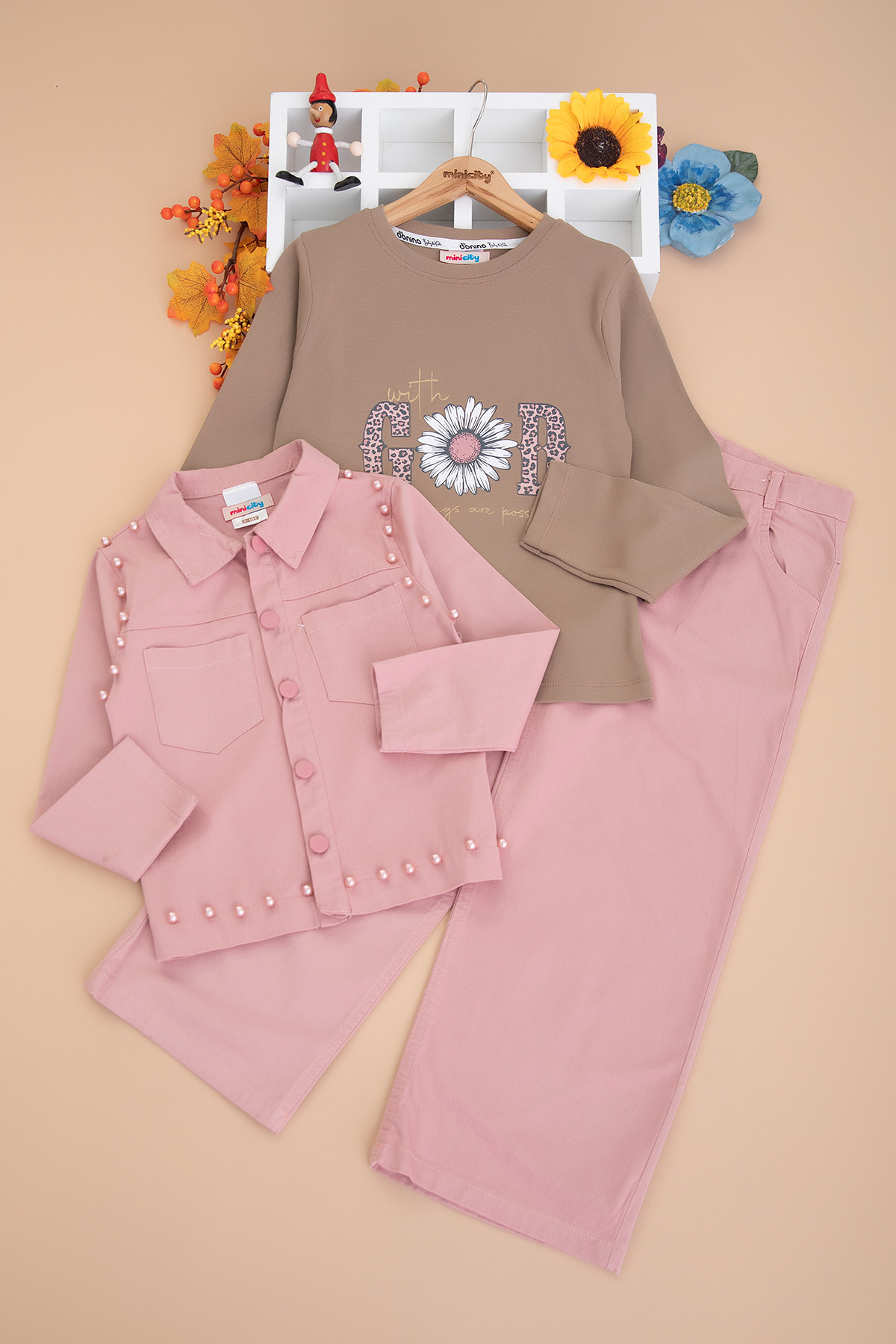 Kız Çocuk Çakma İncili Üçlü Takım - 50721 (9-12 Yaş)