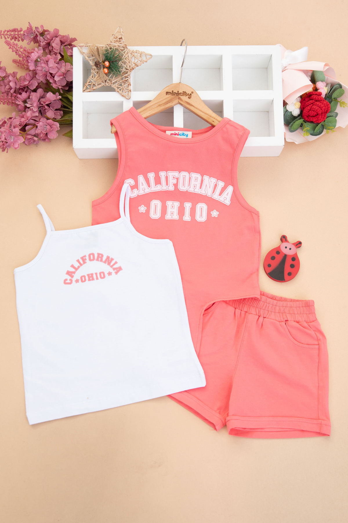 Kız Çocuk California Baskılı Şortlu Takım - 26503 (3-6 Yaş)