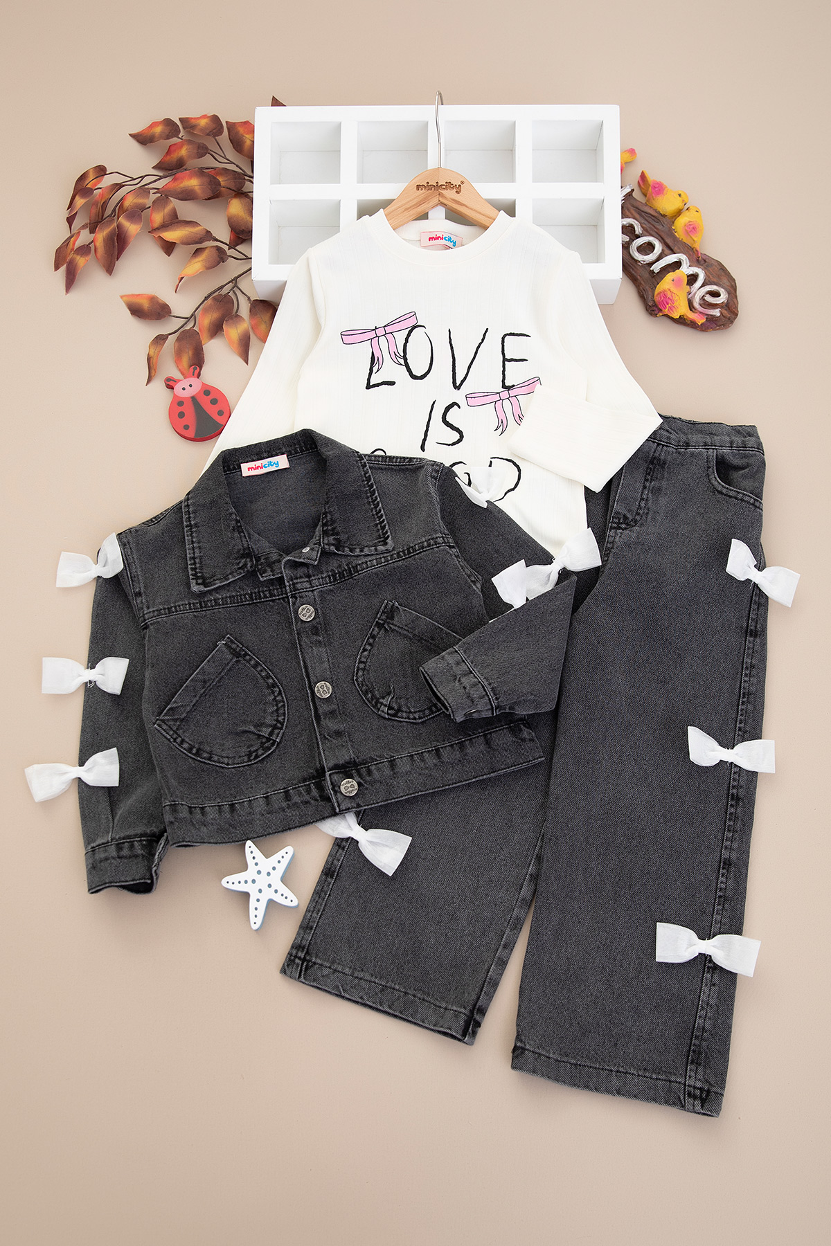 Kız Çocuk Candy Fiyonklu Kot Takım - 1718 (6-9 Yaş)