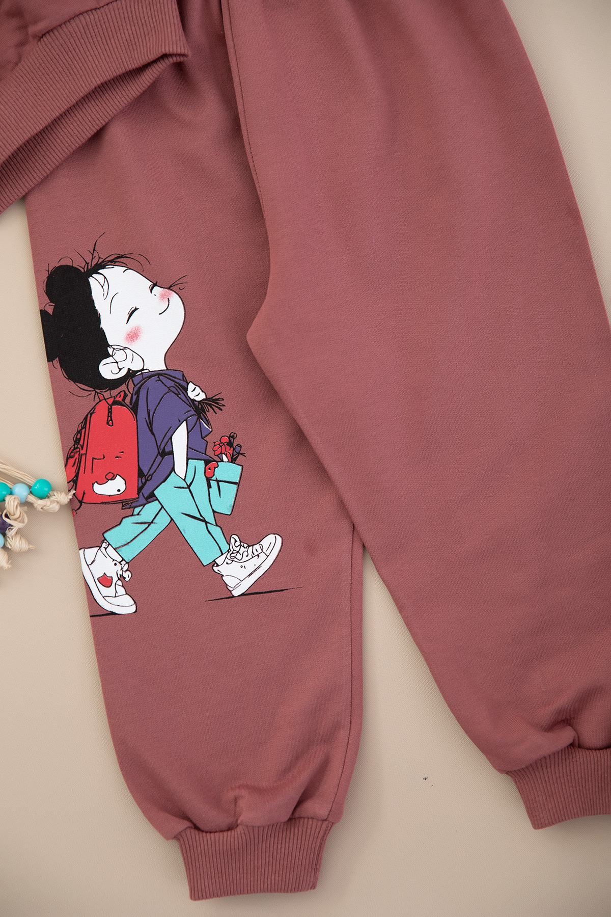 Kız Çocuk Çantalı Kız Çiçek Baskılı Mevsimlik Takım (2-5 Yaş)