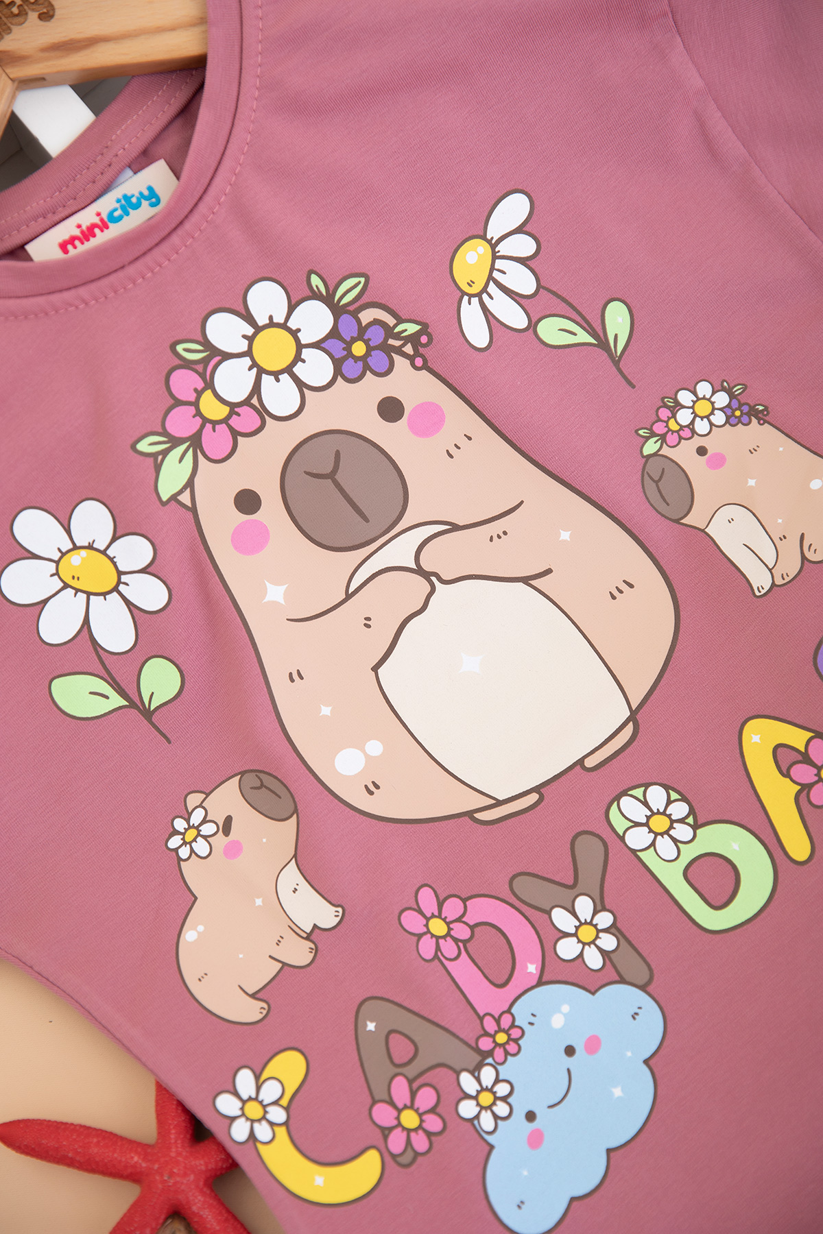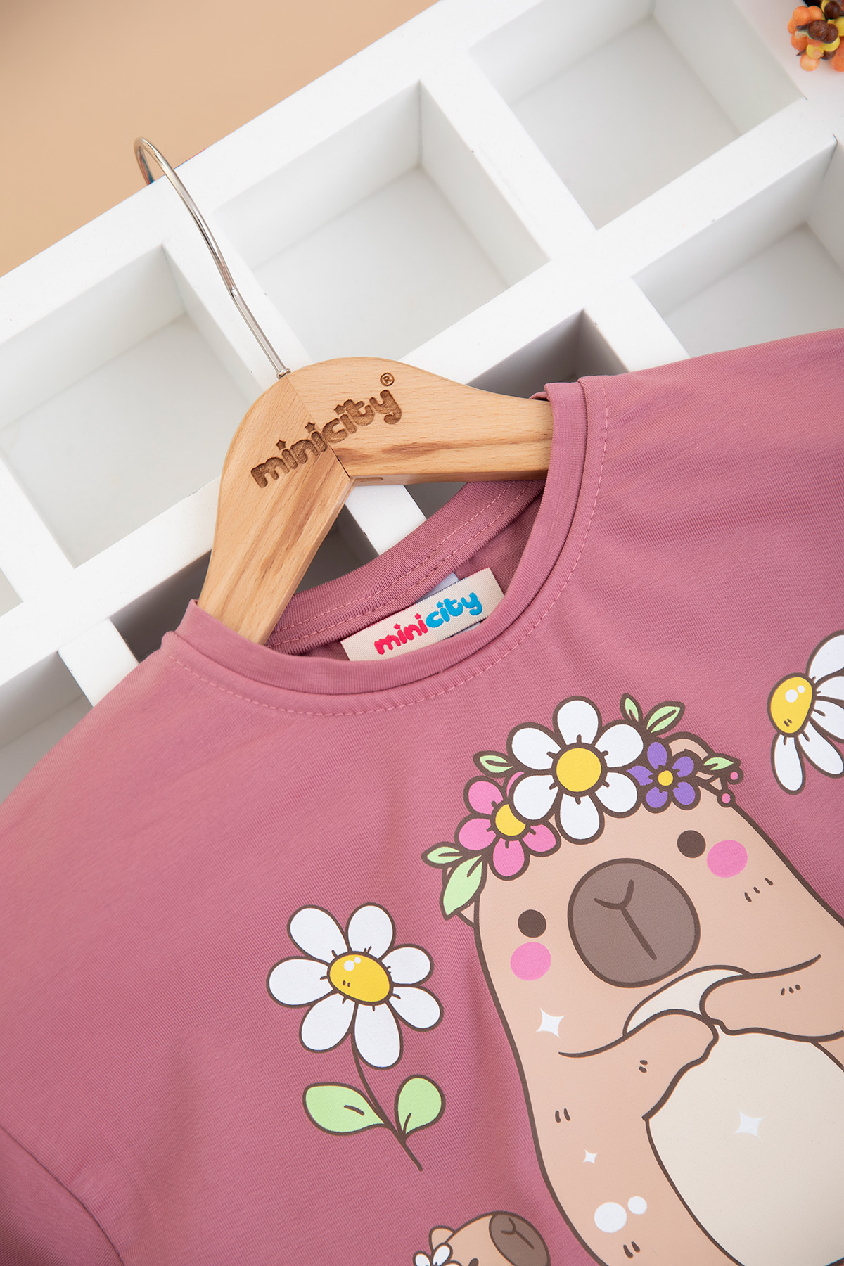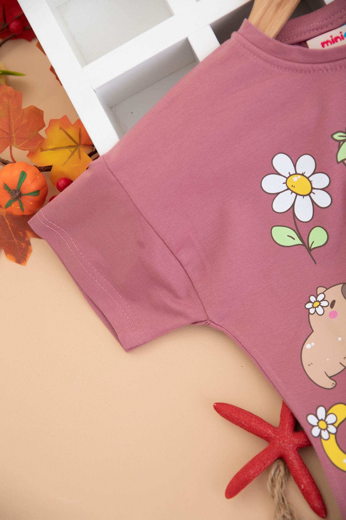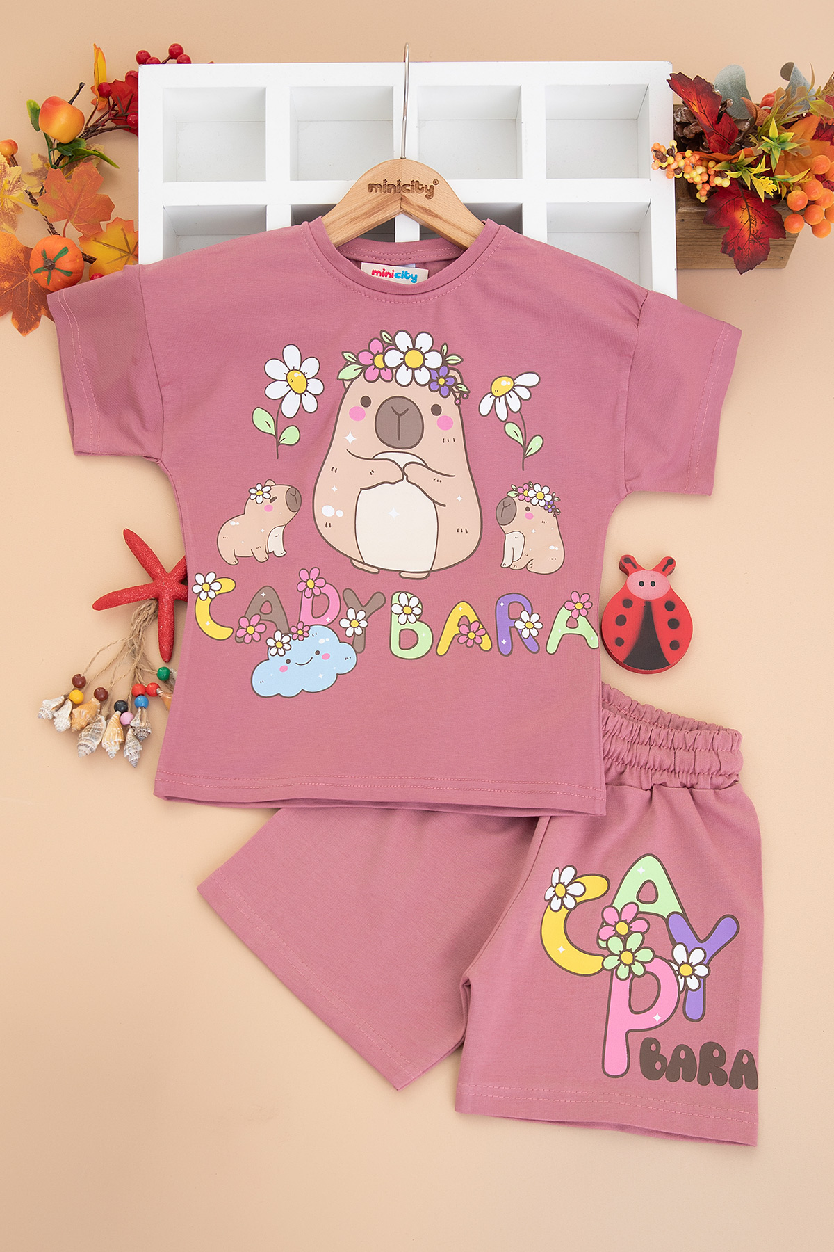 Kız Çocuk Capybara Baskılı Şortlu Takım - 6676-6648 (3-10 Yaş)
