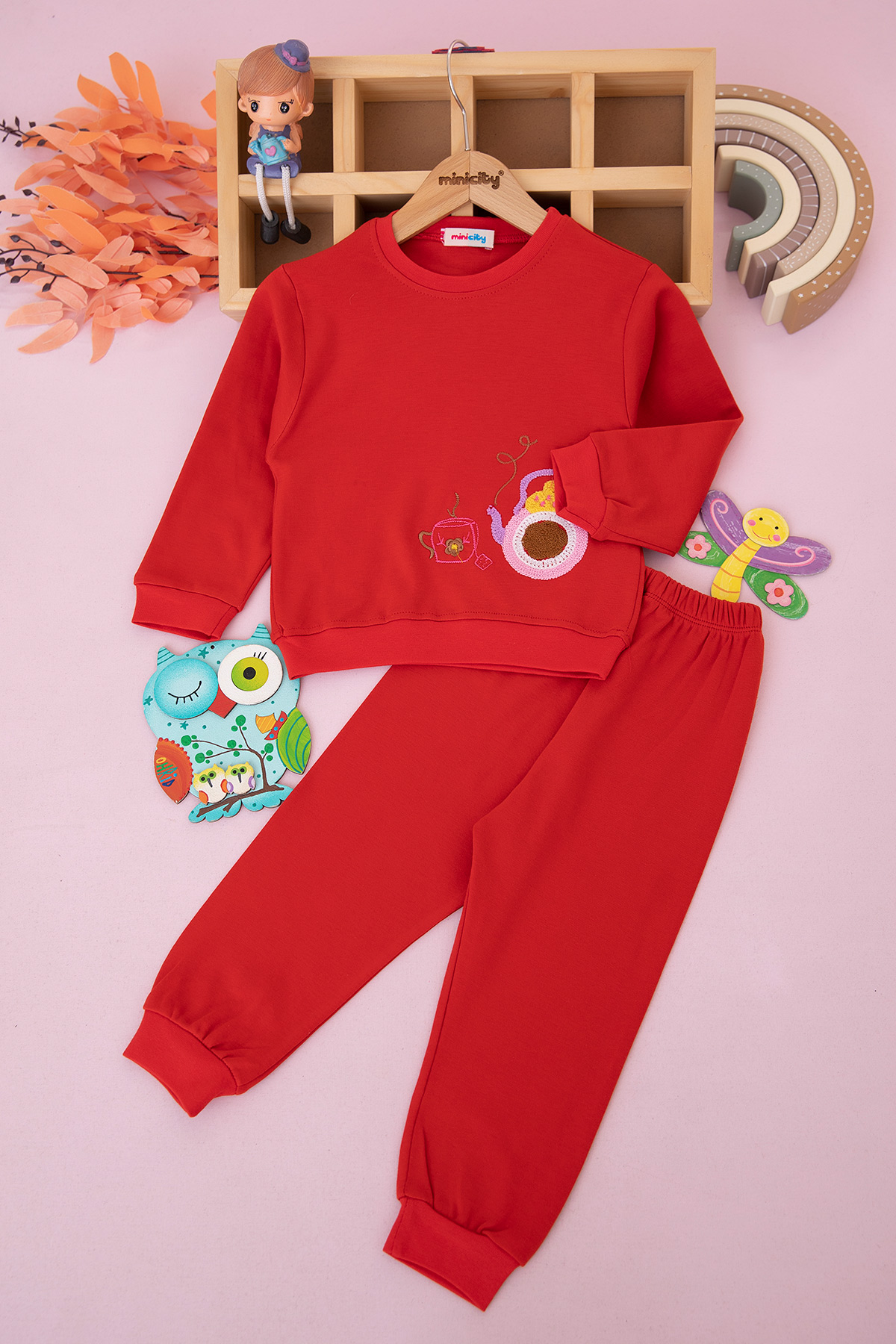Kız Çocuk Çaydanlık Nakışlı Mevsimlik Takım (2-5 Yaş)