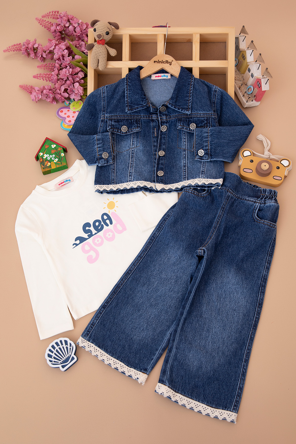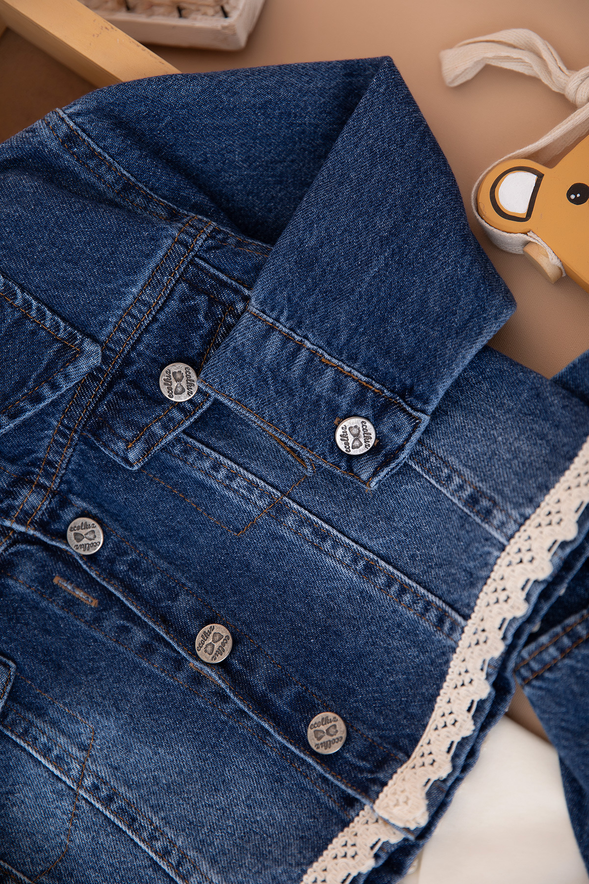 Kız Çocuk Ceket Brodeli Kot Takım - 1745 (3-6 Yaş)