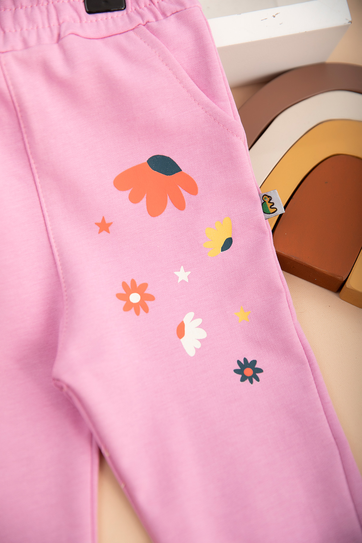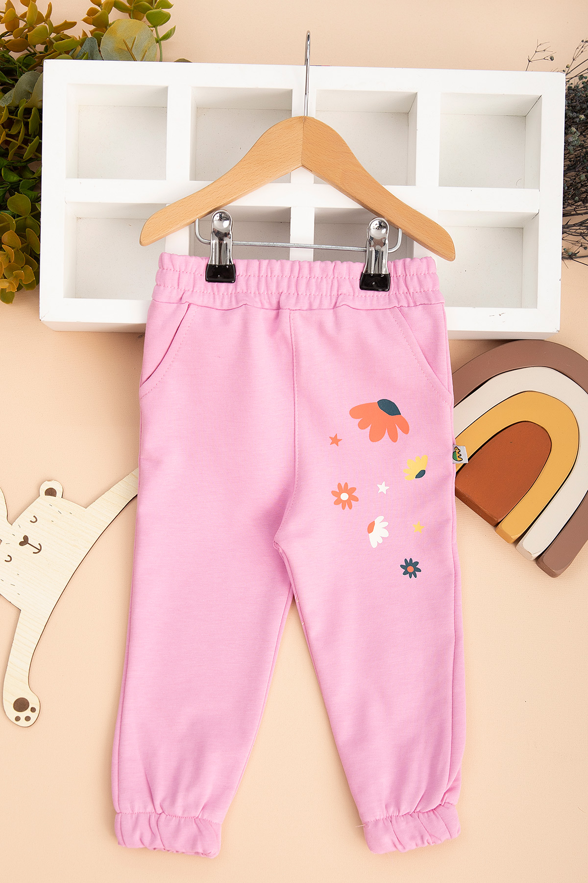 Kız Çocuk Cep Altı Çiçek Baskılı Tek Alt - 5577 (1-4 Yaş)