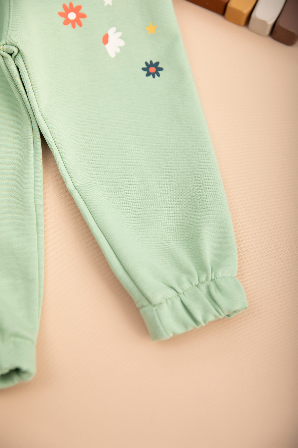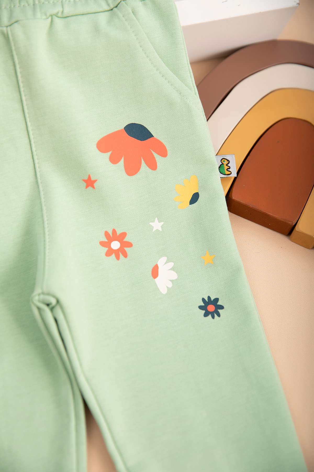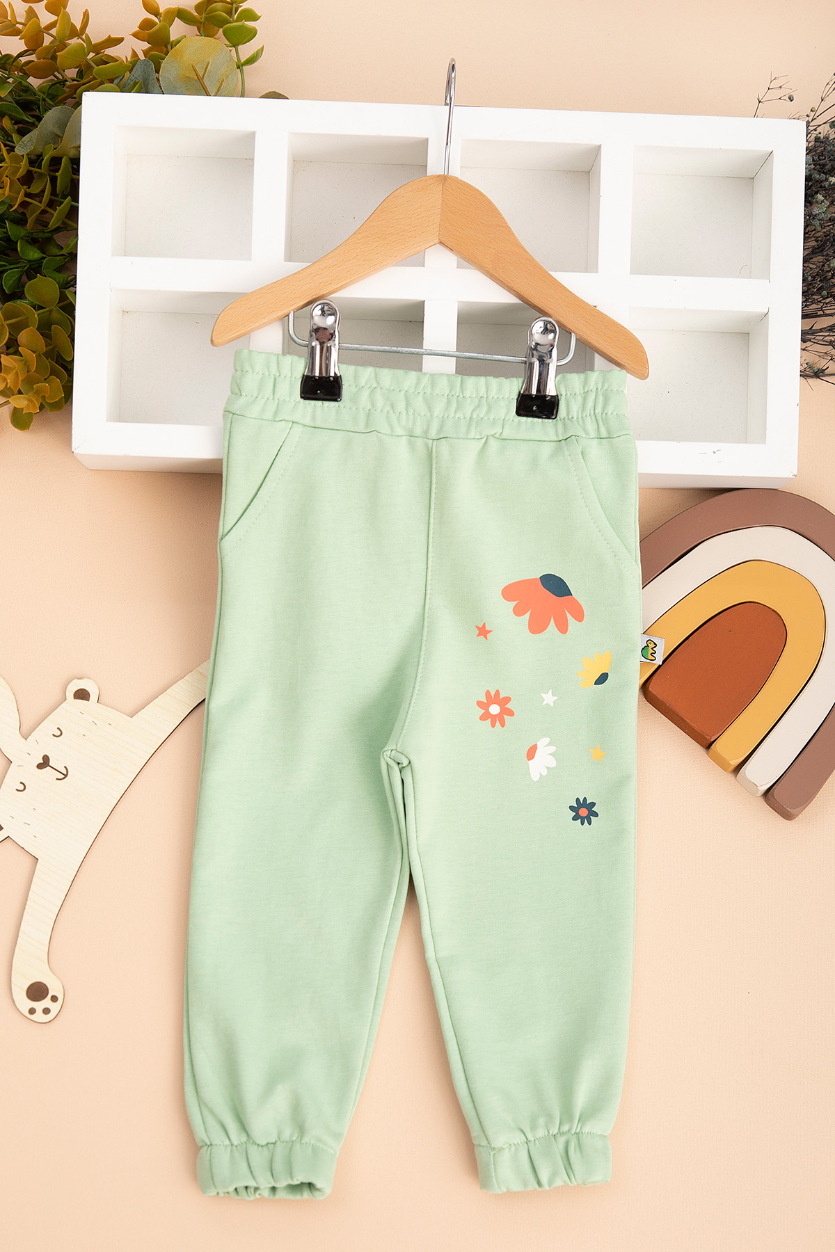 Kız Çocuk Cep Altı Çiçek Baskılı Tek Alt - 5577 (1-4 Yaş)
