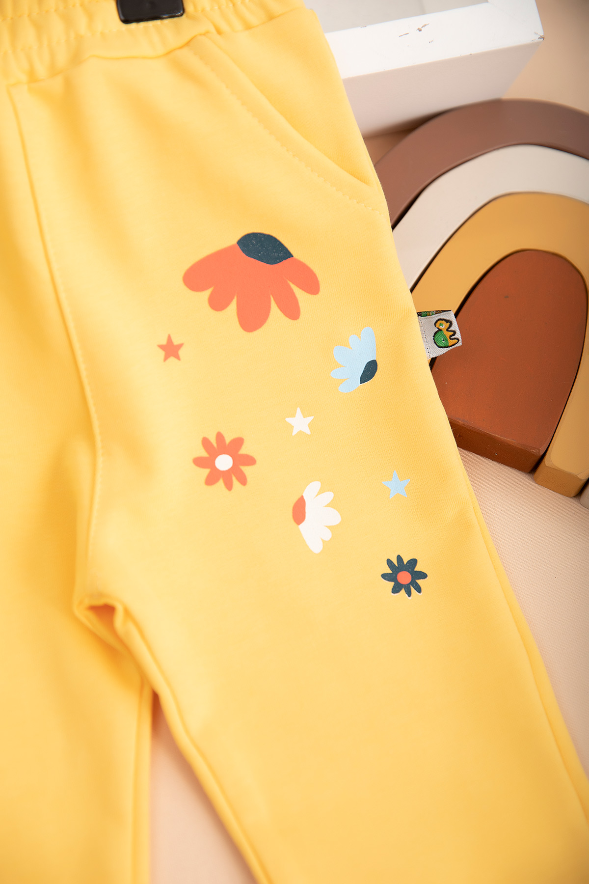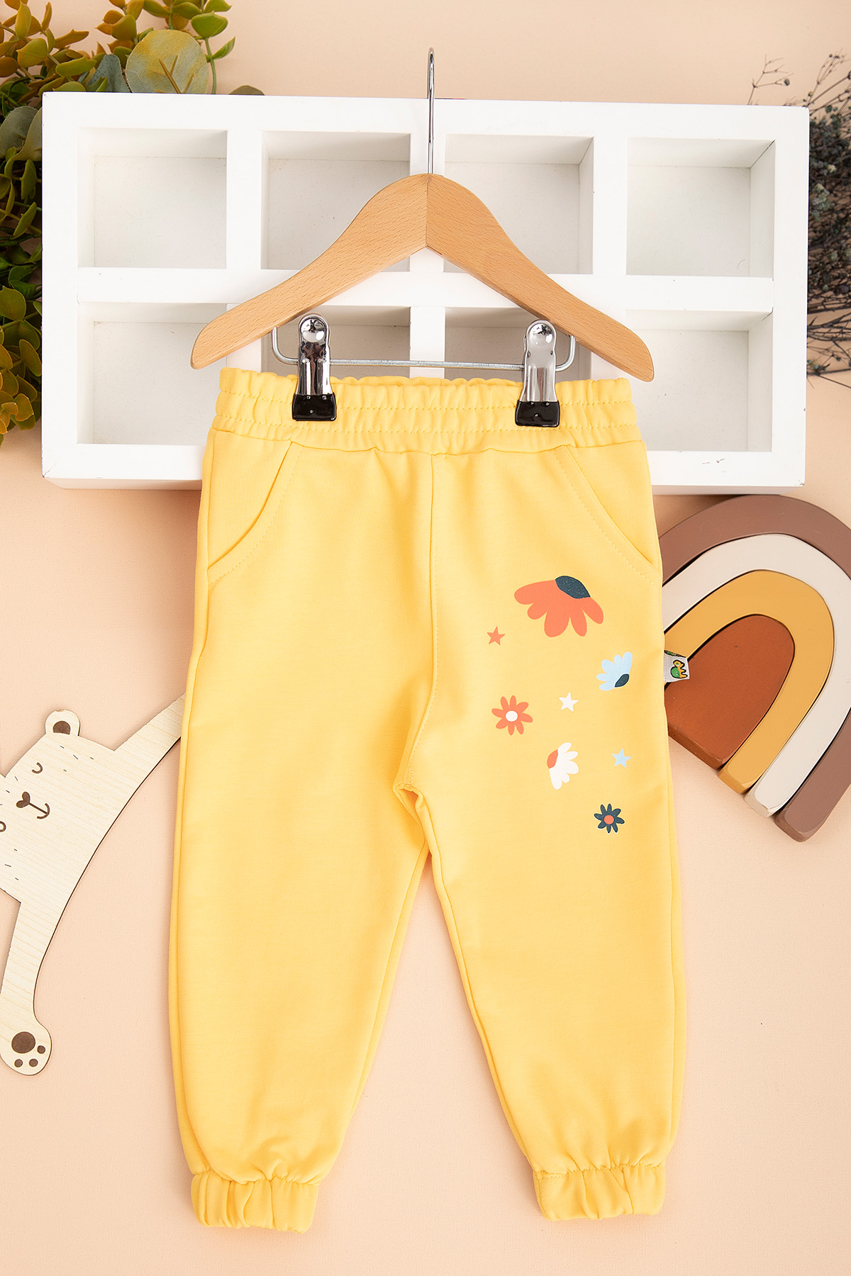 Kız Çocuk Cep Altı Çiçek Baskılı Tek Alt - 5577 (1-4 Yaş)