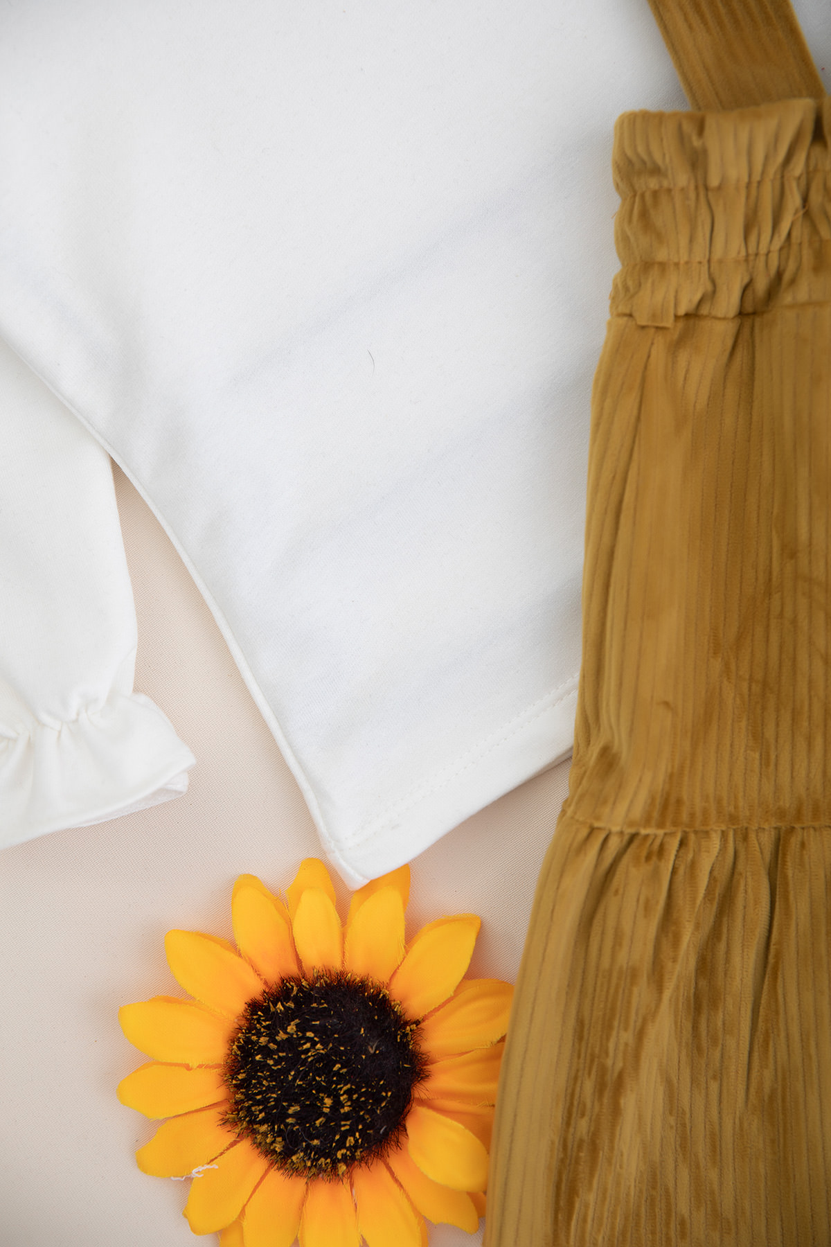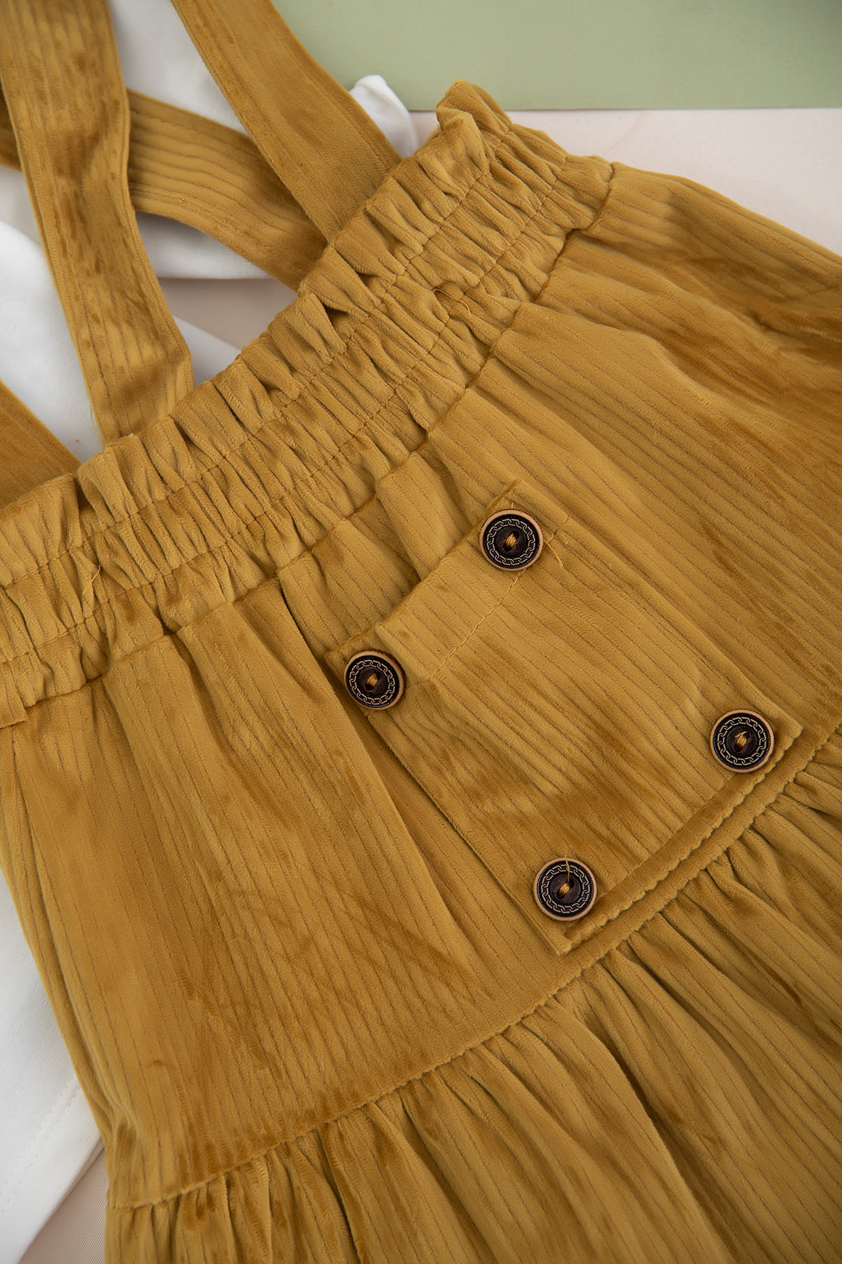Kız Çocuk Cep Düğmeli Kadife Salopet Takım - 1051 (3-7 Yaş)