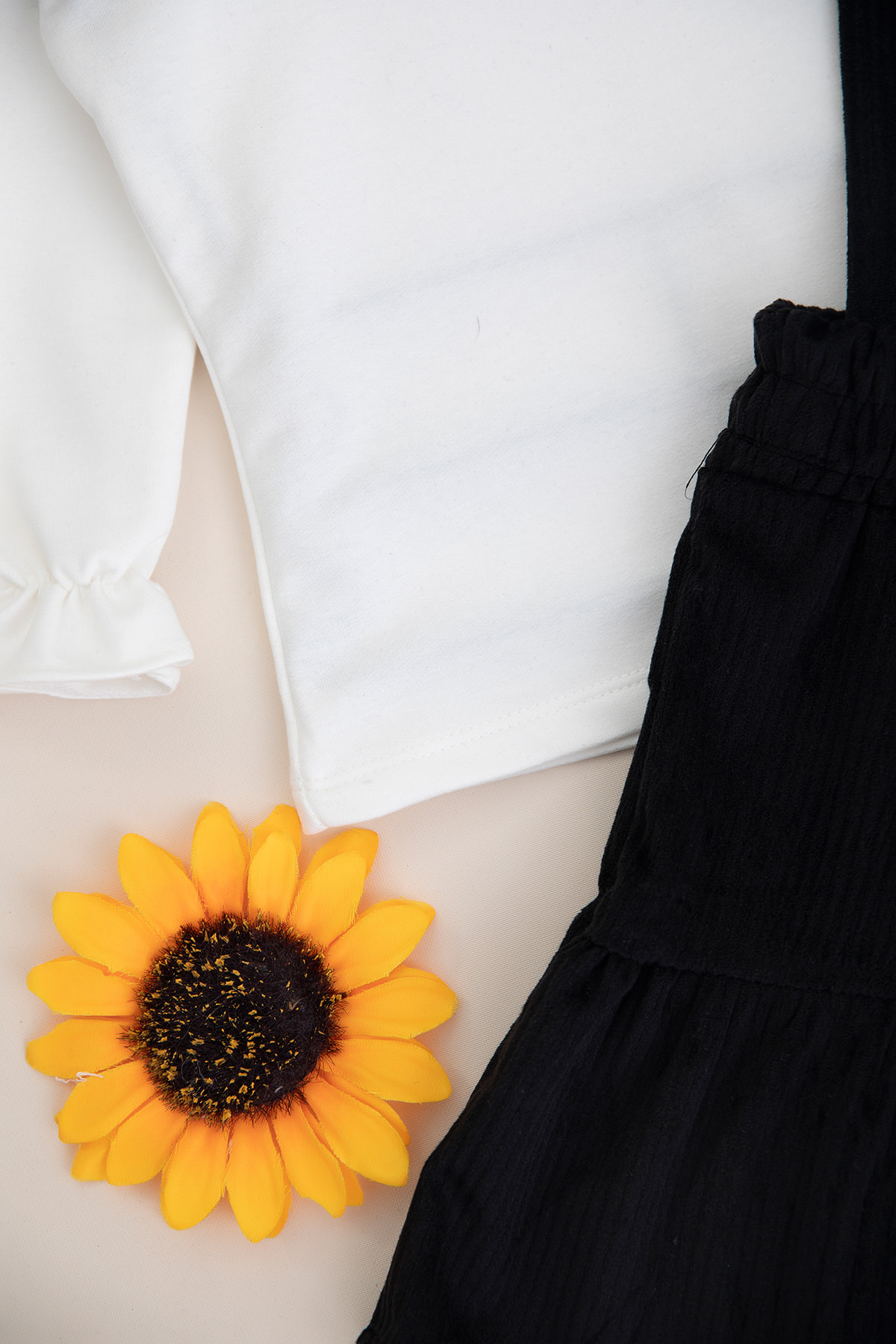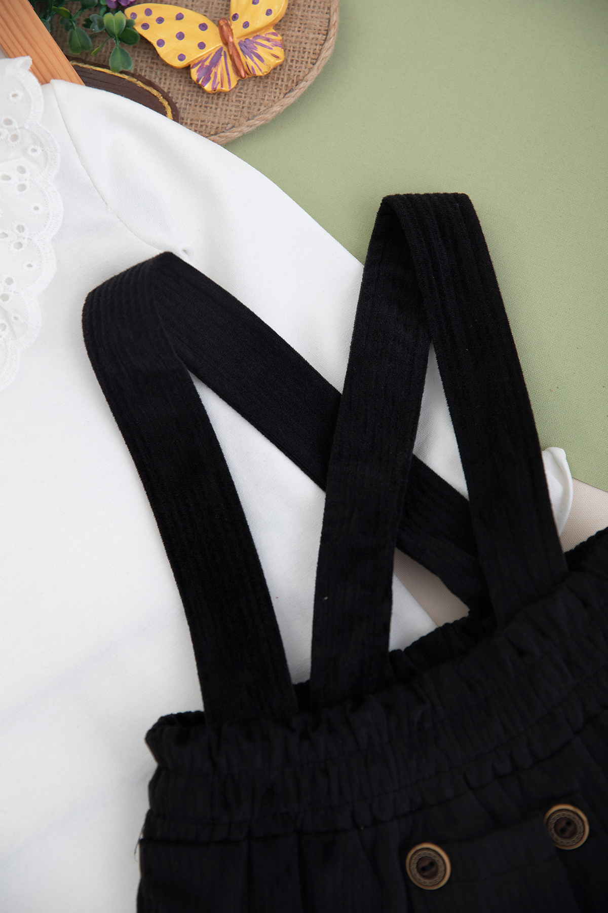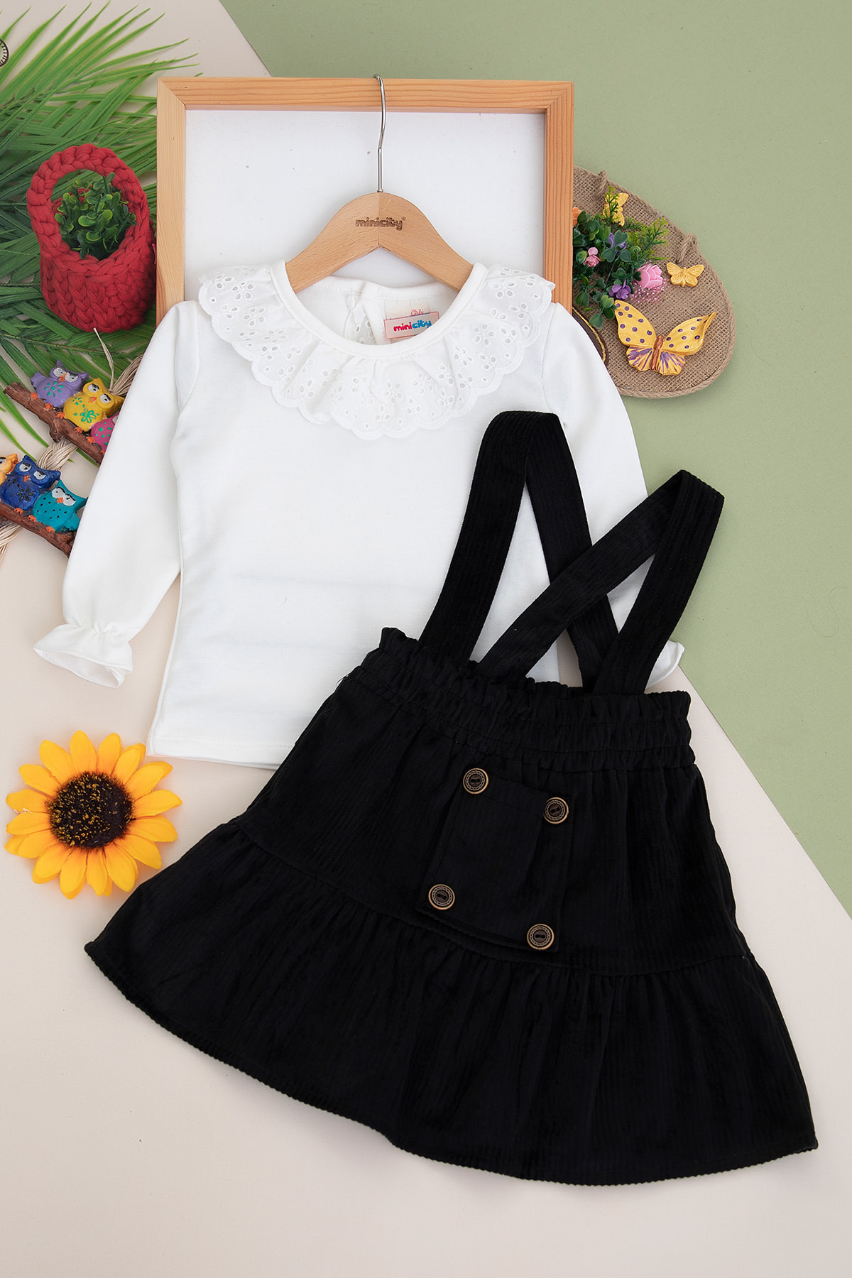 Kız Çocuk Cep Düğmeli Kadife Salopet Takım - 1051 (8-12 Yaş)