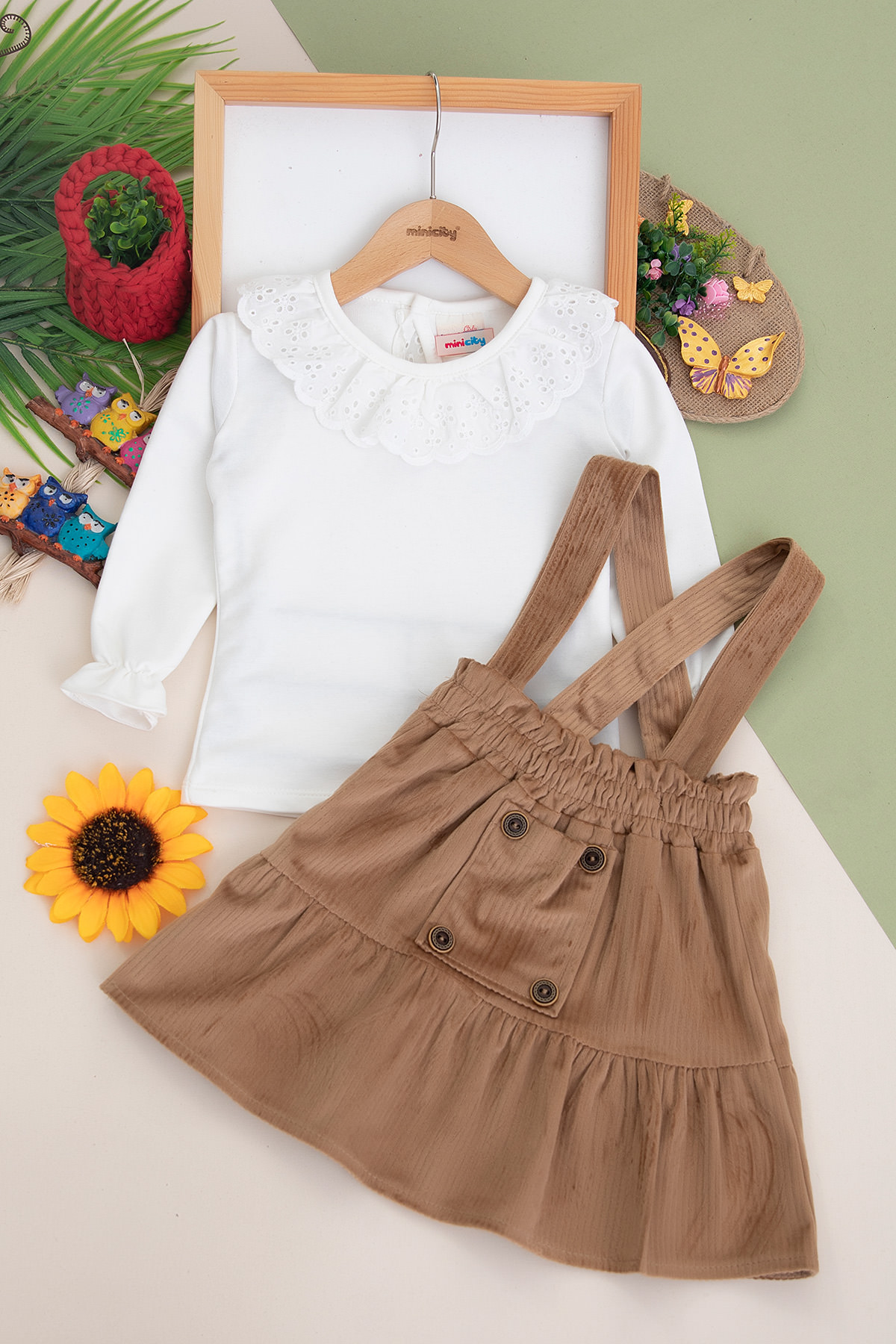 Kız Çocuk Cep Düğmeli Kadife Salopet Takım - 1051 (8-12 Yaş)