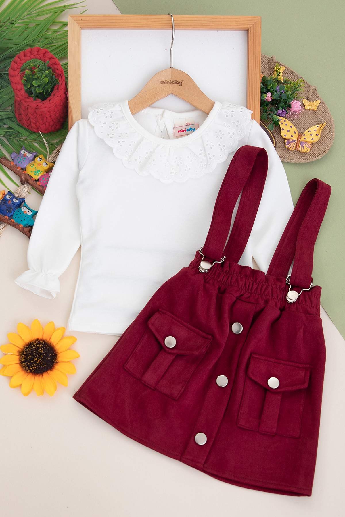 Kız Çocuk Cep Kapaklı Süet Salopet Takım - 1085 (3-7 Yaş)