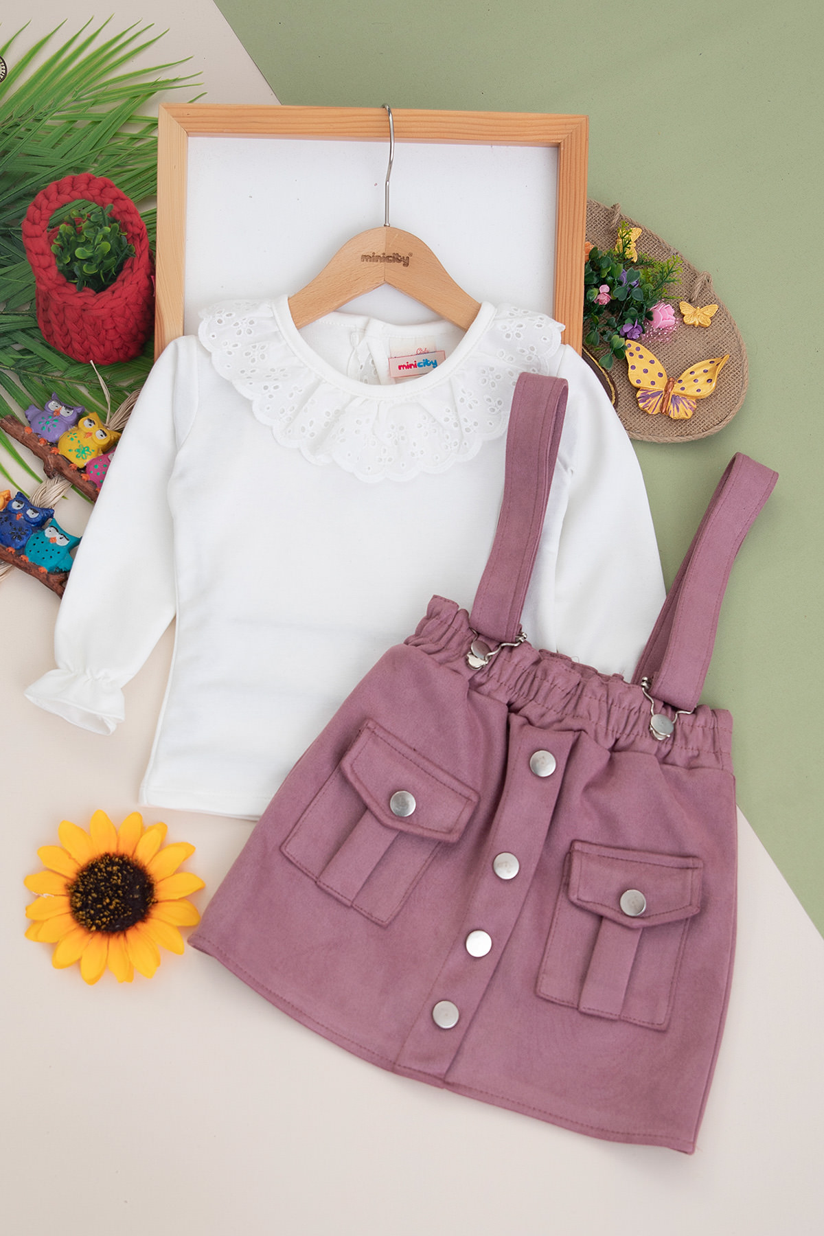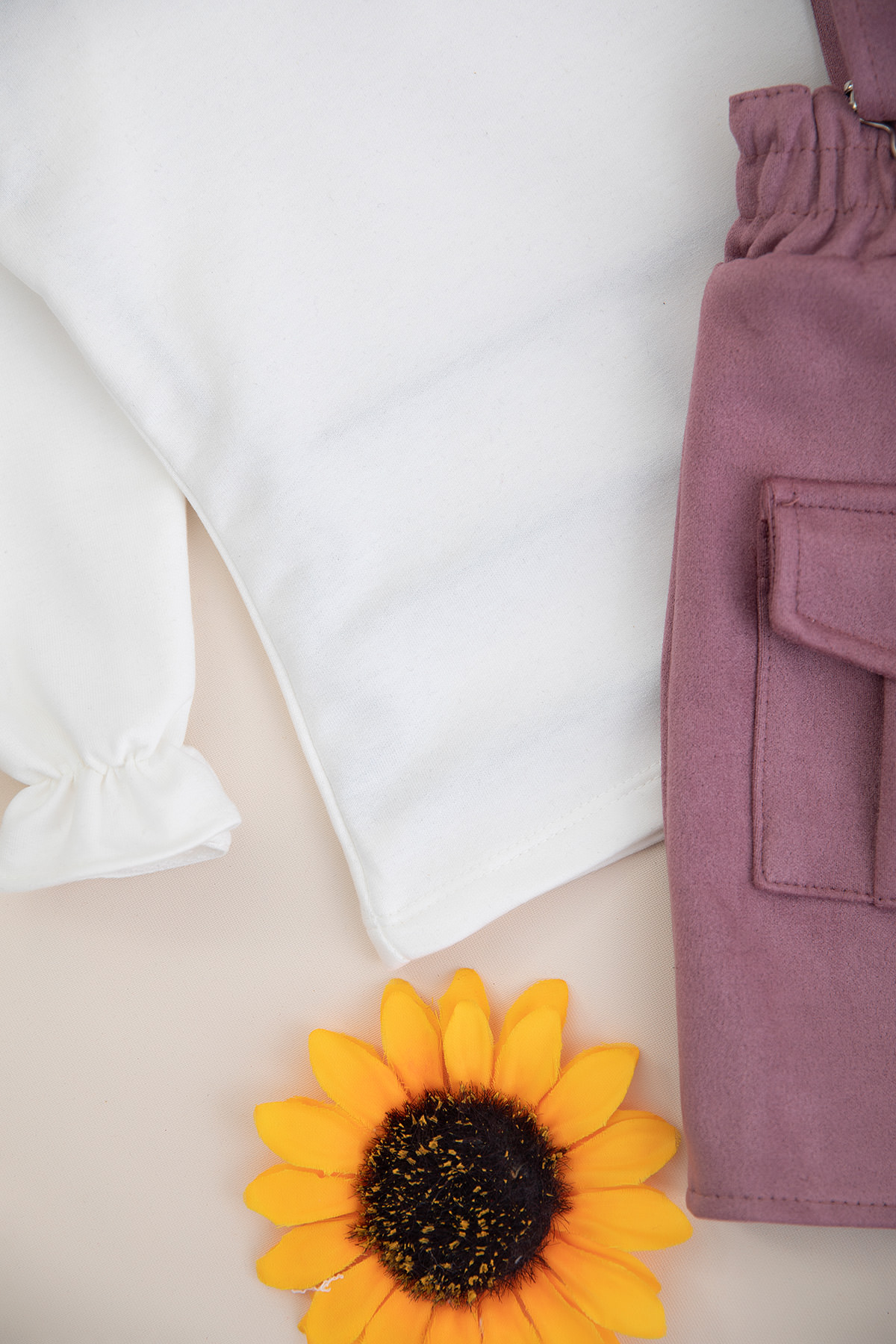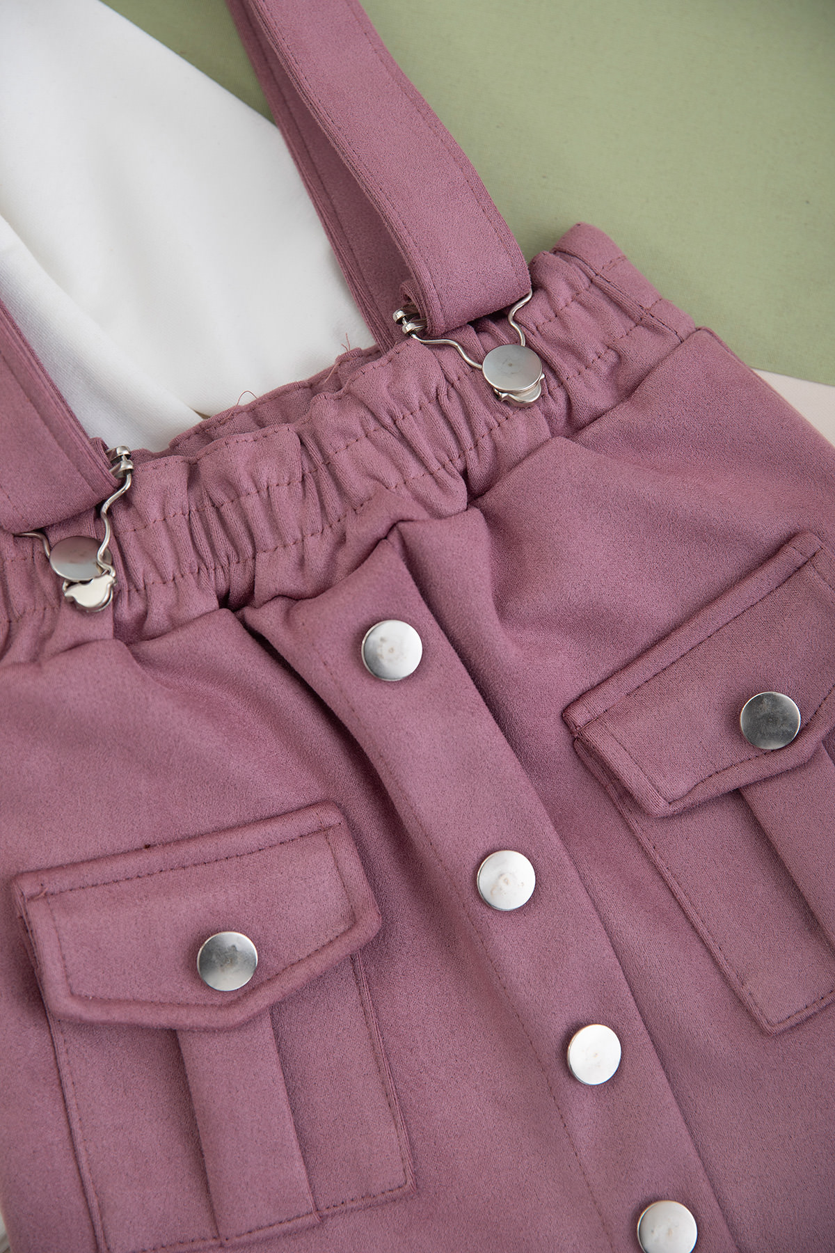 Kız Çocuk Cep Kapaklı Süet Salopet Takım - 1085 (3-7 Yaş)