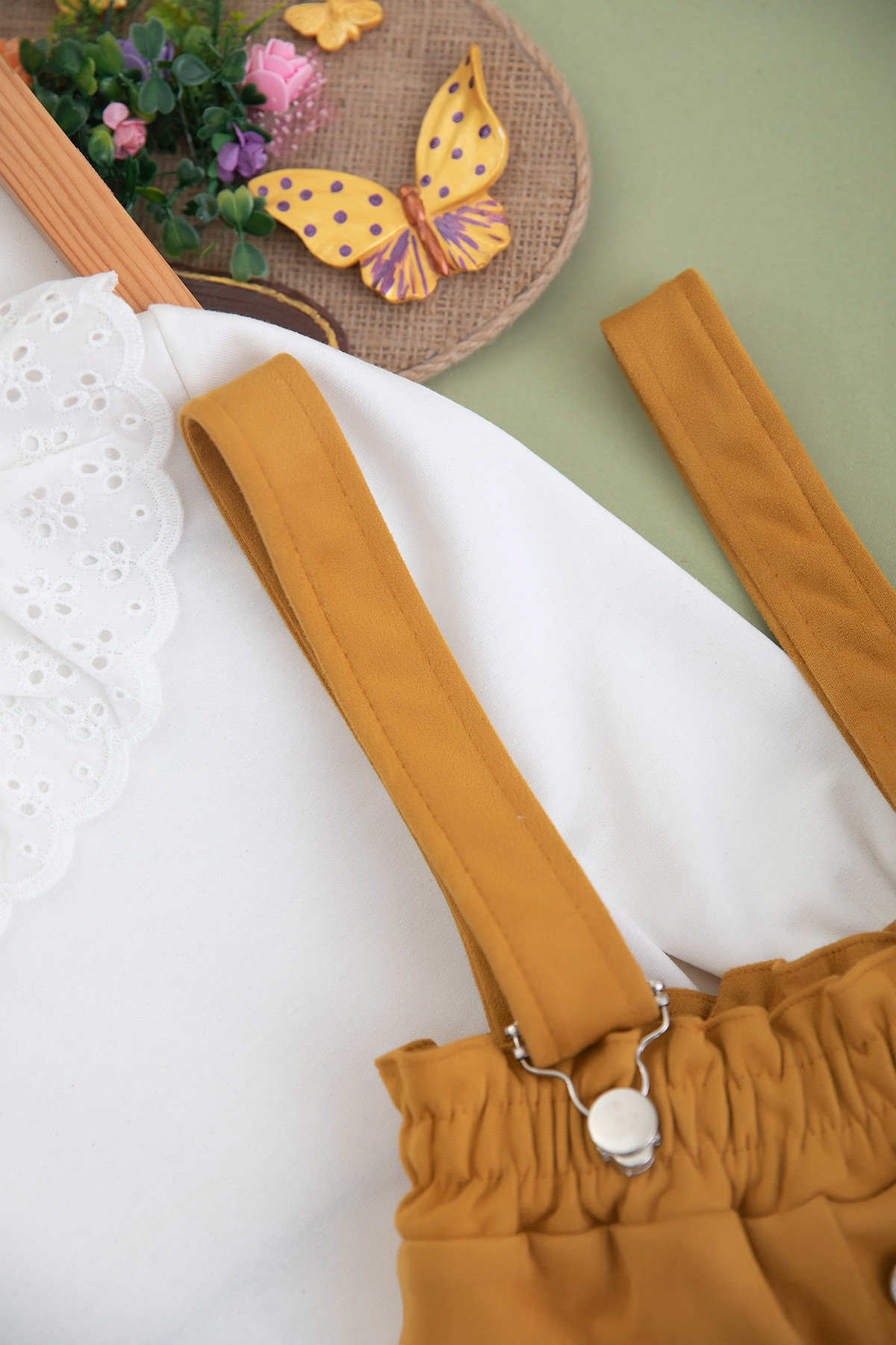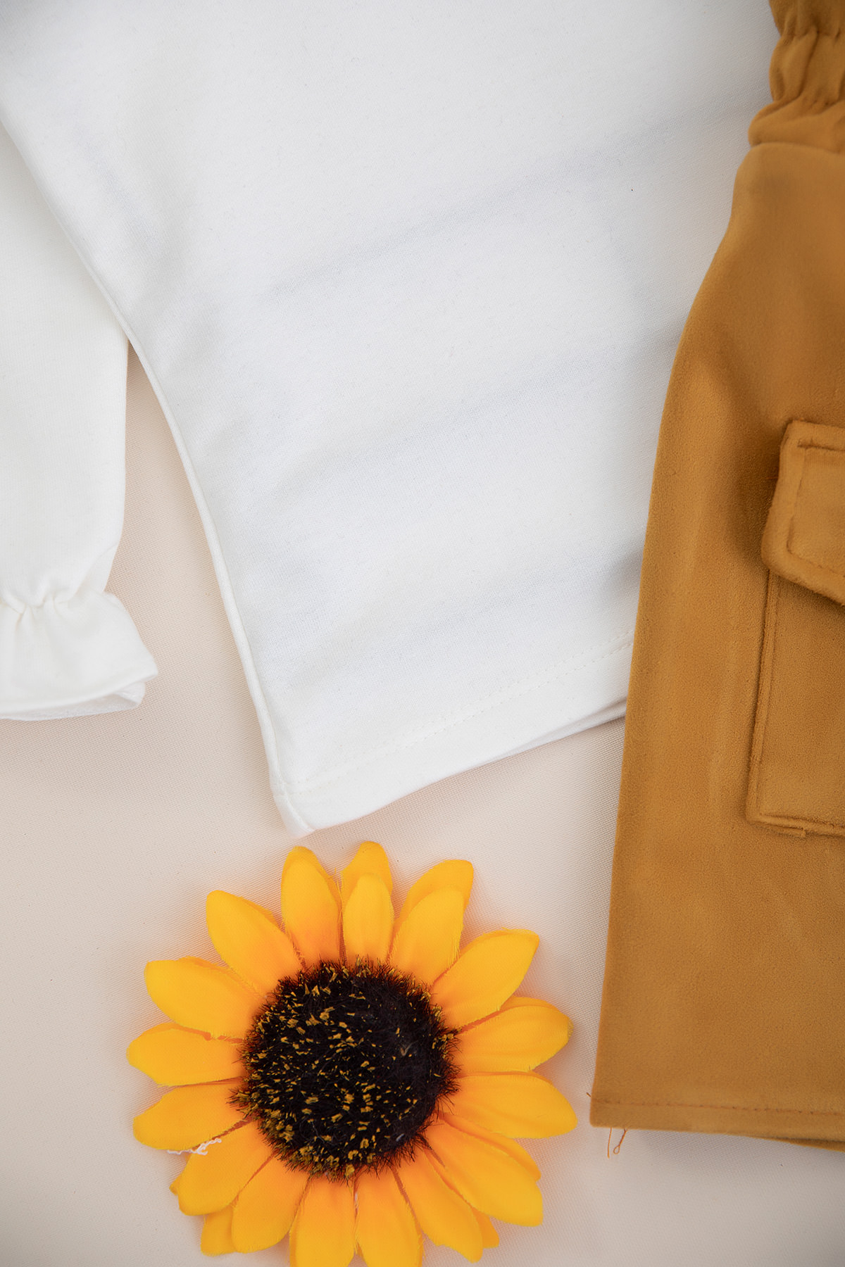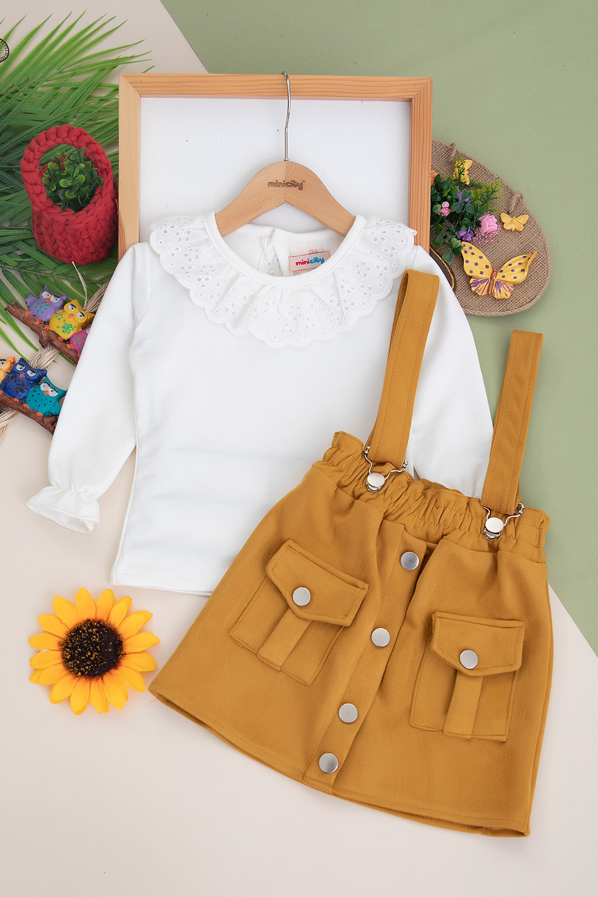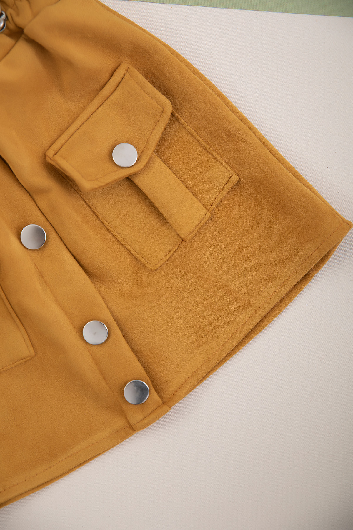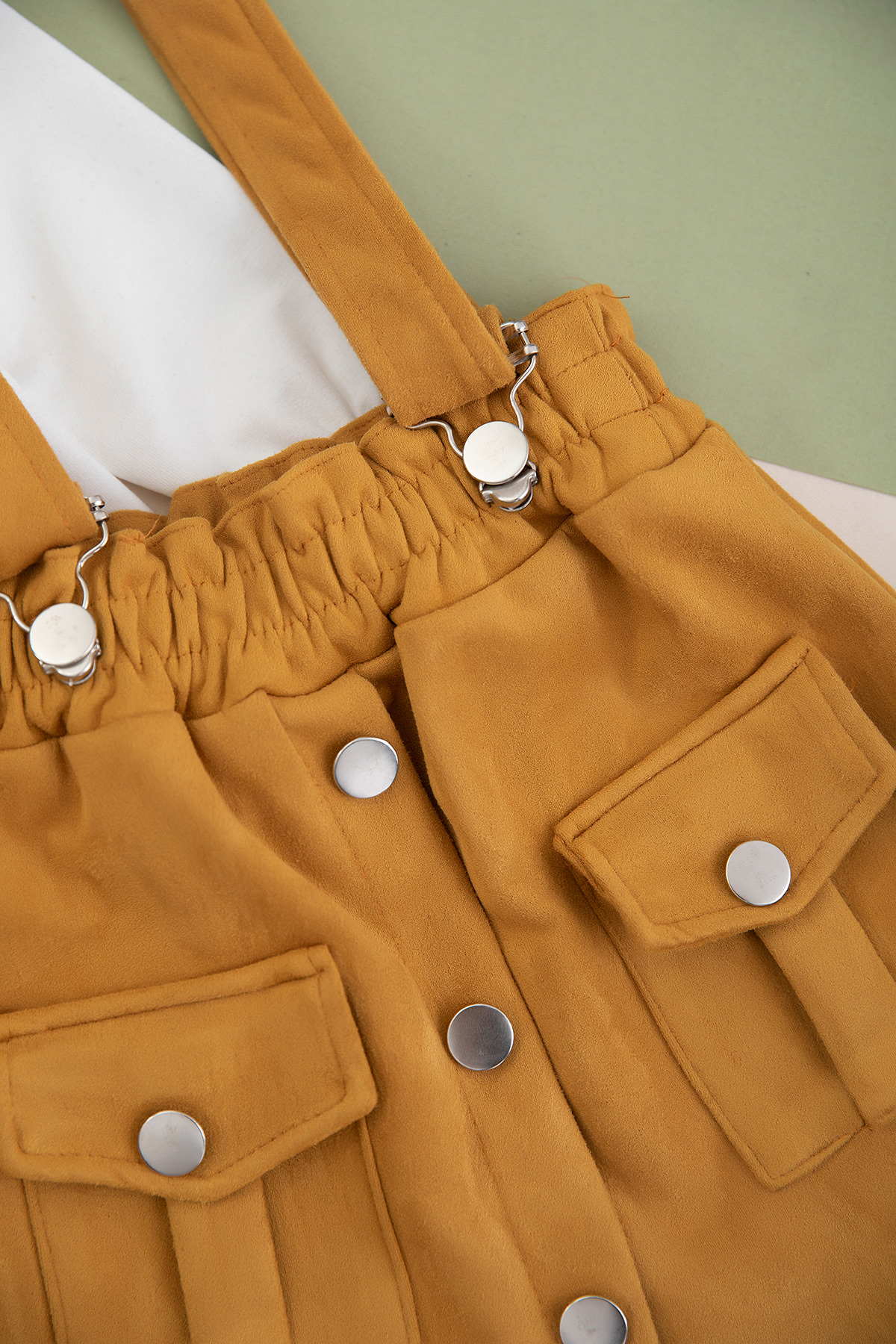 Kız Çocuk Cep Kapaklı Süet Salopet Takım - 1085 (3-7 Yaş)