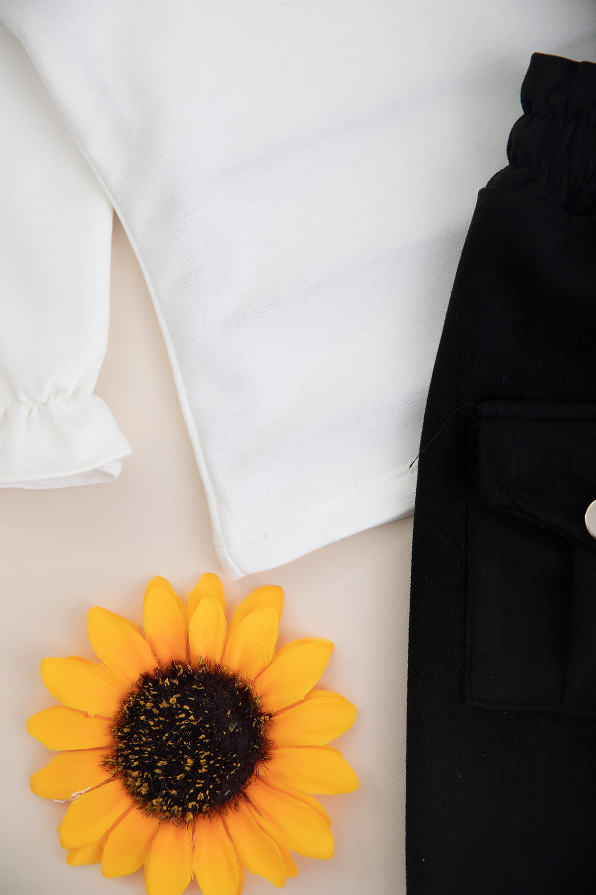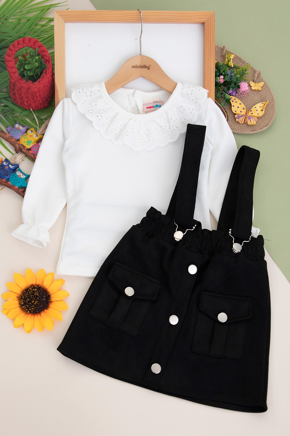 Kız Çocuk Cep Kapaklı Süet Salopet Takım - 1085 (3-7 Yaş)