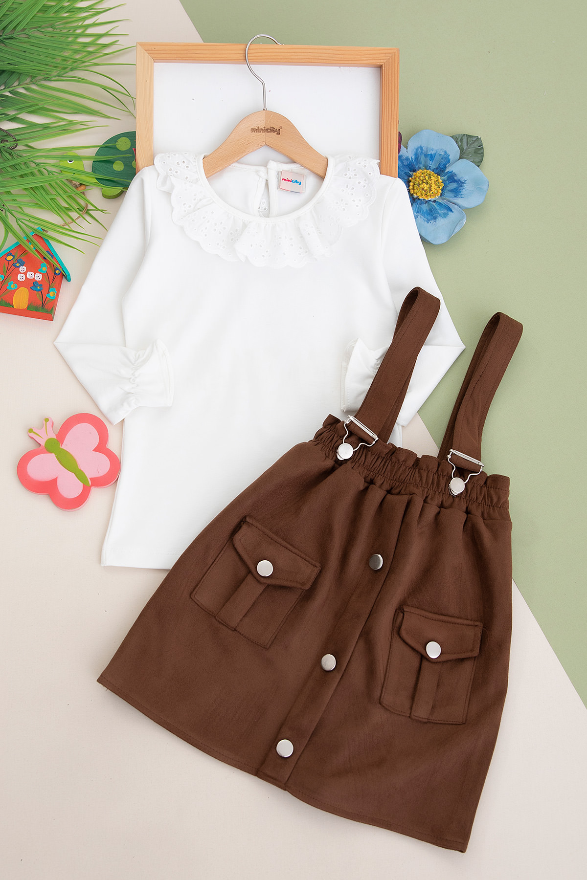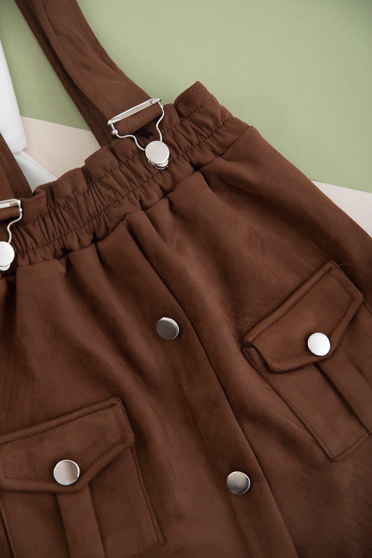 Kız Çocuk Cep Kapaklı Süet Salopet Takım - 1085 (8-12 Yaş)