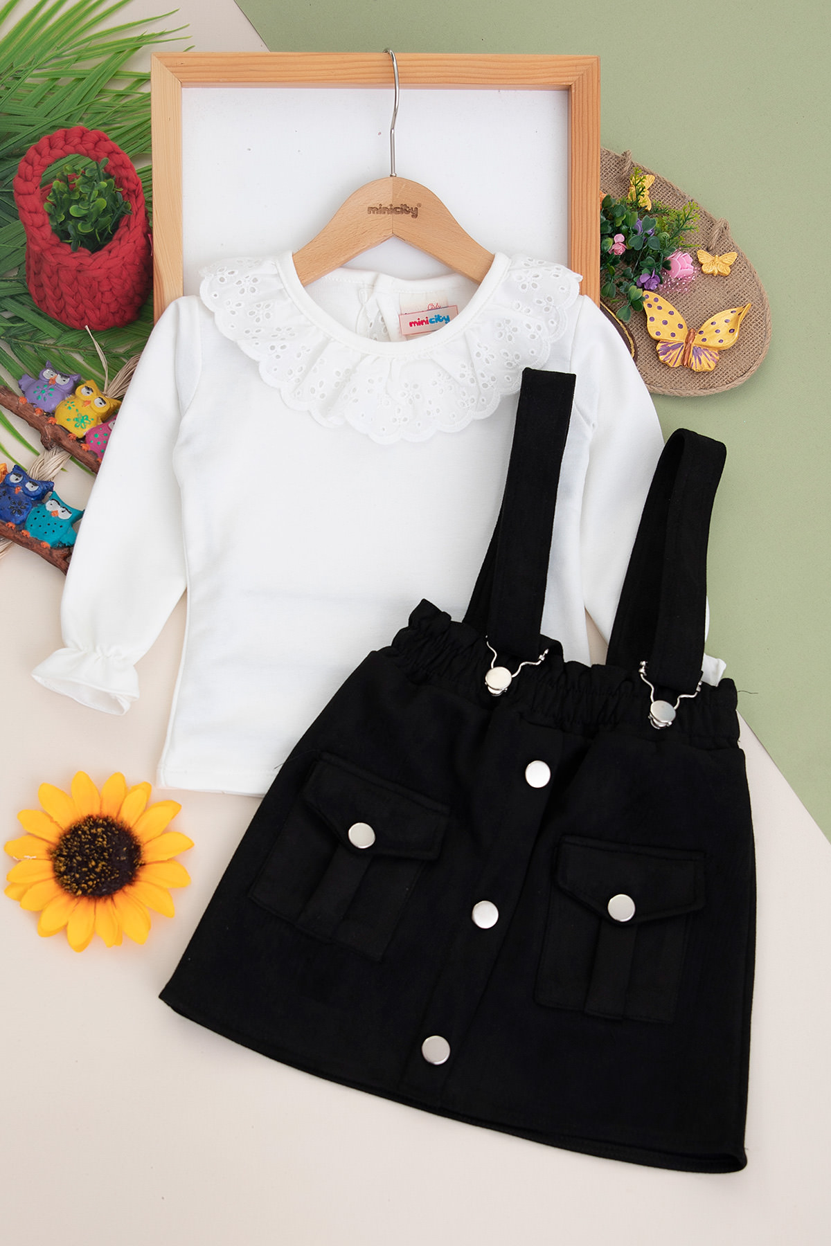 Kız Çocuk Cep Kapaklı Süet Salopet Takım - 1085 (8-12 Yaş)