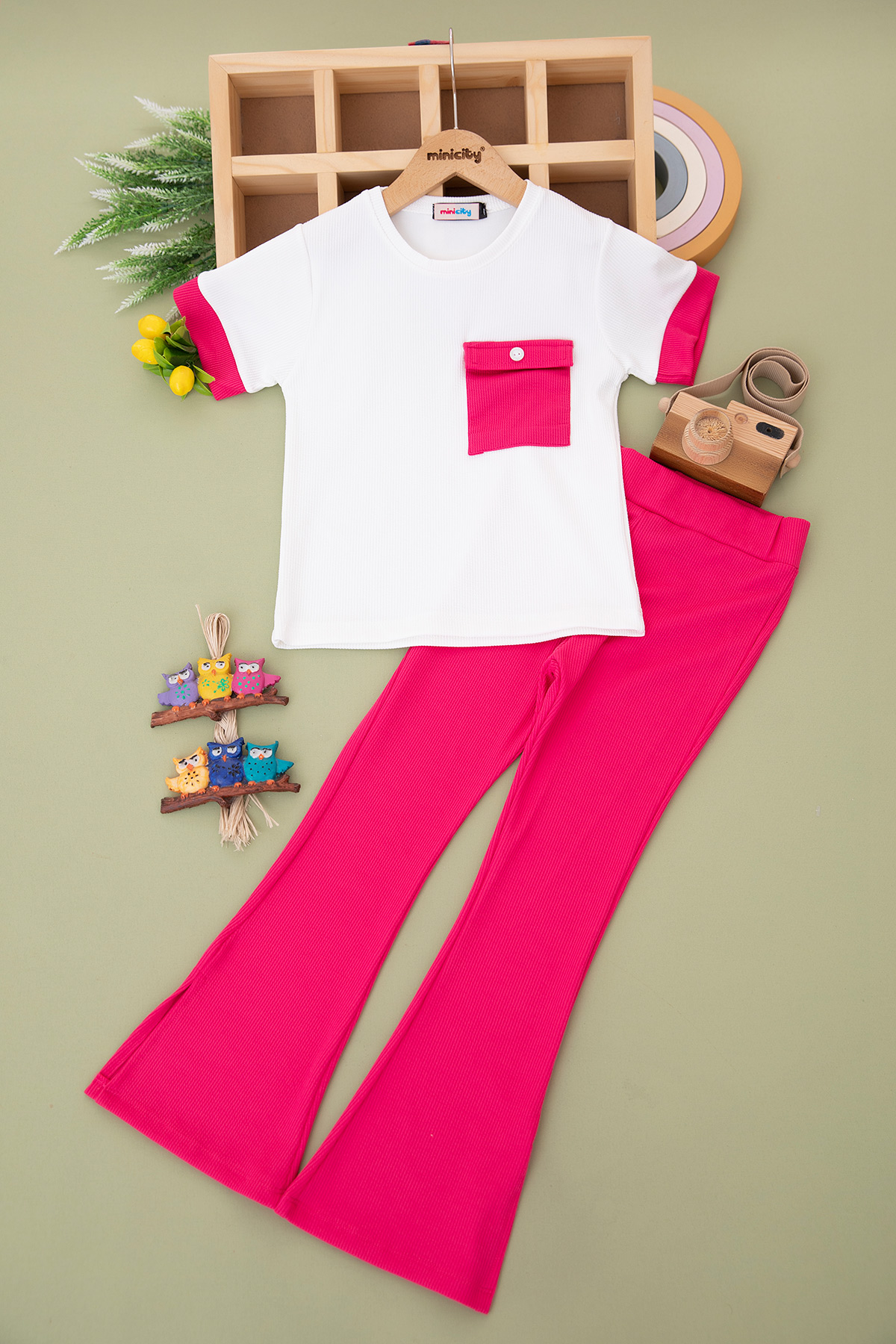 Kız Çocuk Cep Kapaklı Yırtmaçlı Takım - 1016 (6-10 Yaş)