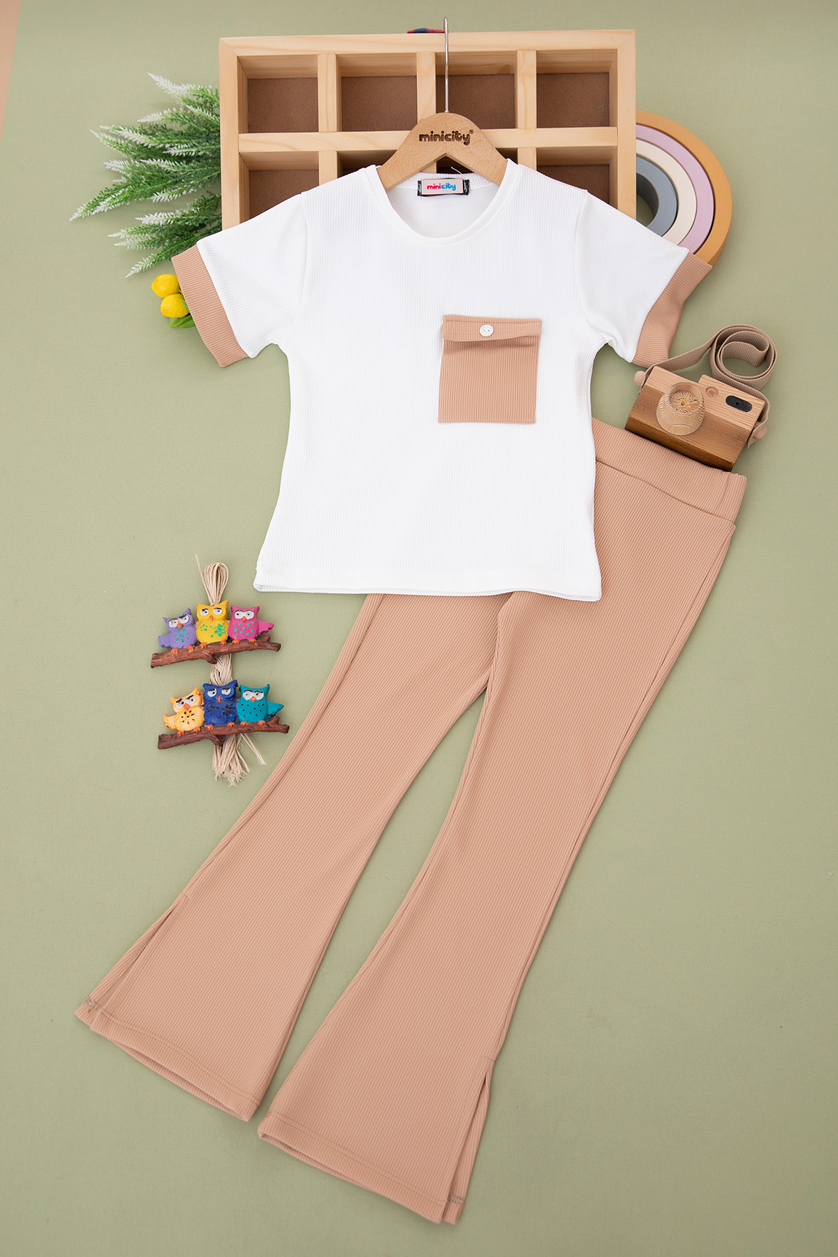 Kız Çocuk Cep Kapaklı Yırtmaçlı Takım - 1016 (6-10 Yaş)