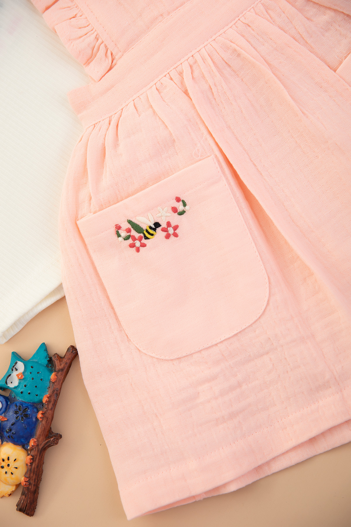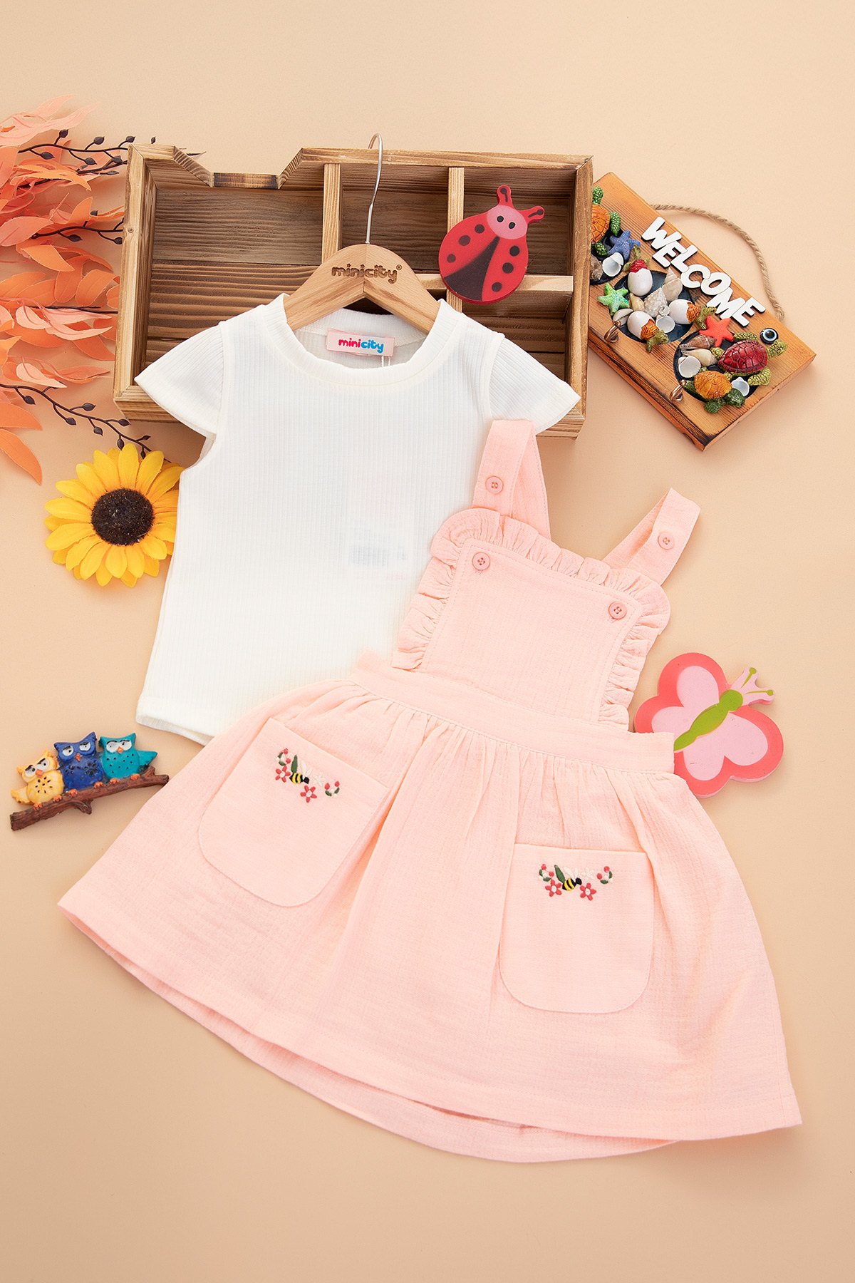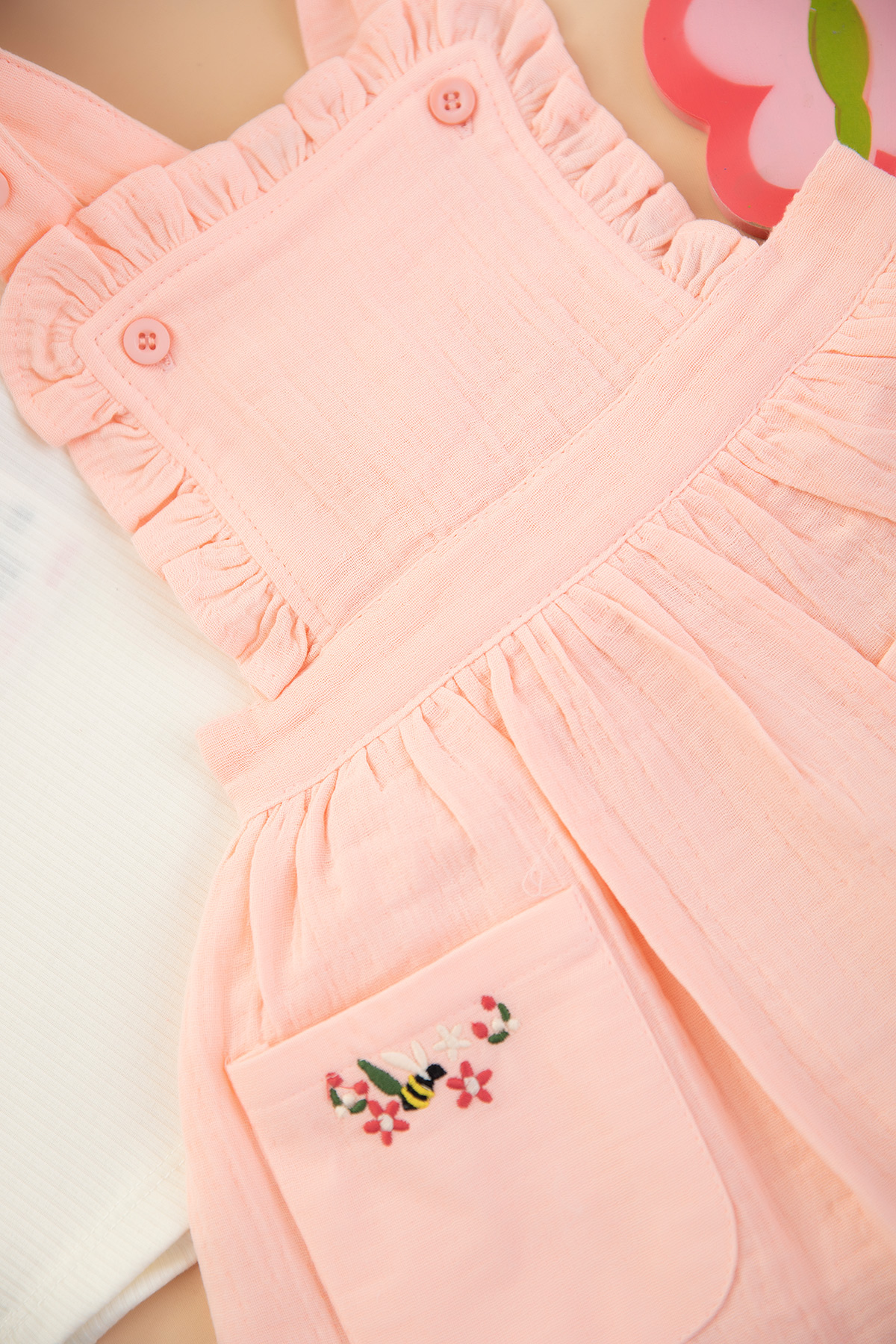 Kız Çocuk Cep Nakışlı Müslin Salopet - 1659 (2-5 Yaş)