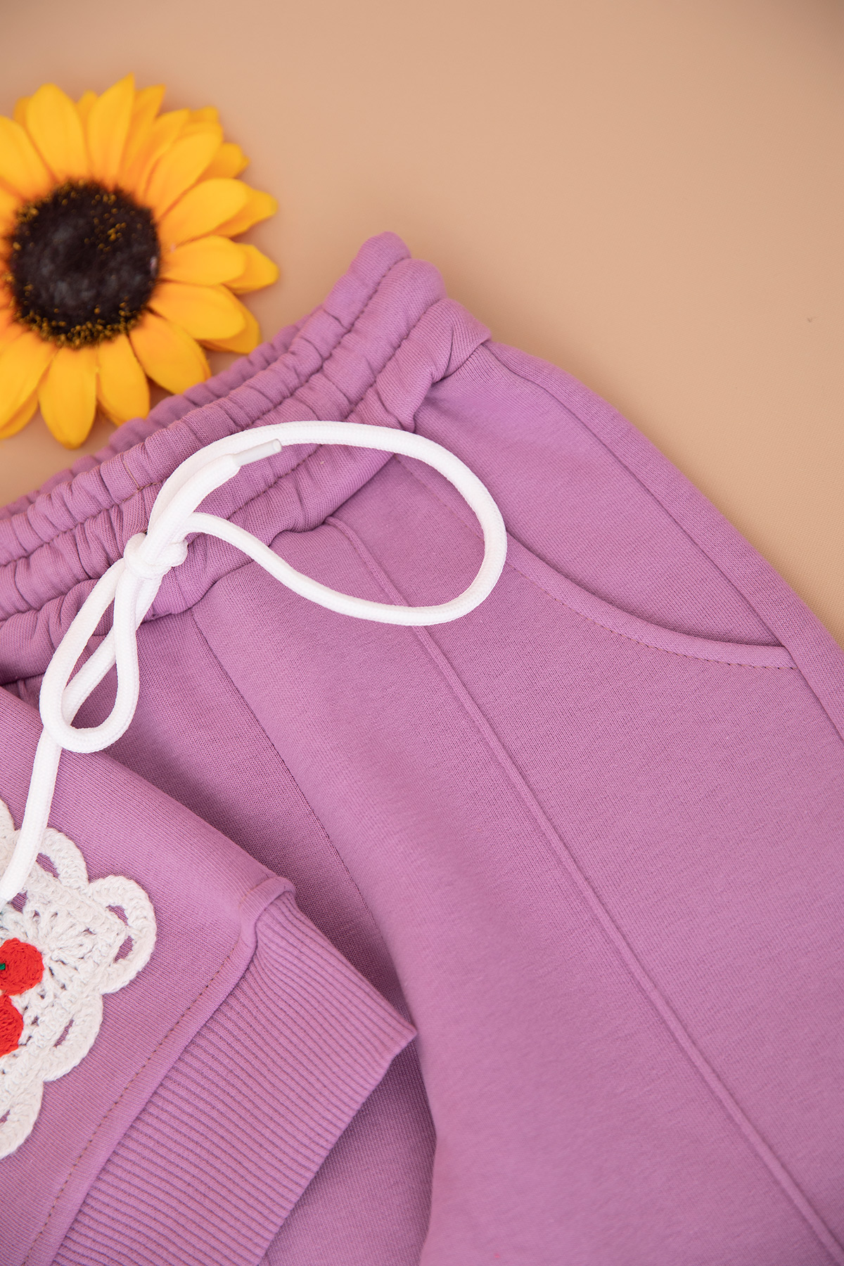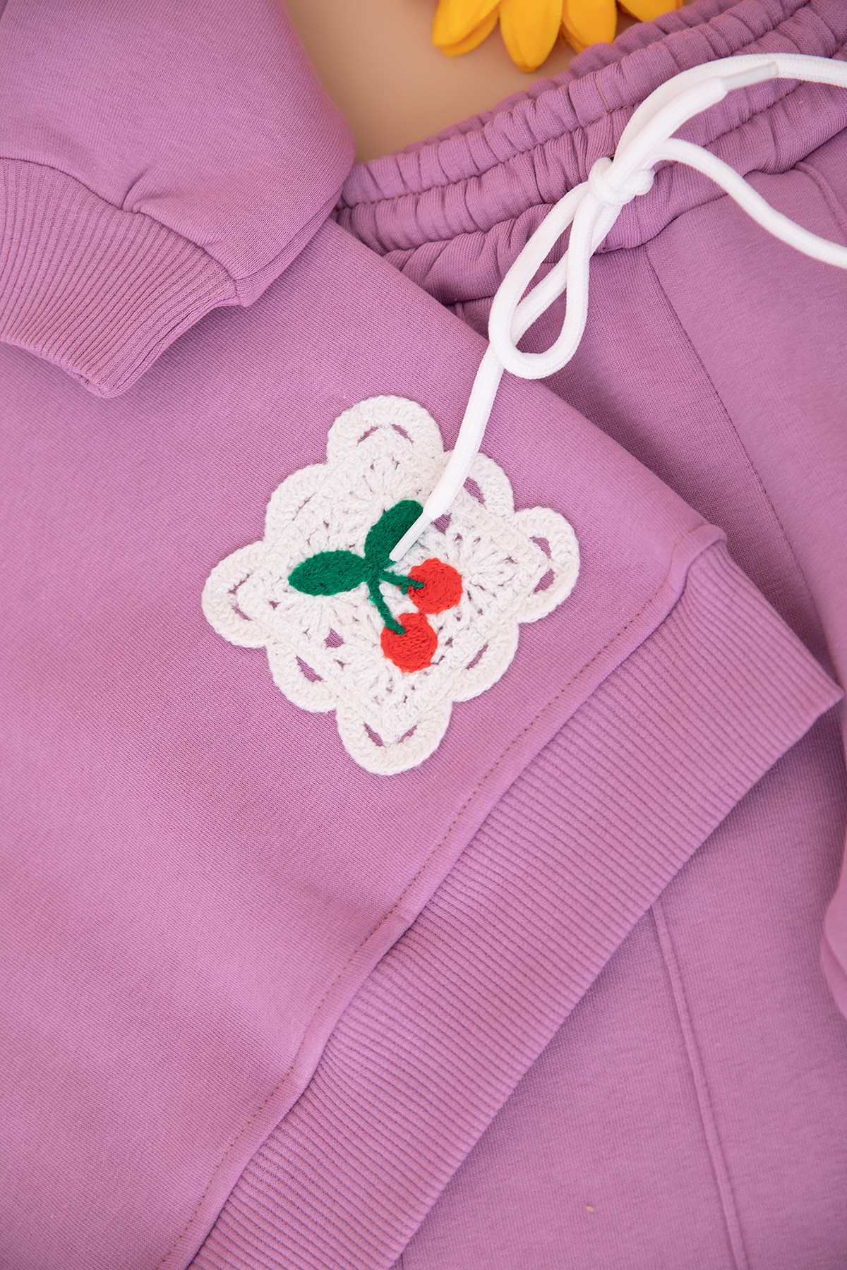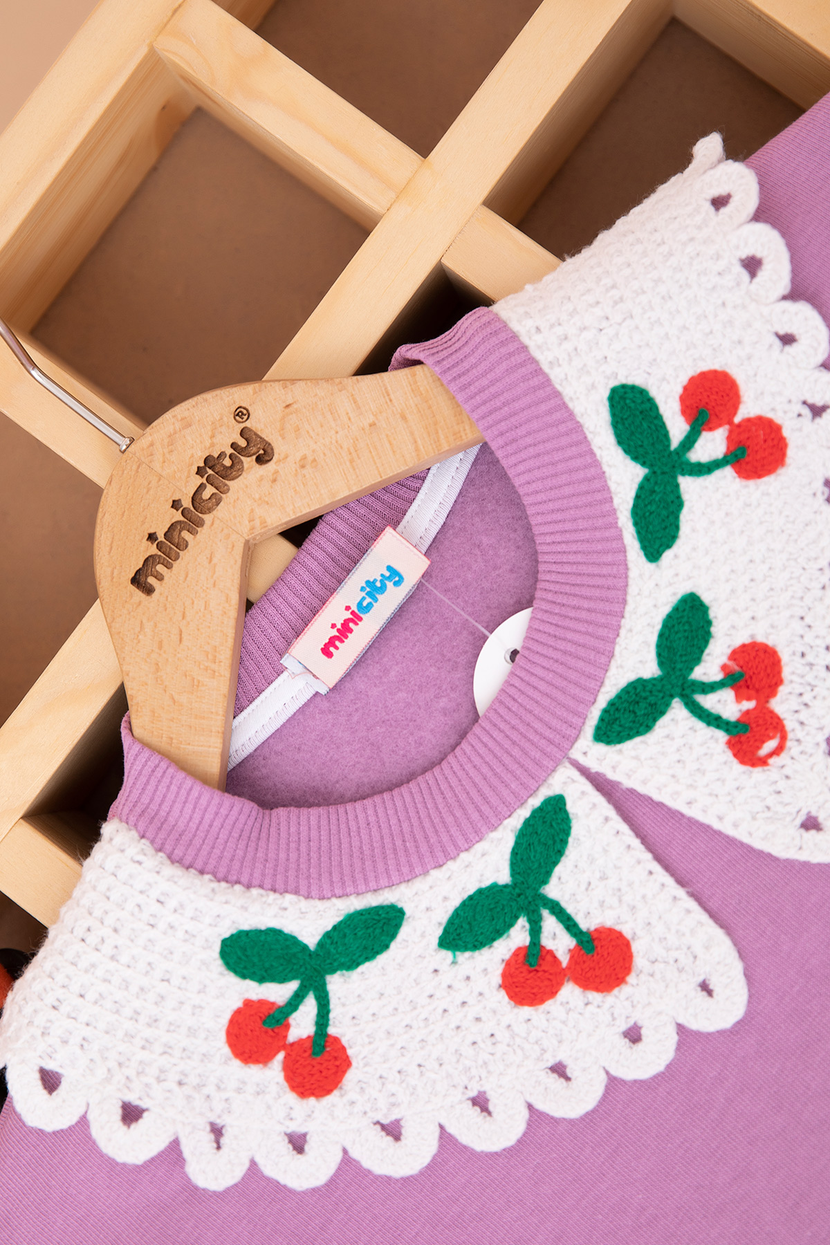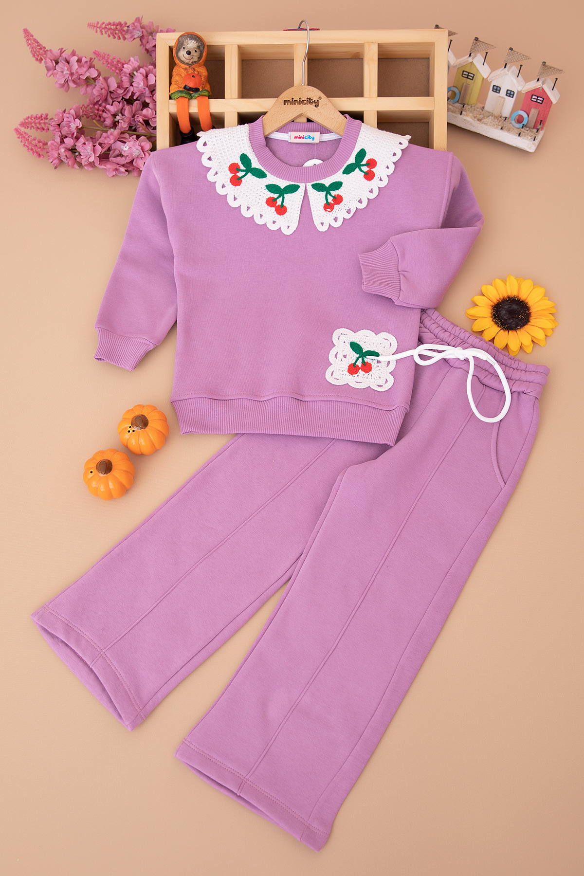 Kız Çocuk Cep Ve Yaka Kiraz Nakışlı Üçip Takım - 5038 (3-10 Yaş)