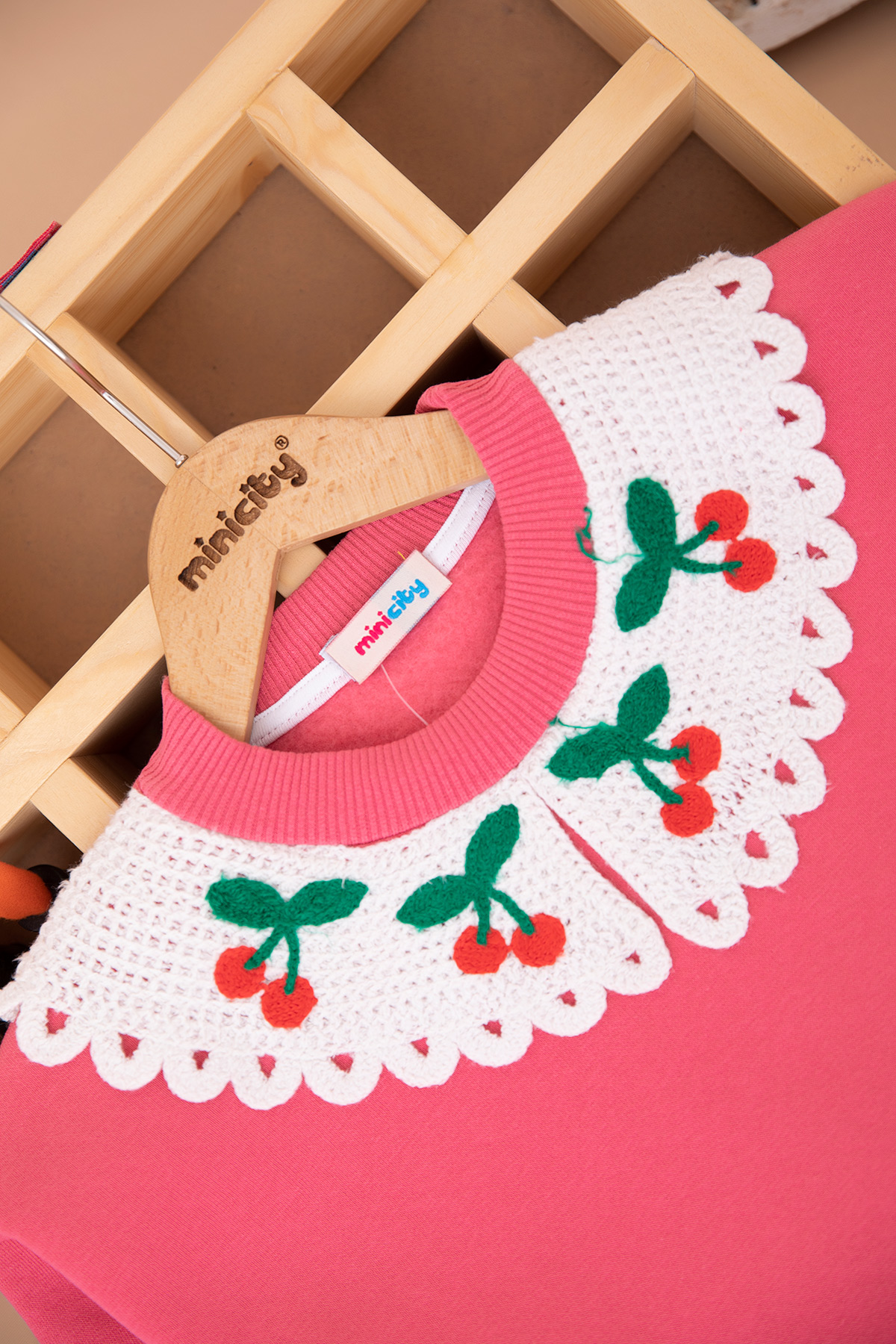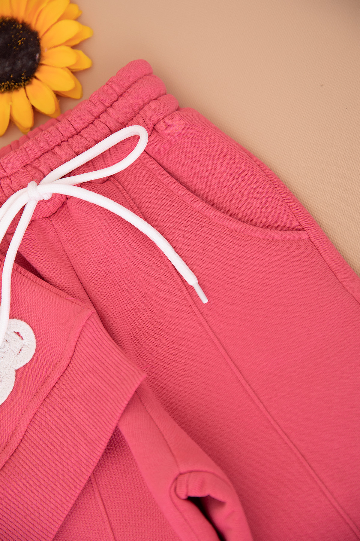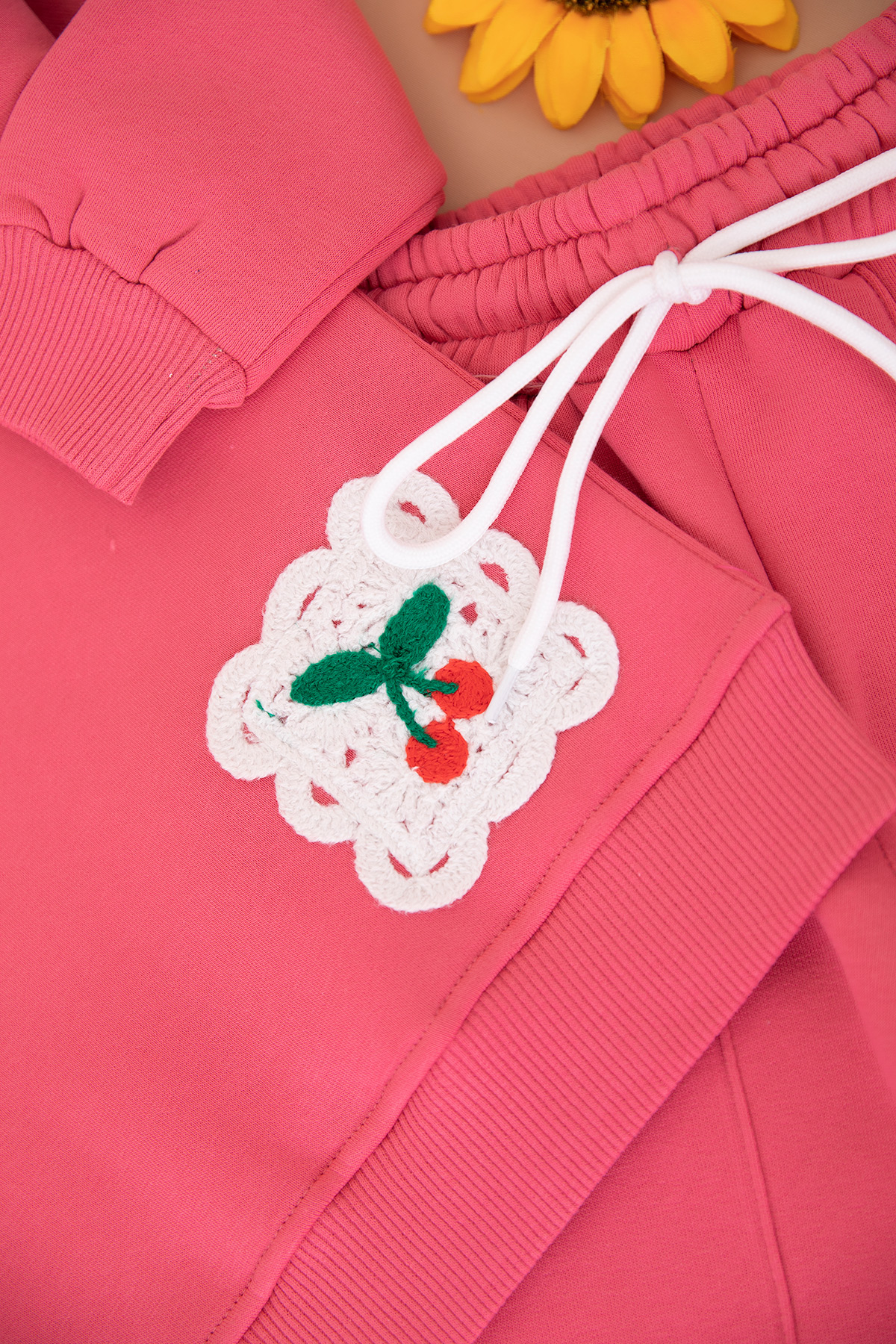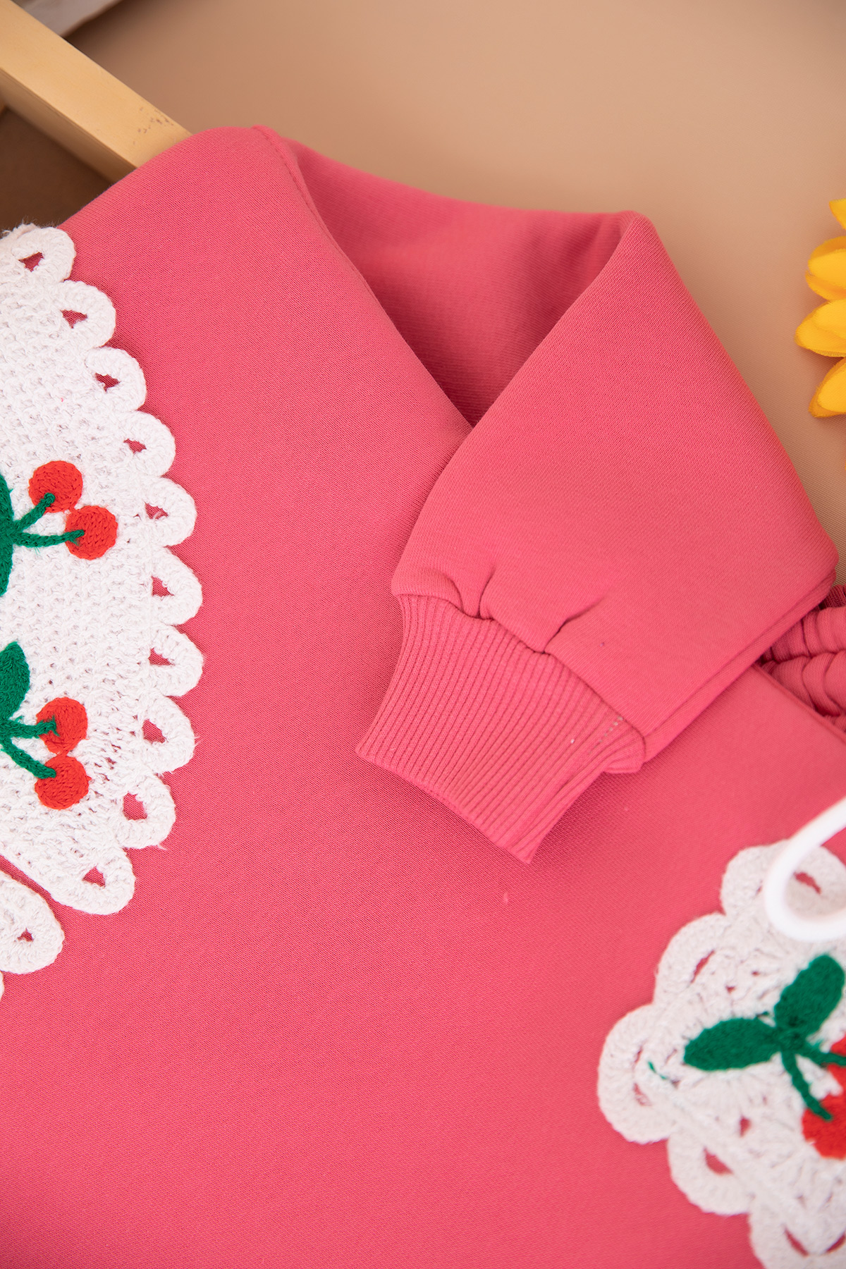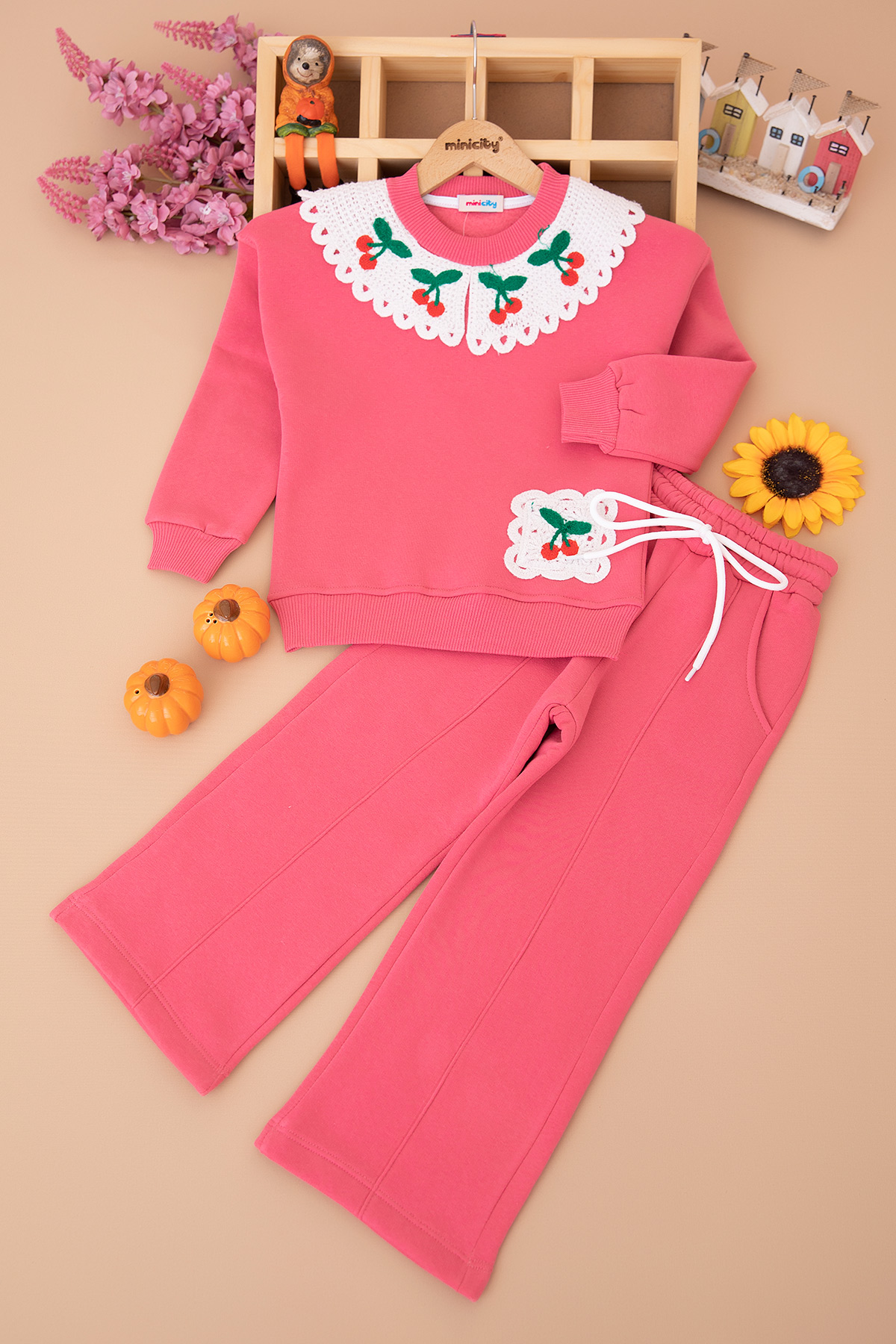 Kız Çocuk Cep Ve Yaka Kiraz Nakışlı Üçip Takım - 5038 (3-10 Yaş)