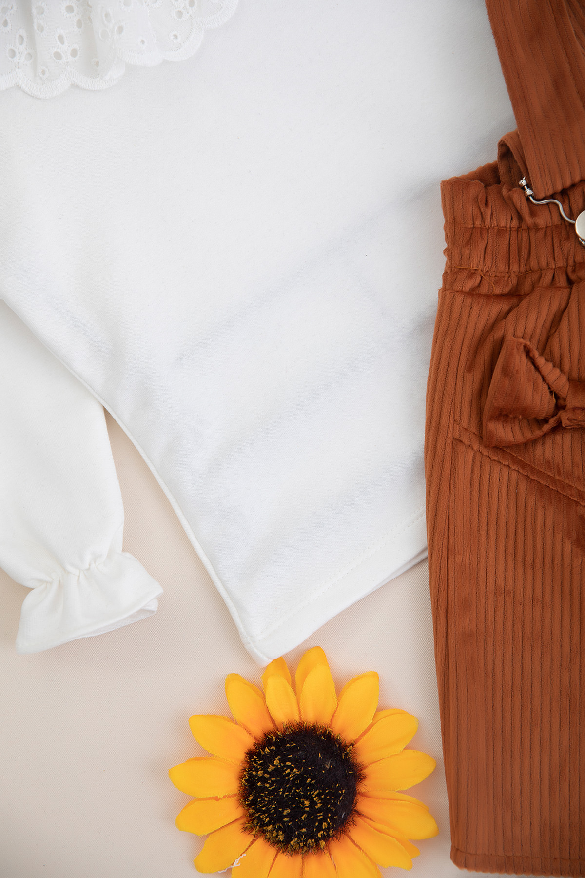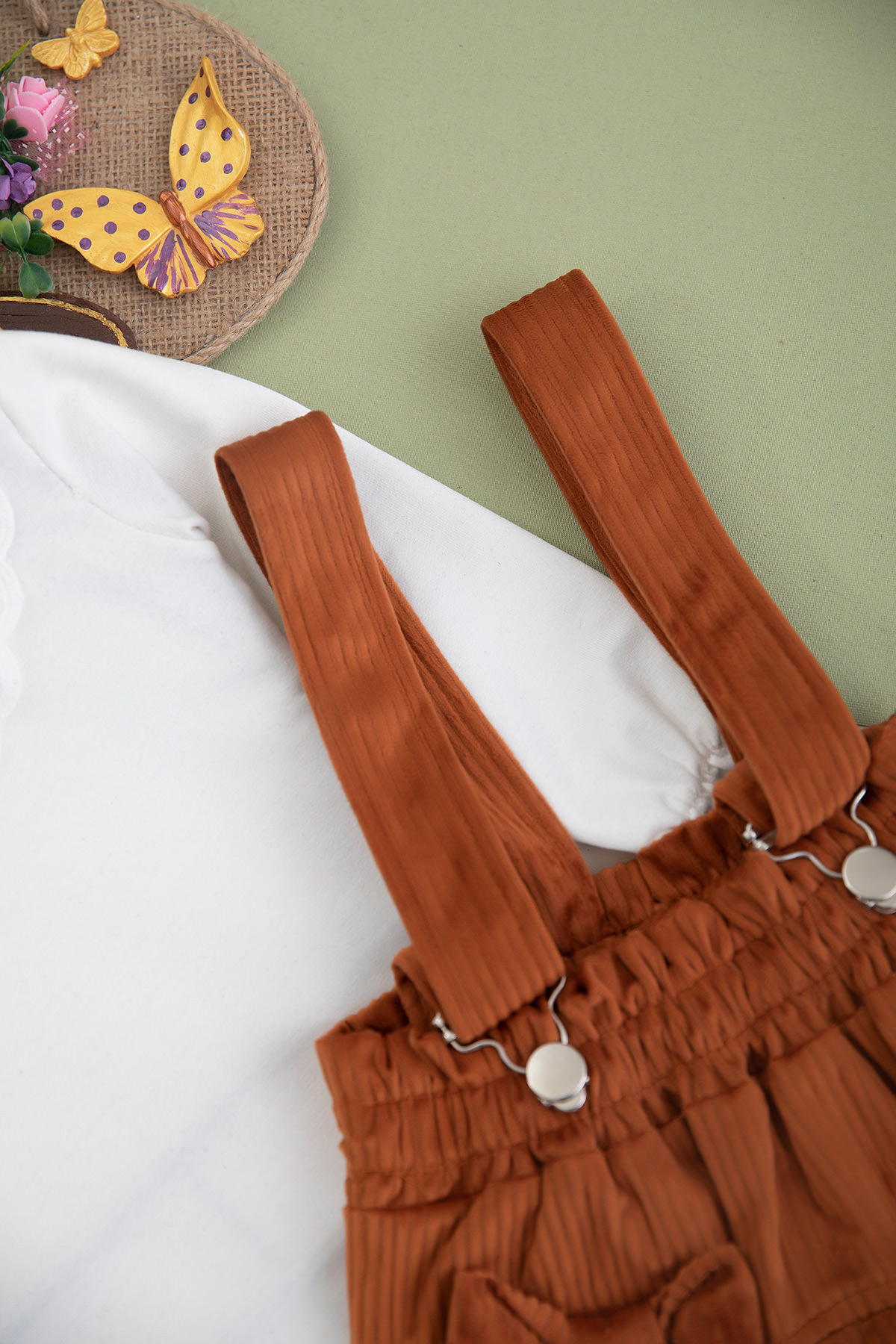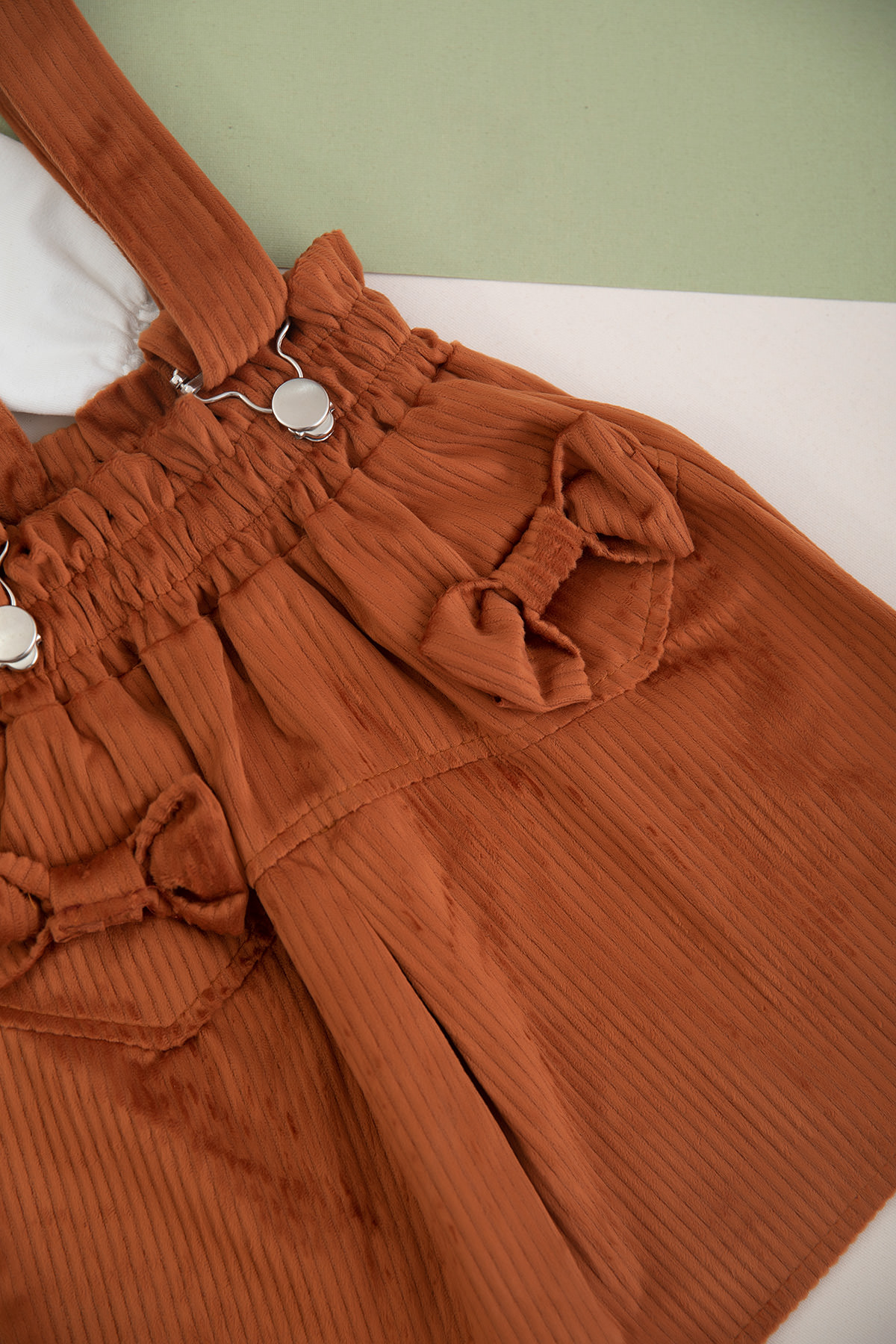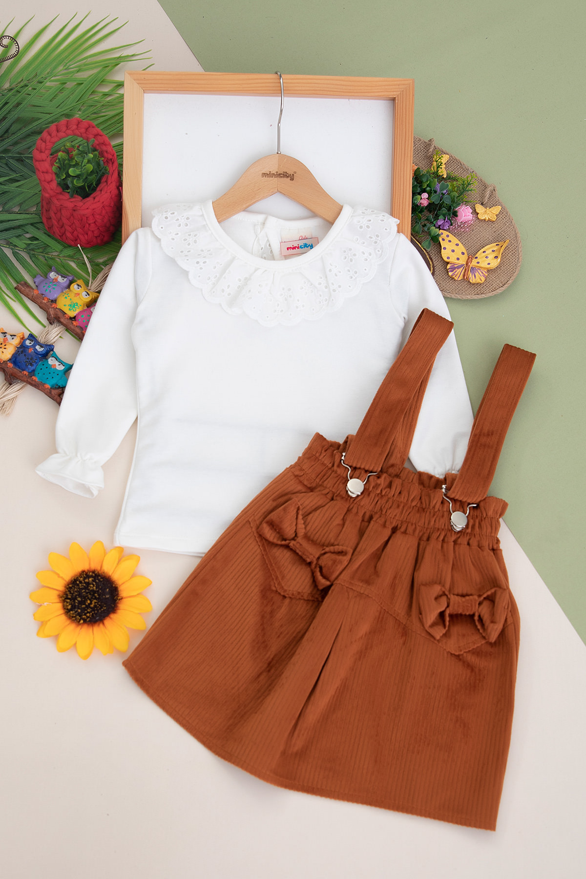 Kız Çocuk Cepleri Fiyonklu Kadife Salopet Takım - 1050 (3-7 Yaş)