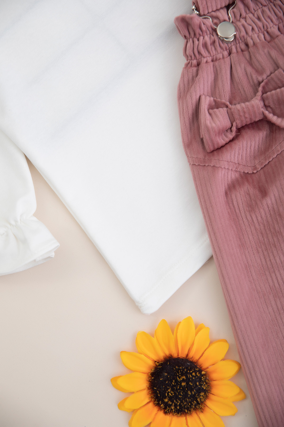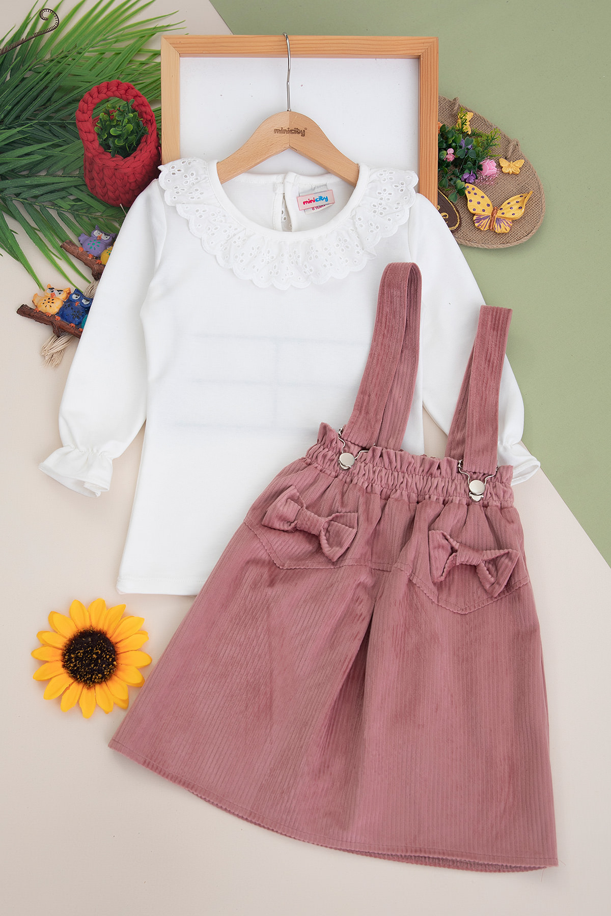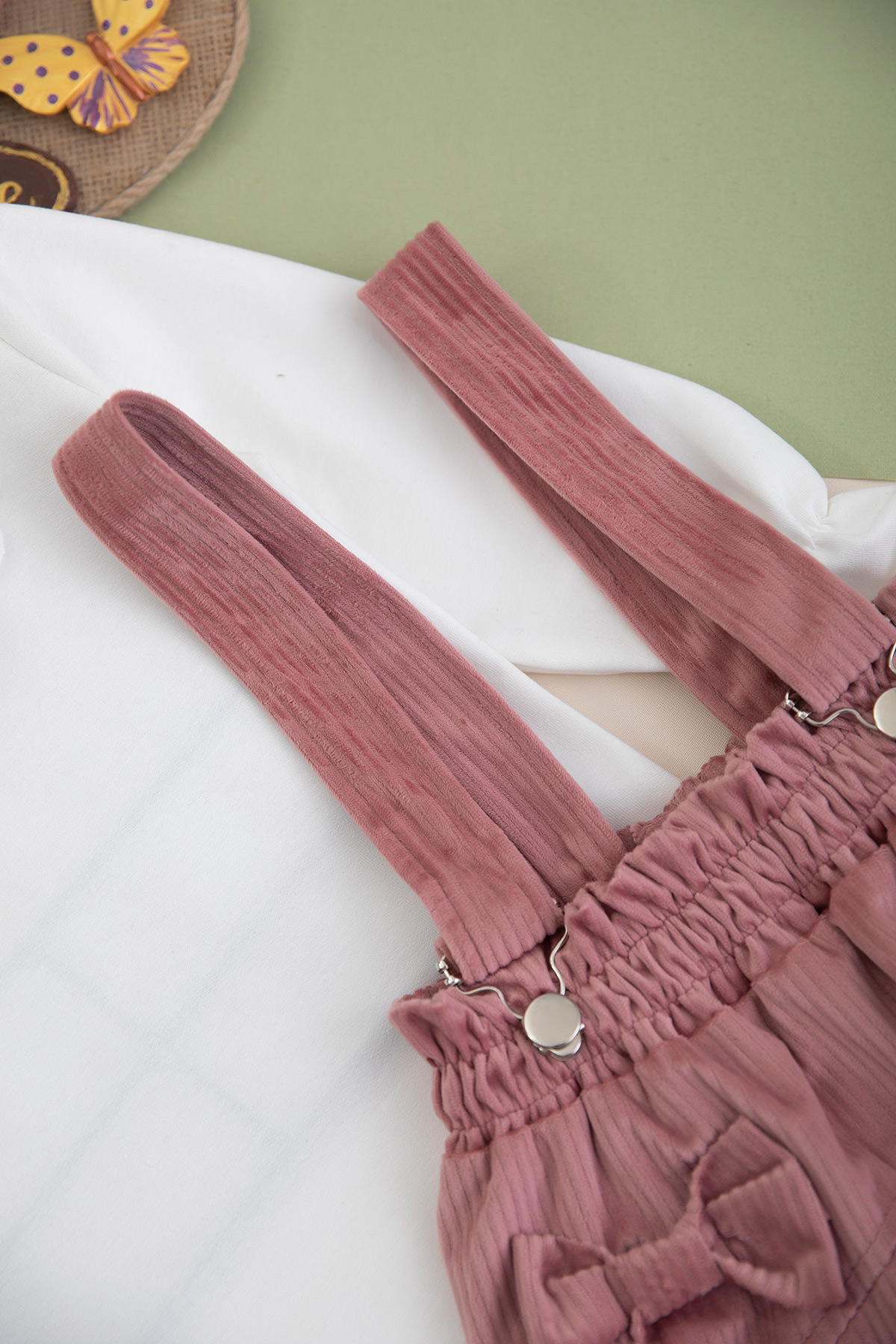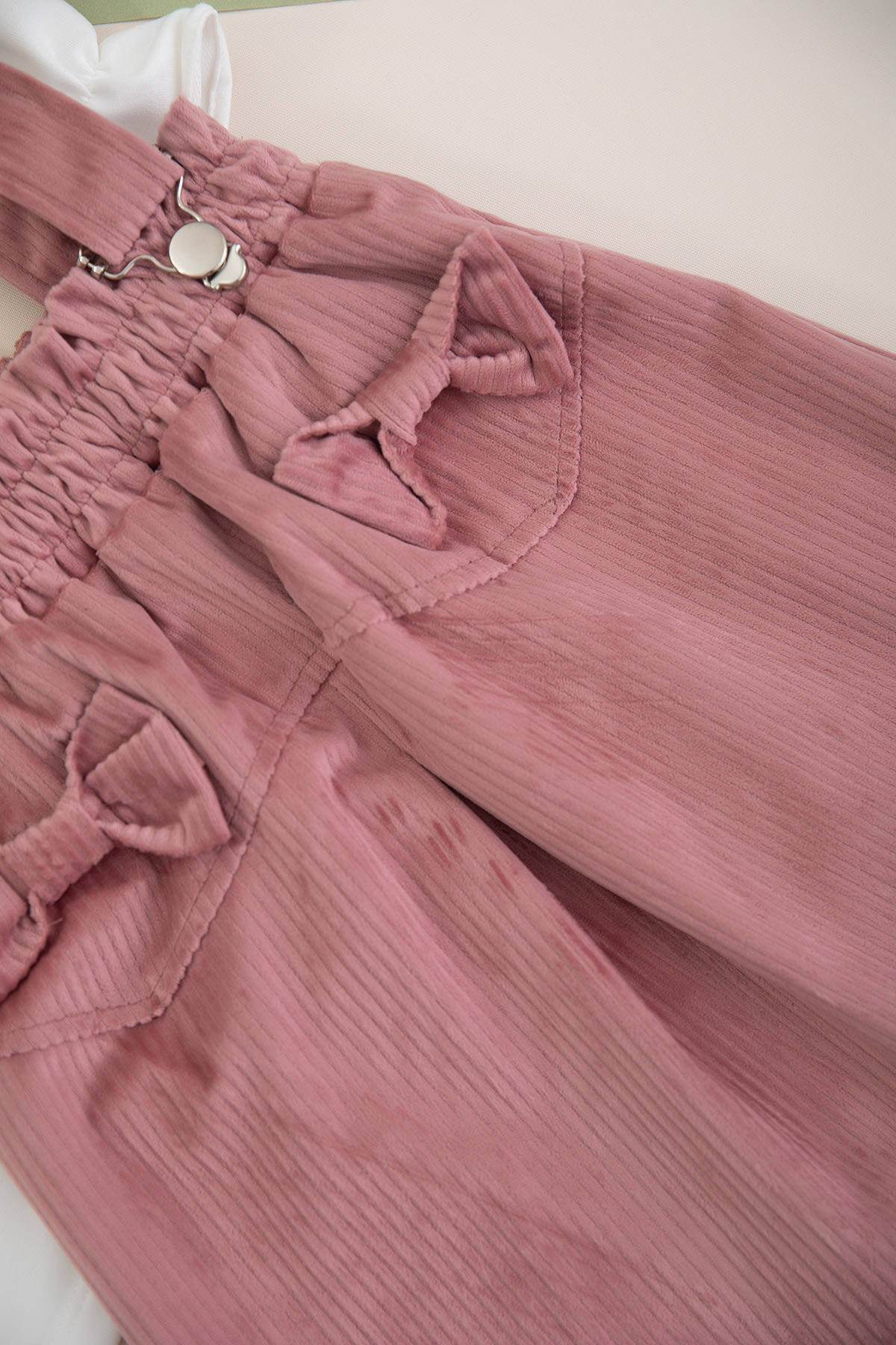 Kız Çocuk Cepleri Fiyonklu Kadife Salopet Takım - 1050 (8-12 Yaş)