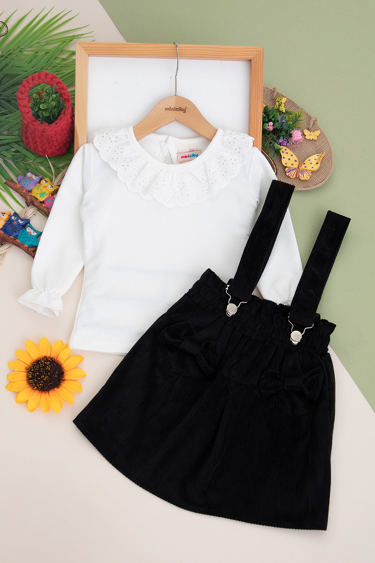 Kız Çocuk Cepleri Fiyonklu Kadife Salopet Takım - 1050 (8-12 Yaş)