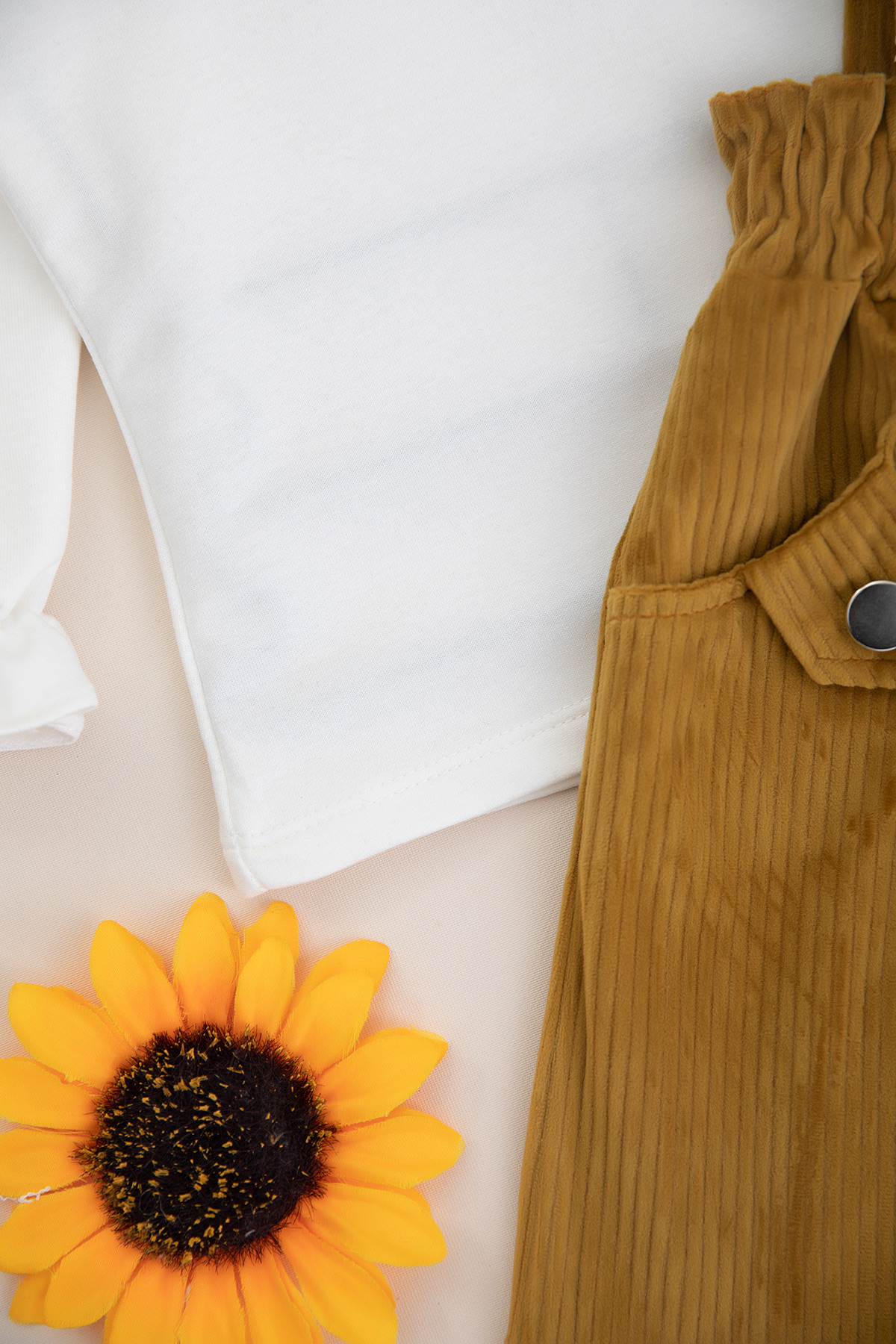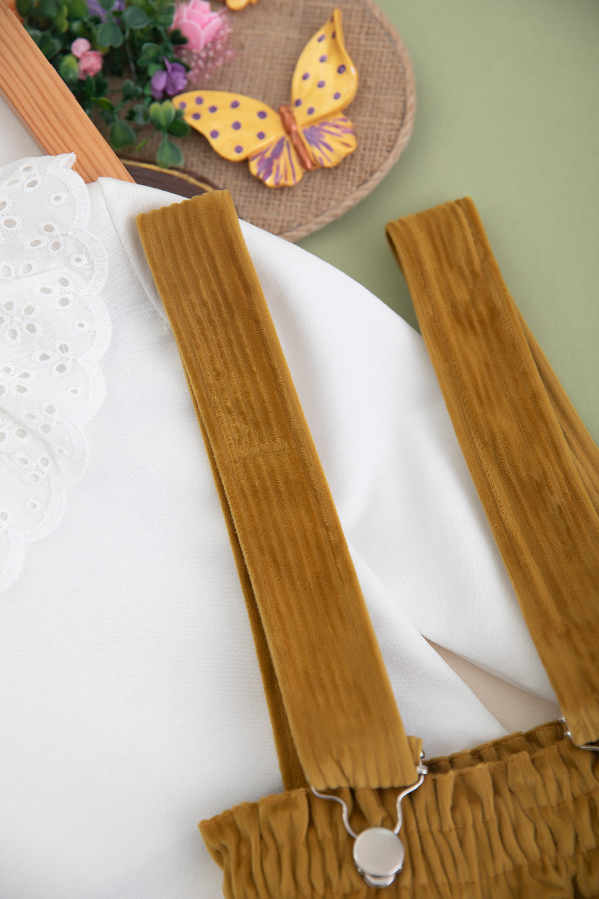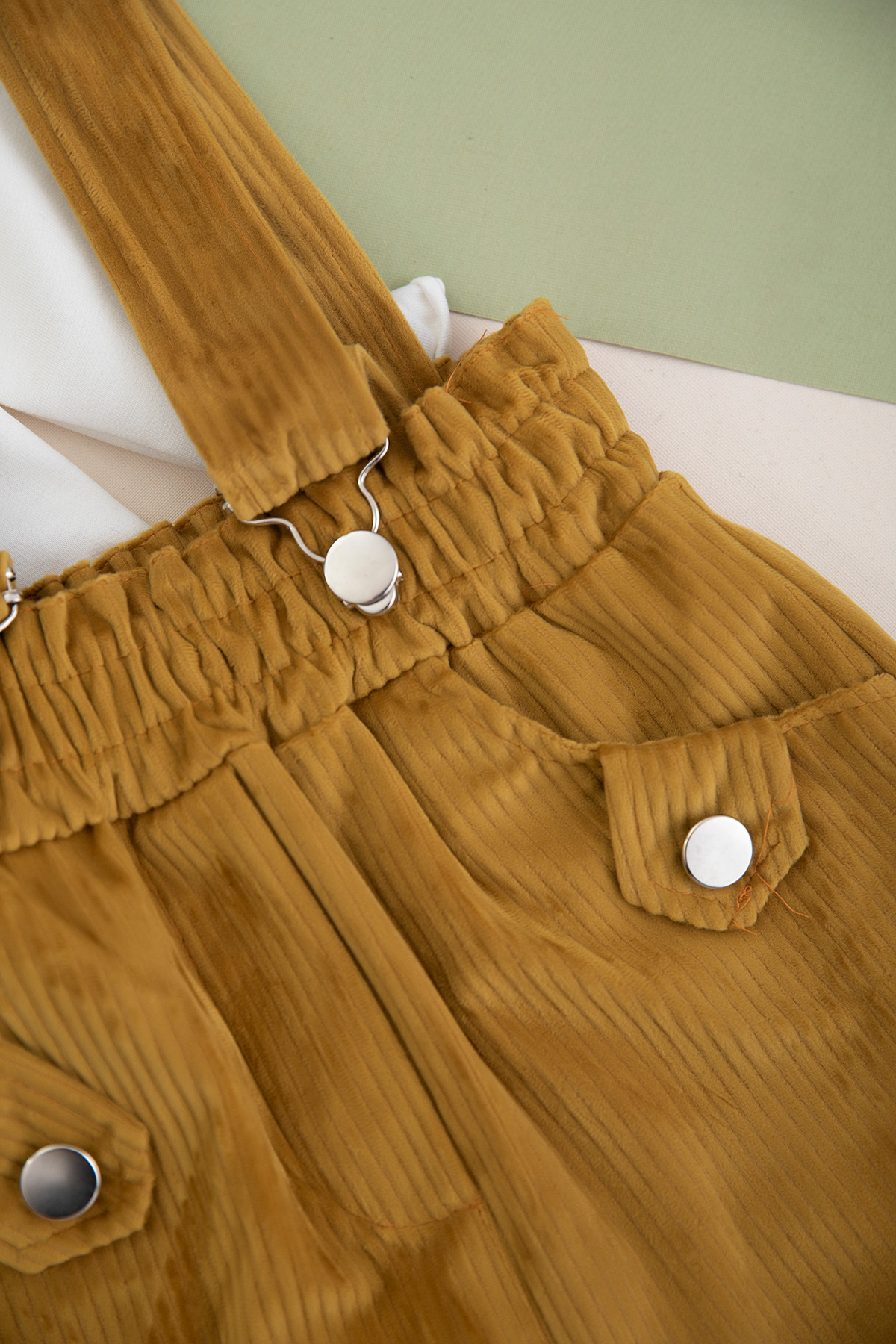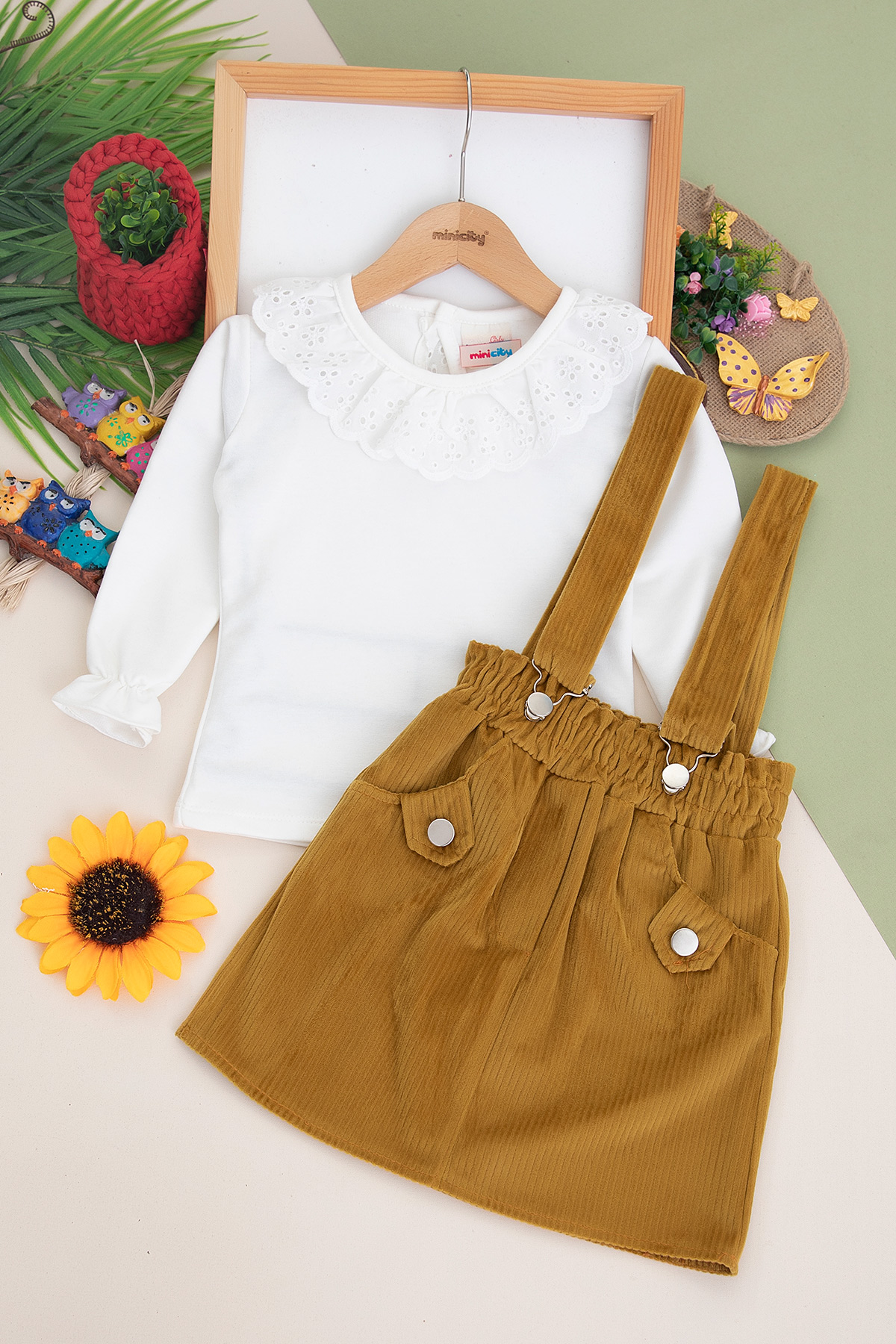 Kız Çocuk Cepleri Zımbalı Kadife Salopet Takım - 1053 (3-7 Yaş)