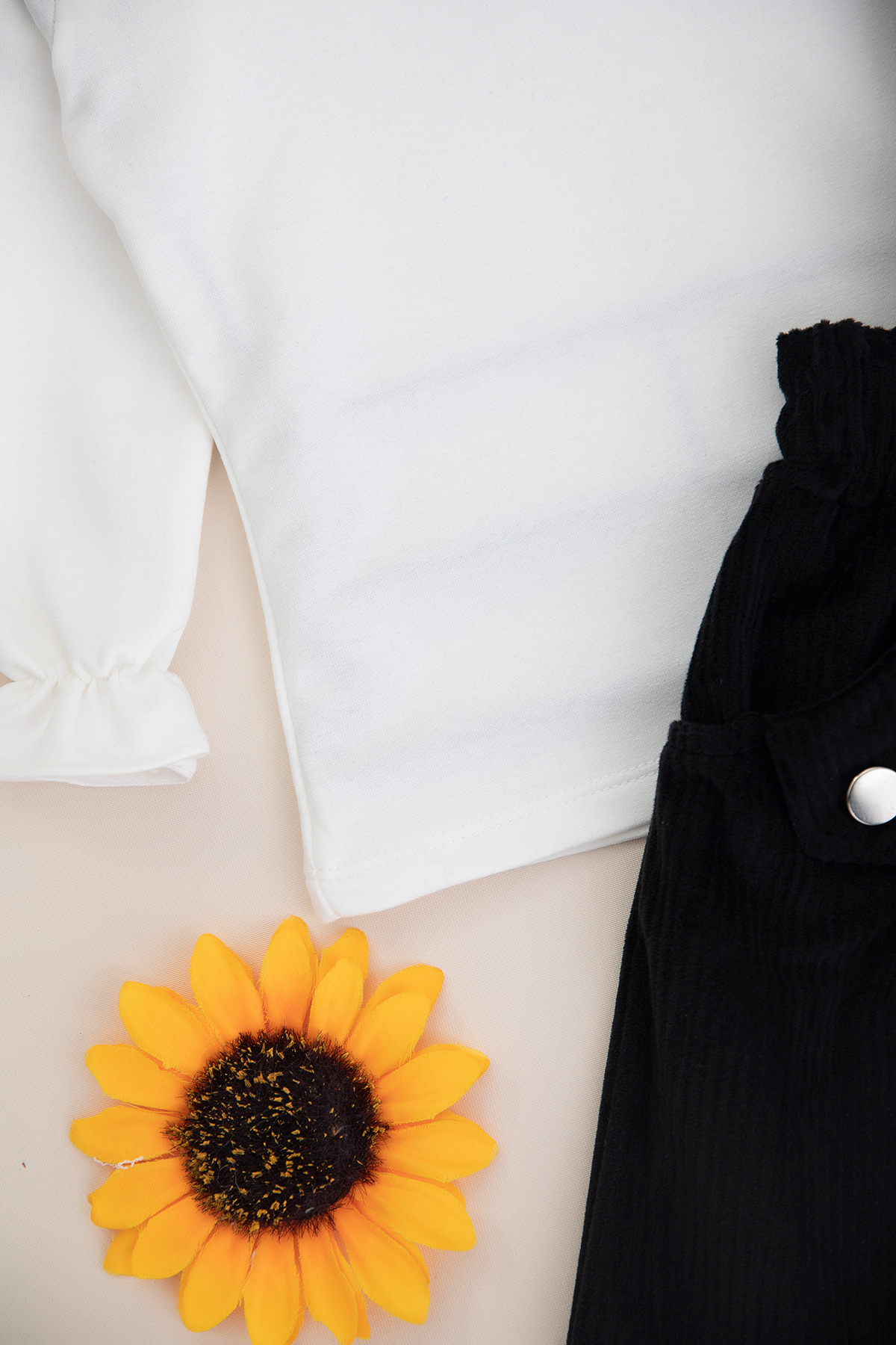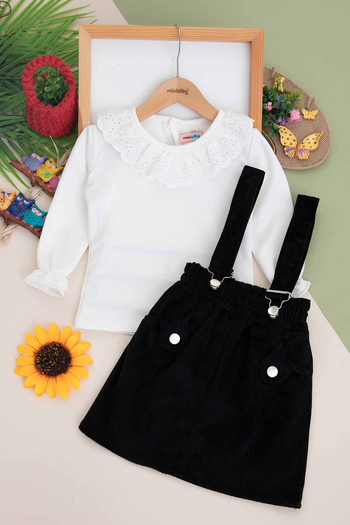 Kız Çocuk Cepleri Zımbalı Kadife Salopet Takım - 1053 (3-7 Yaş)