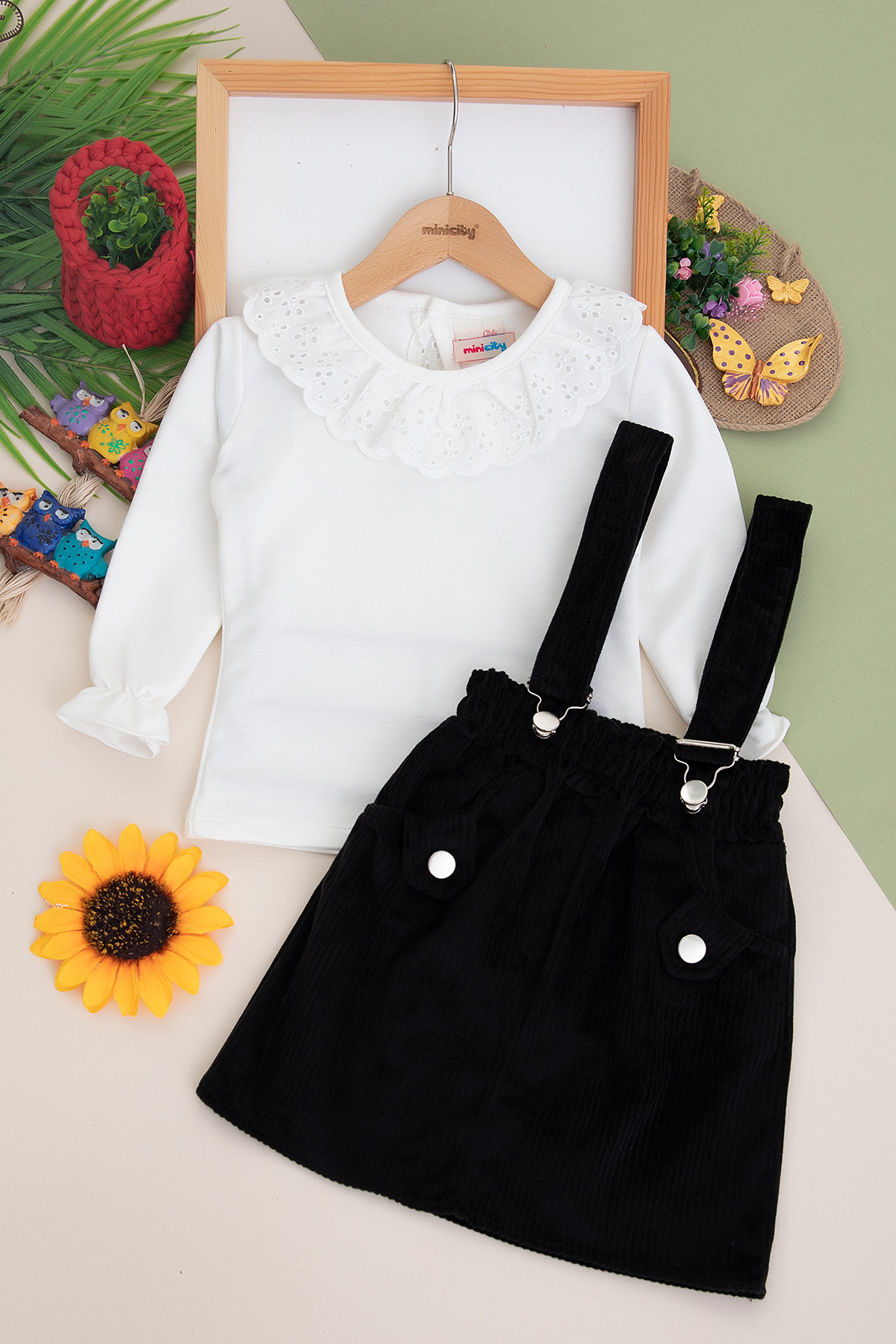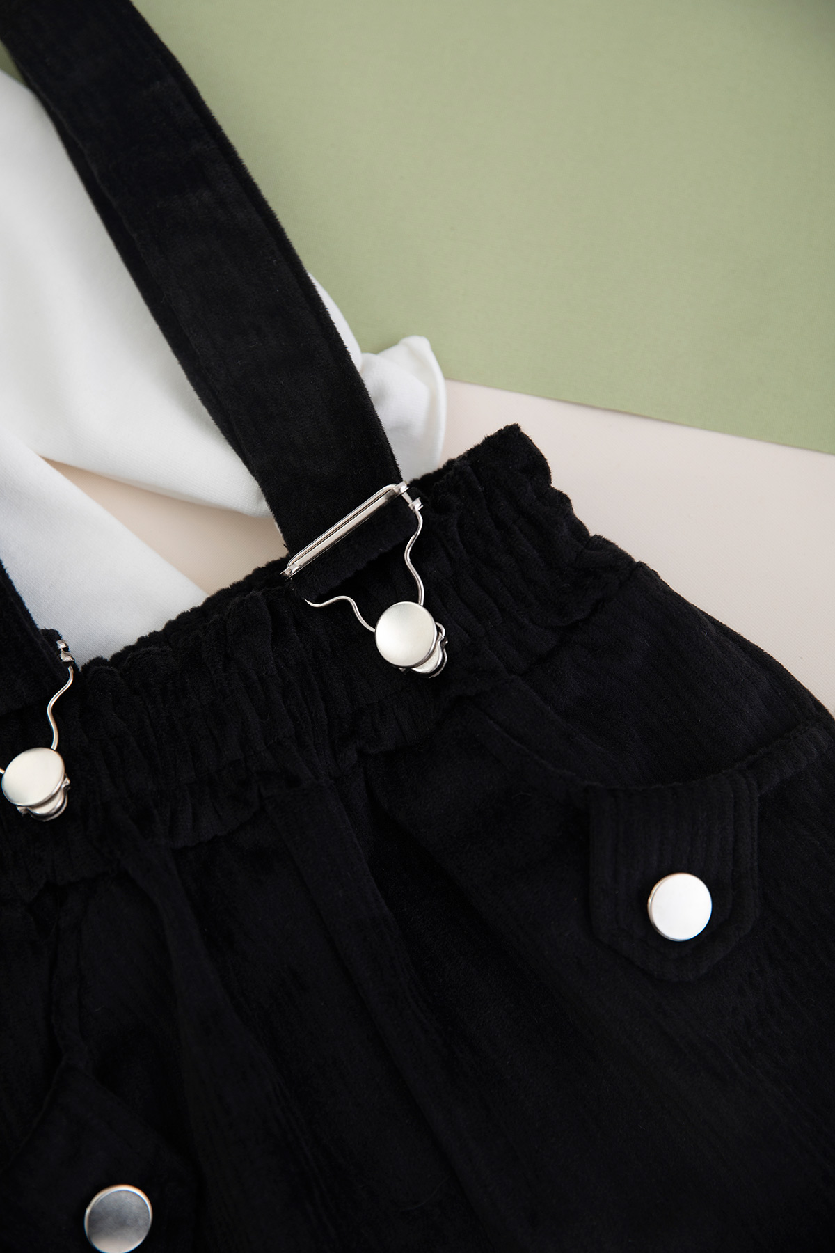 Kız Çocuk Cepleri Zımbalı Kadife Salopet Takım - 1053 (8-12 Yaş)