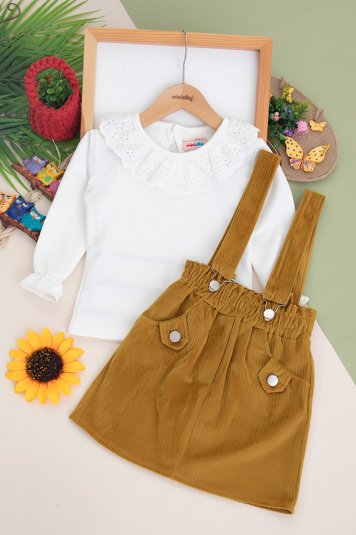 Kız Çocuk Cepleri Zımbalı Kadife Salopet Takım - 1053 (8-12 Yaş)