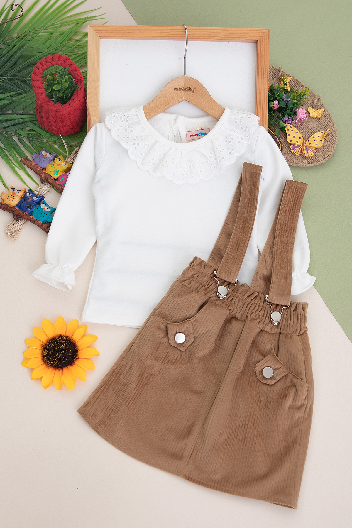 Kız Çocuk Cepleri Zımbalı Kadife Salopet Takım - 1053 (8-12 Yaş)