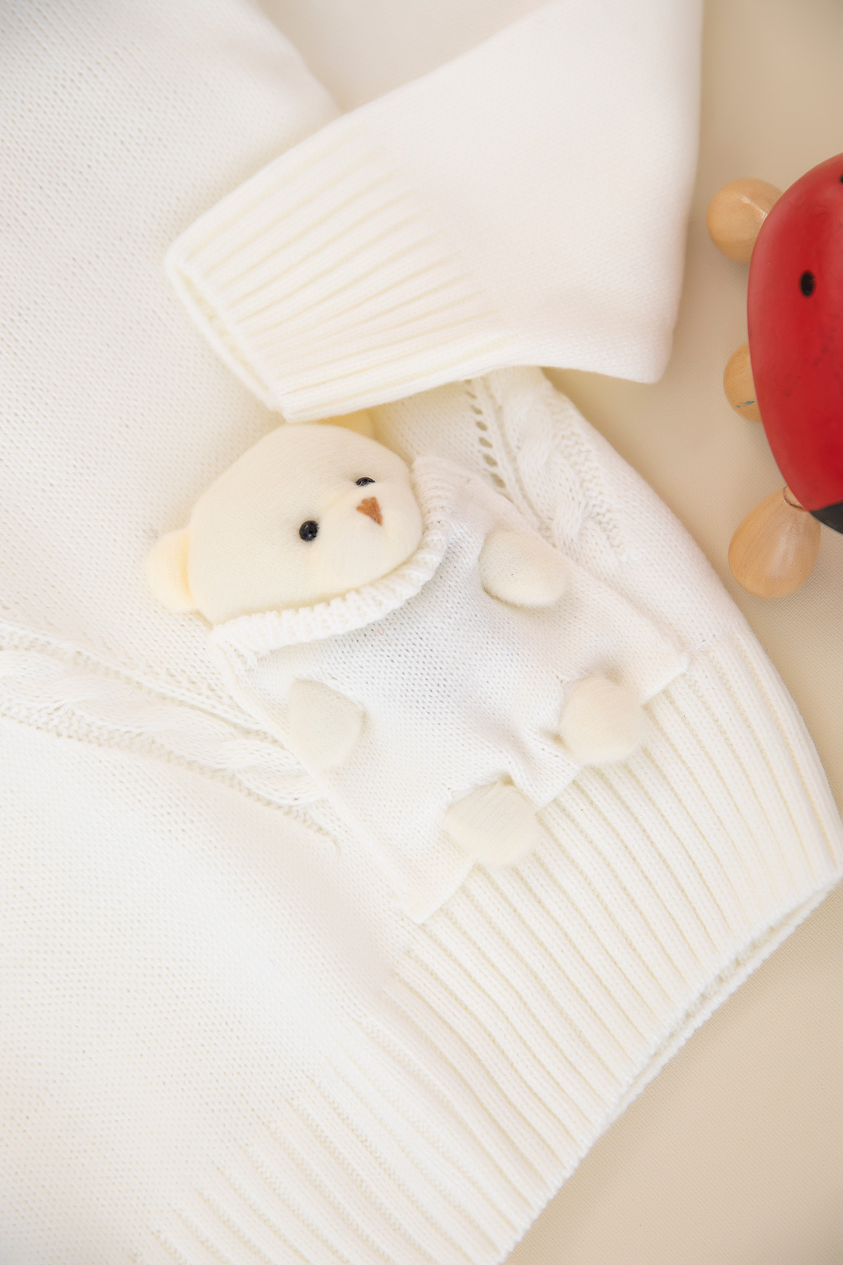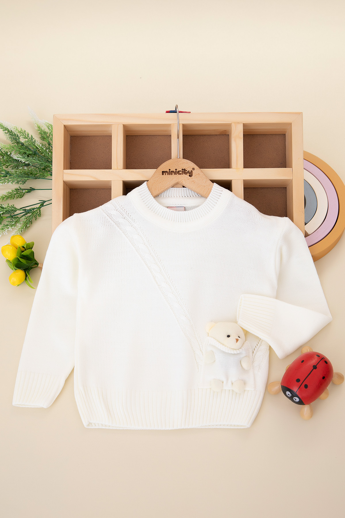Kız Çocuk Cepte Ayıcık Oyuncaklı Kazak (2-8 Yaş)