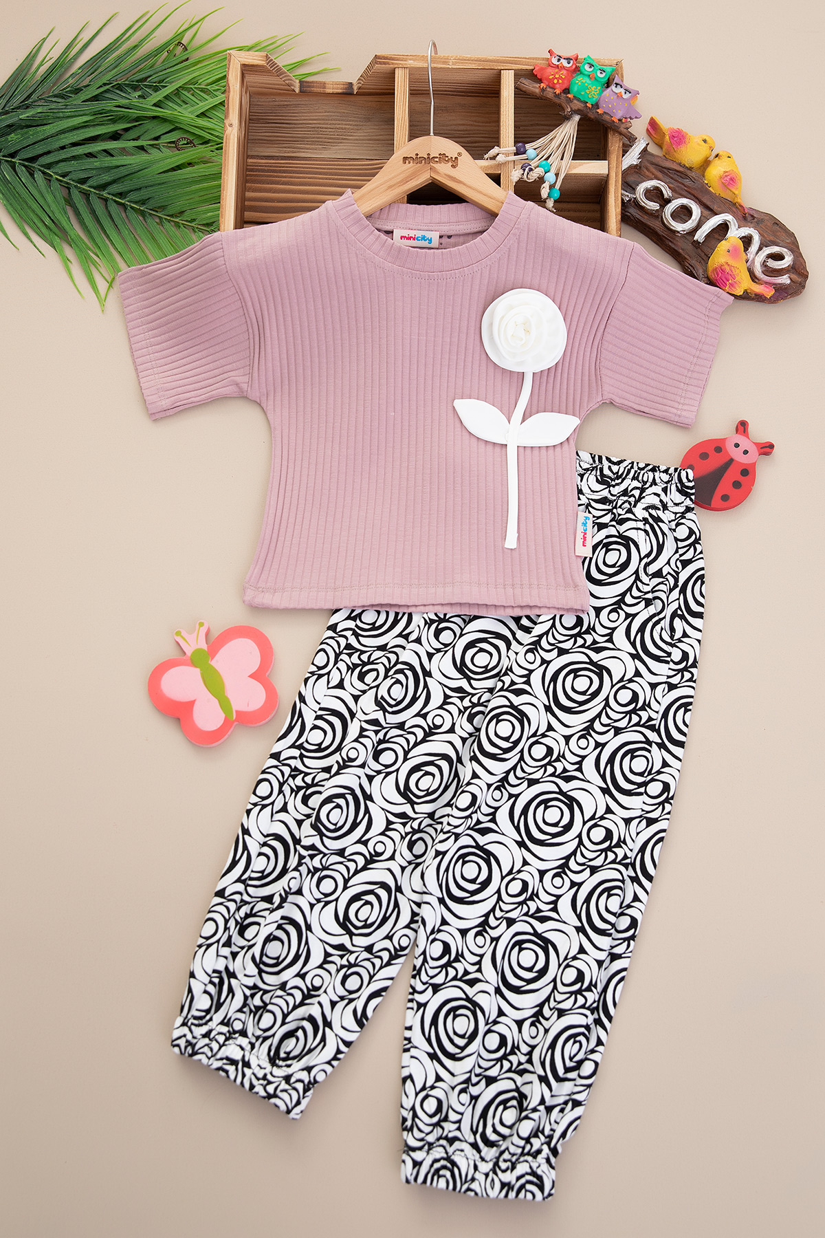 Kız Çocuk Çiçek Aksesuarlı Takım-2408 (3-6 Yaş)