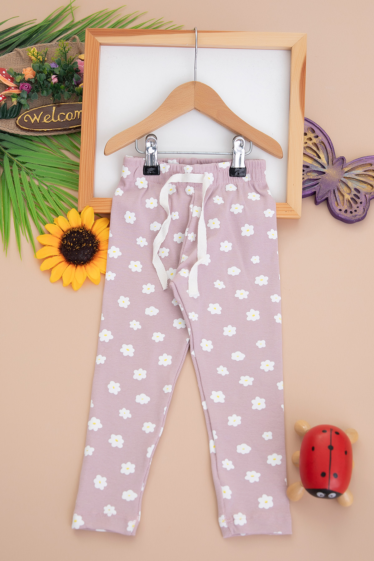 Kız Çocuk Çiçek Baskılı Fitilli Tayt - 87 (2-10 Yaş)