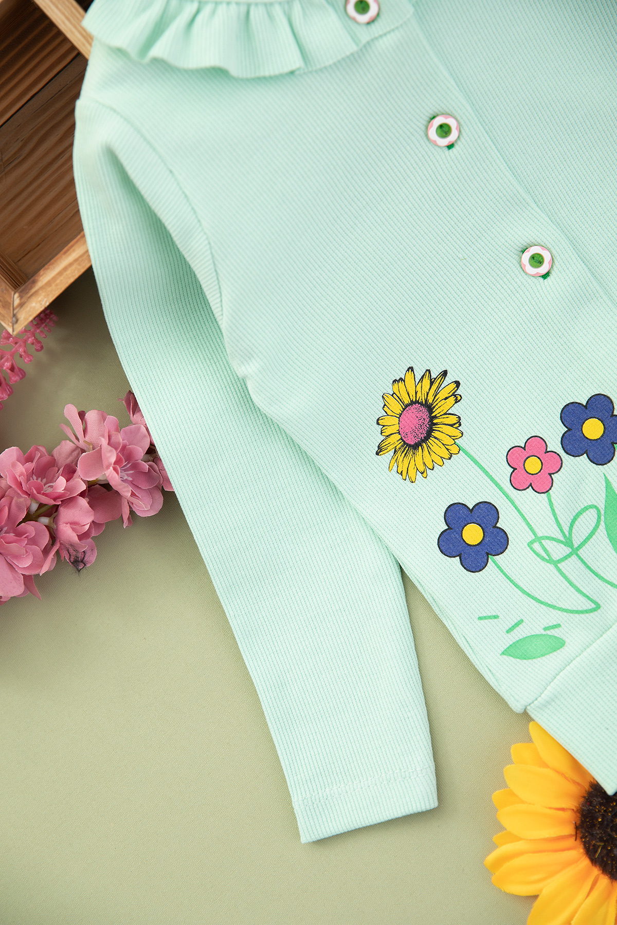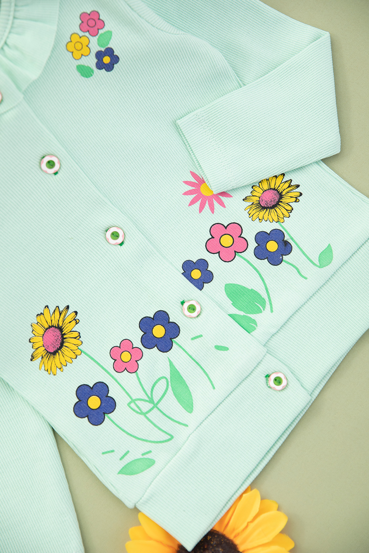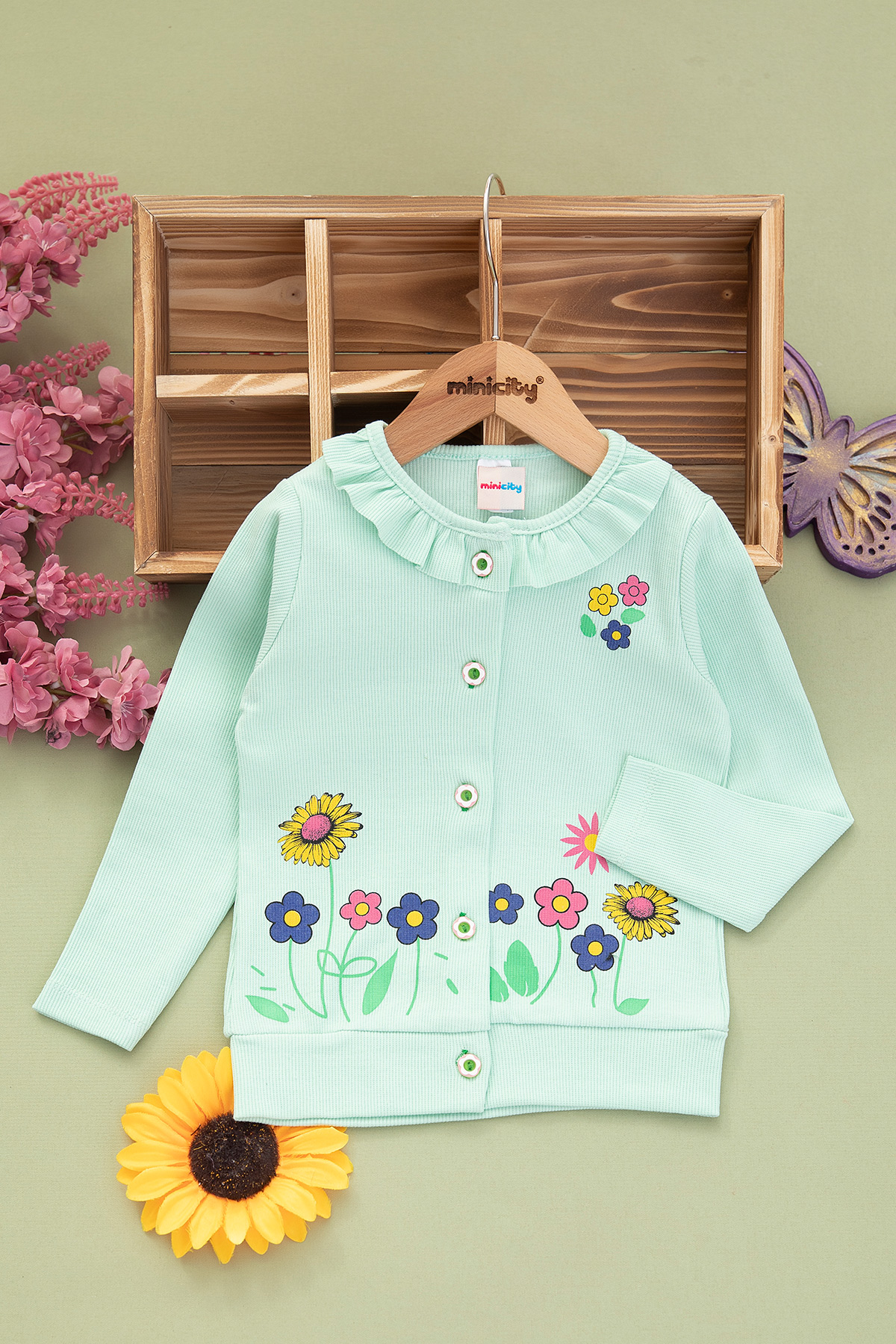 Kız Çocuk Çiçek Baskılı Kaşkorse Hırka (2-8 Yaş)