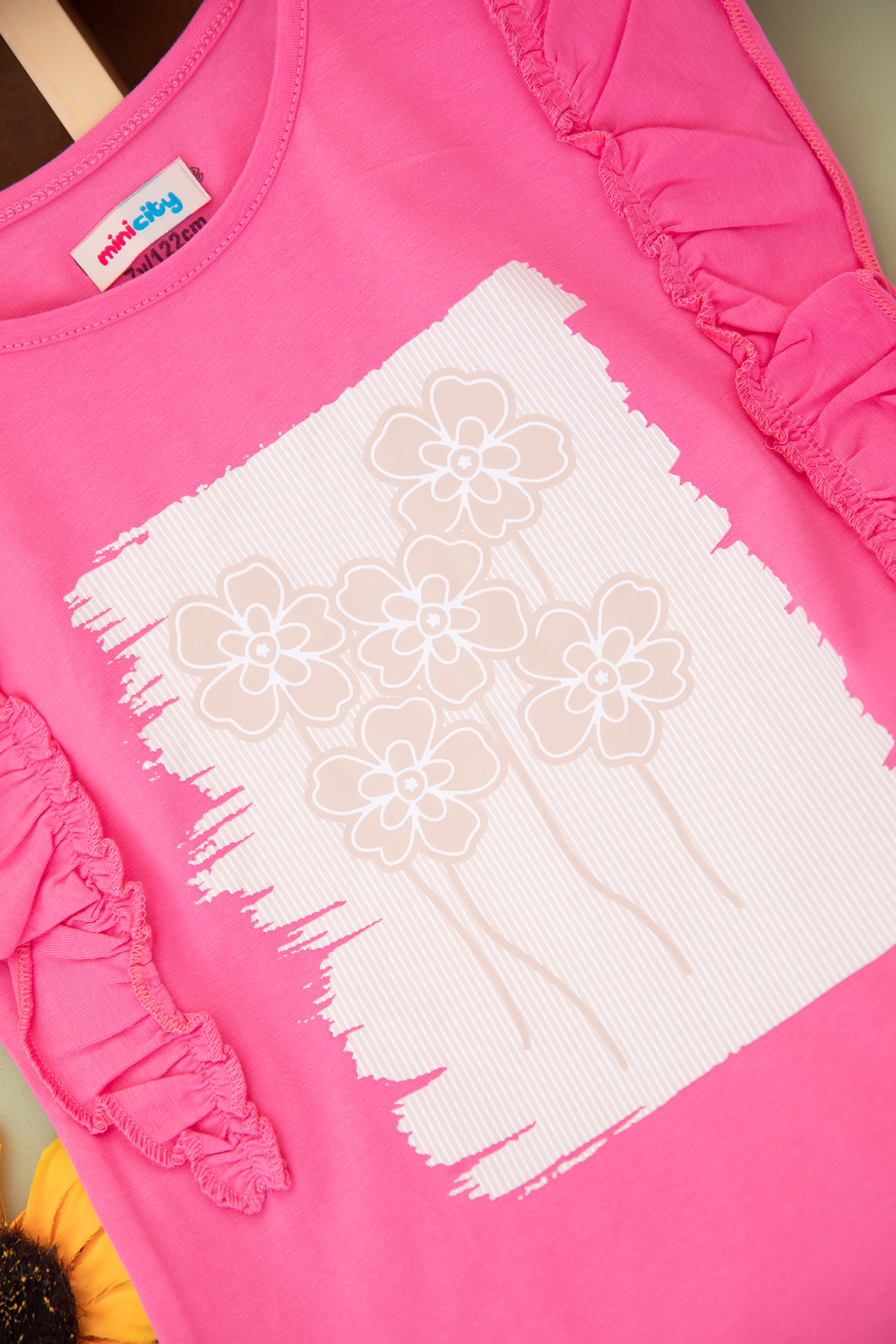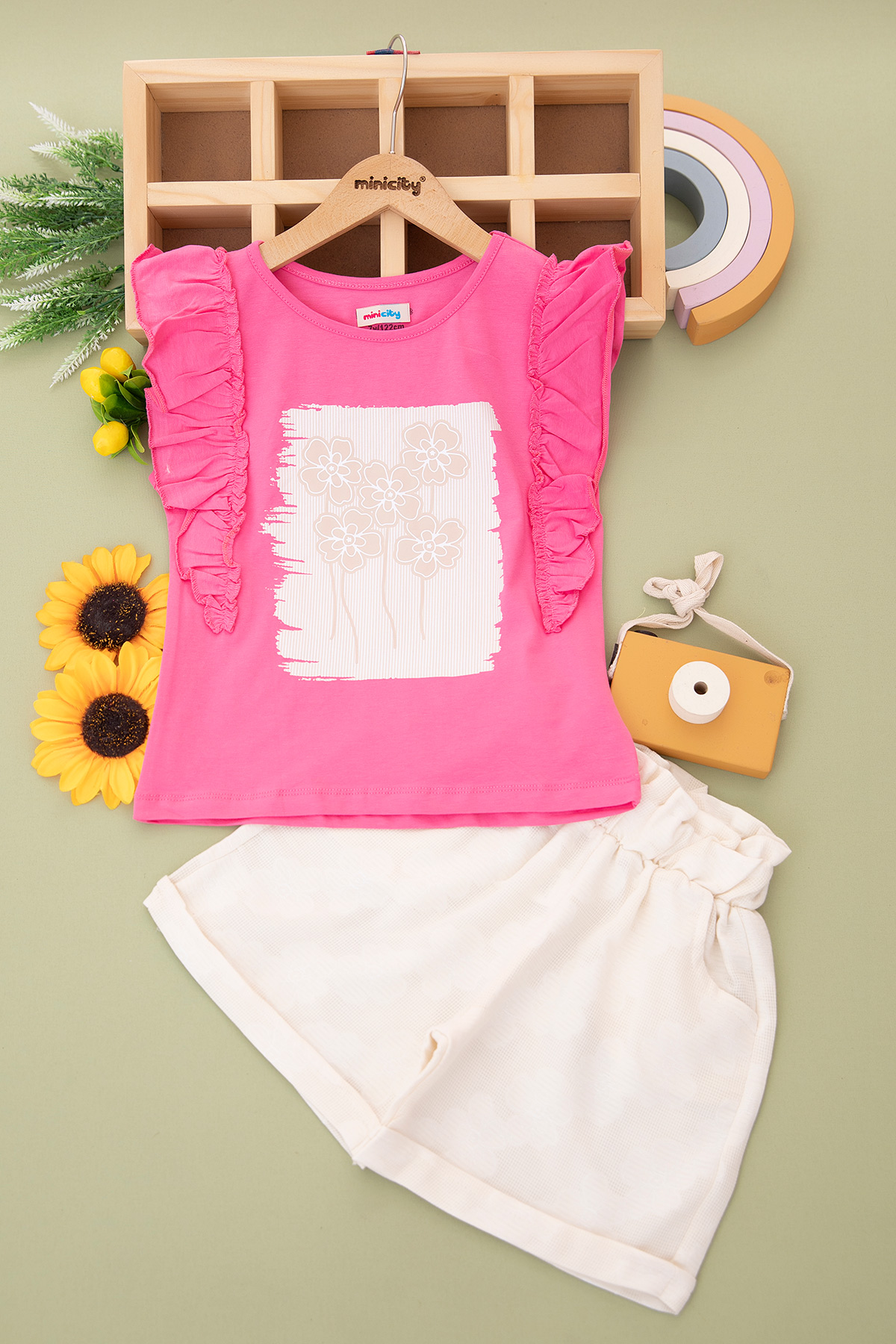 Kız Çocuk Çiçek Baskılı Şortlu Takım - 24299 (3-6 Yaş)