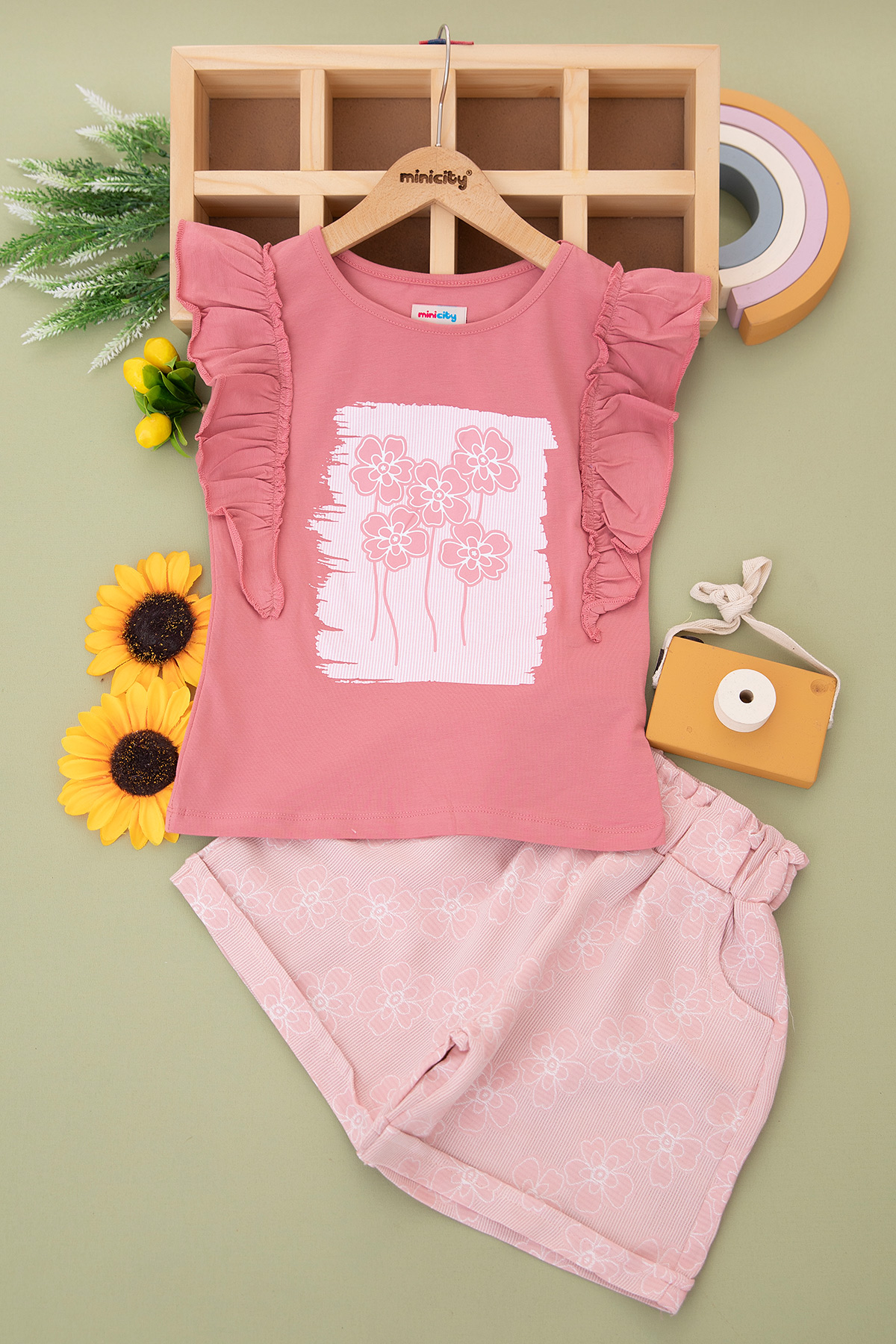 Kız Çocuk Çiçek Baskılı Şortlu Takım - 24300 (7-10 Yaş)