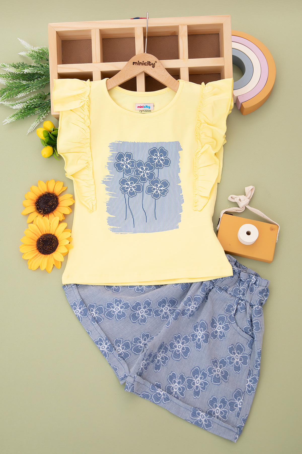 Kız Çocuk Çiçek Baskılı Şortlu Takım - 24300 (7-10 Yaş)