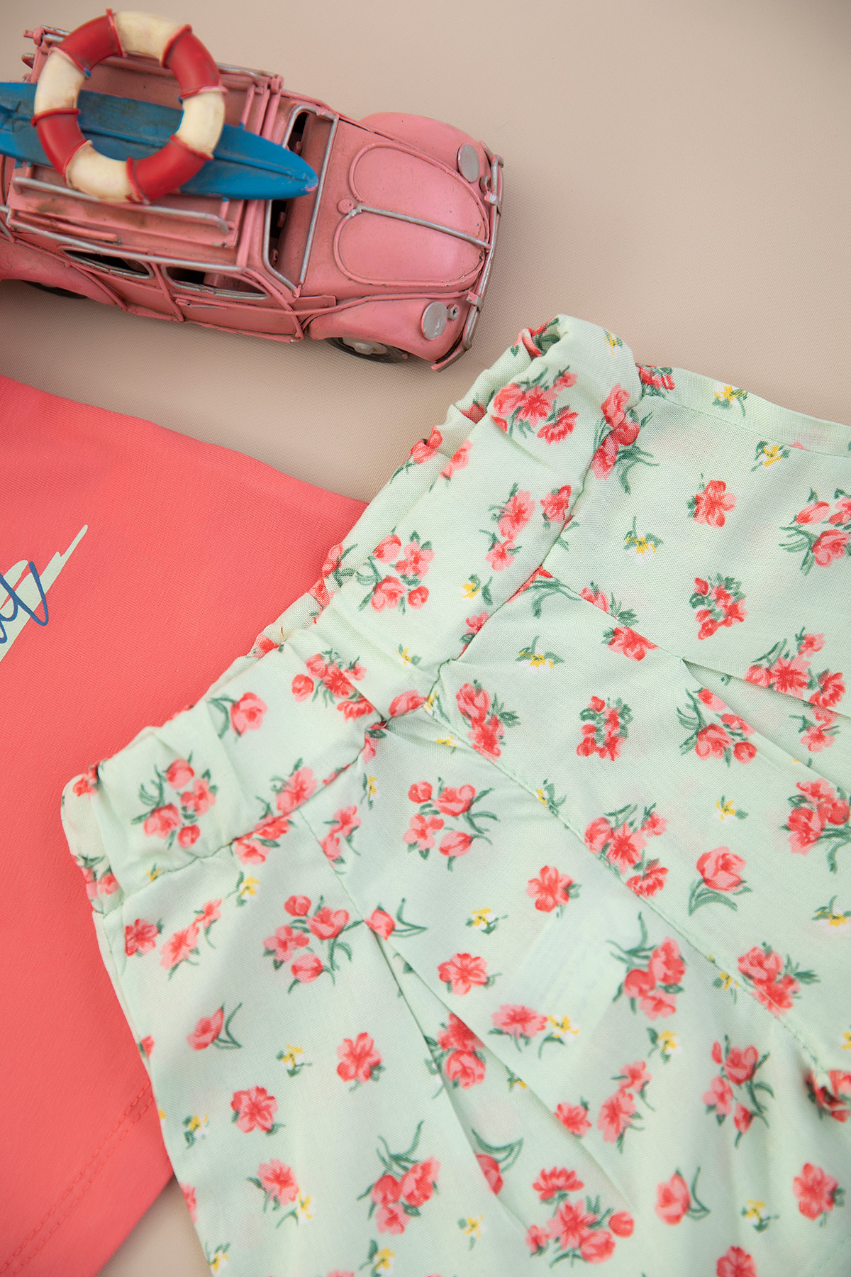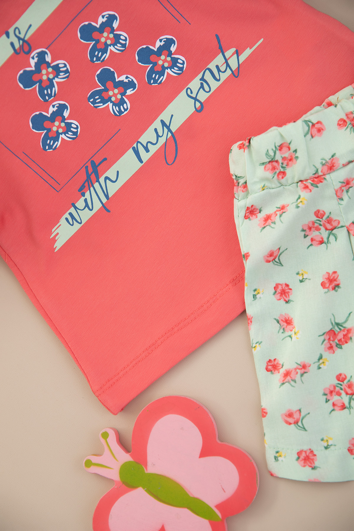Kız Çocuk Çiçek Baskılı Şortlu Takım - 25460 (3-6 Yaş)