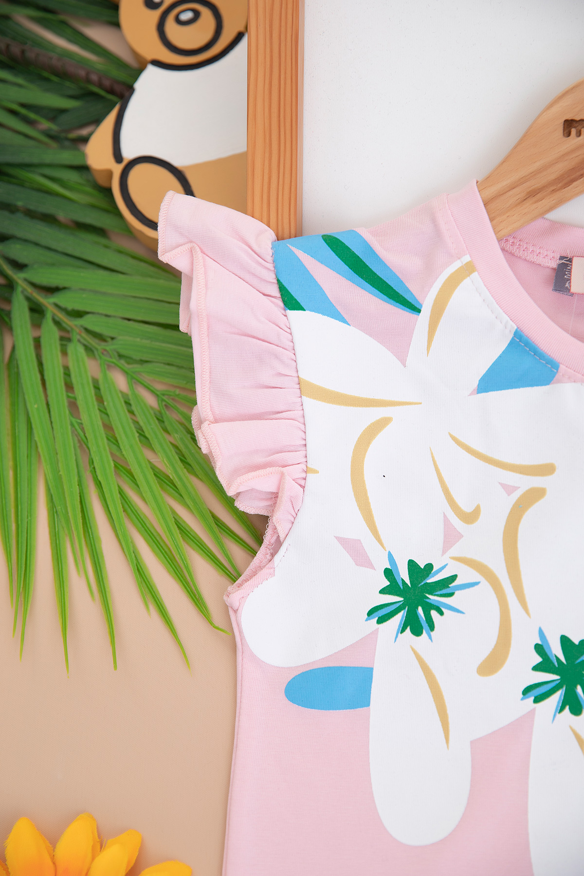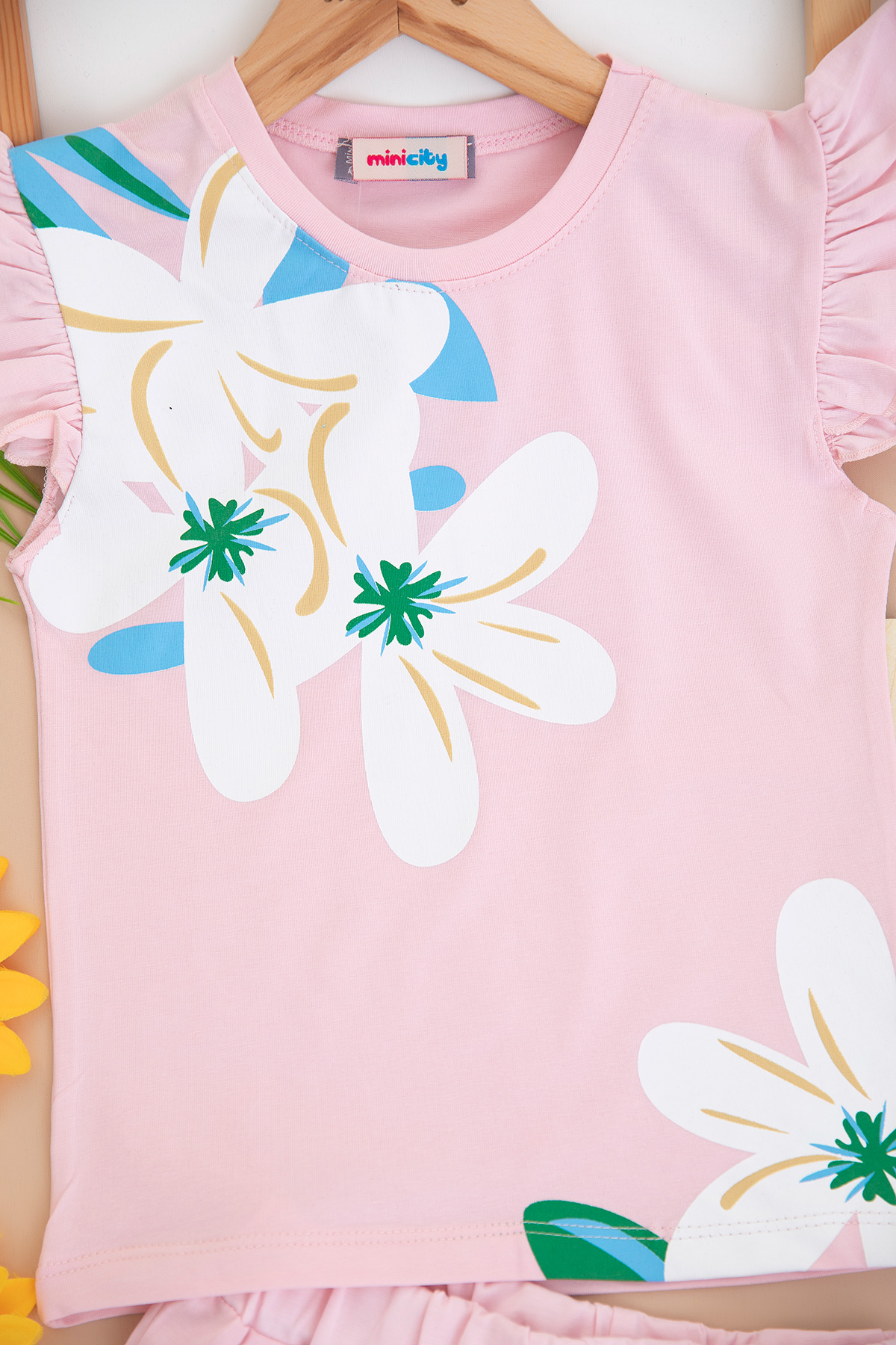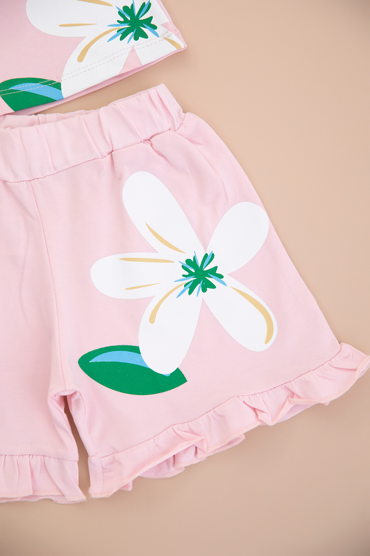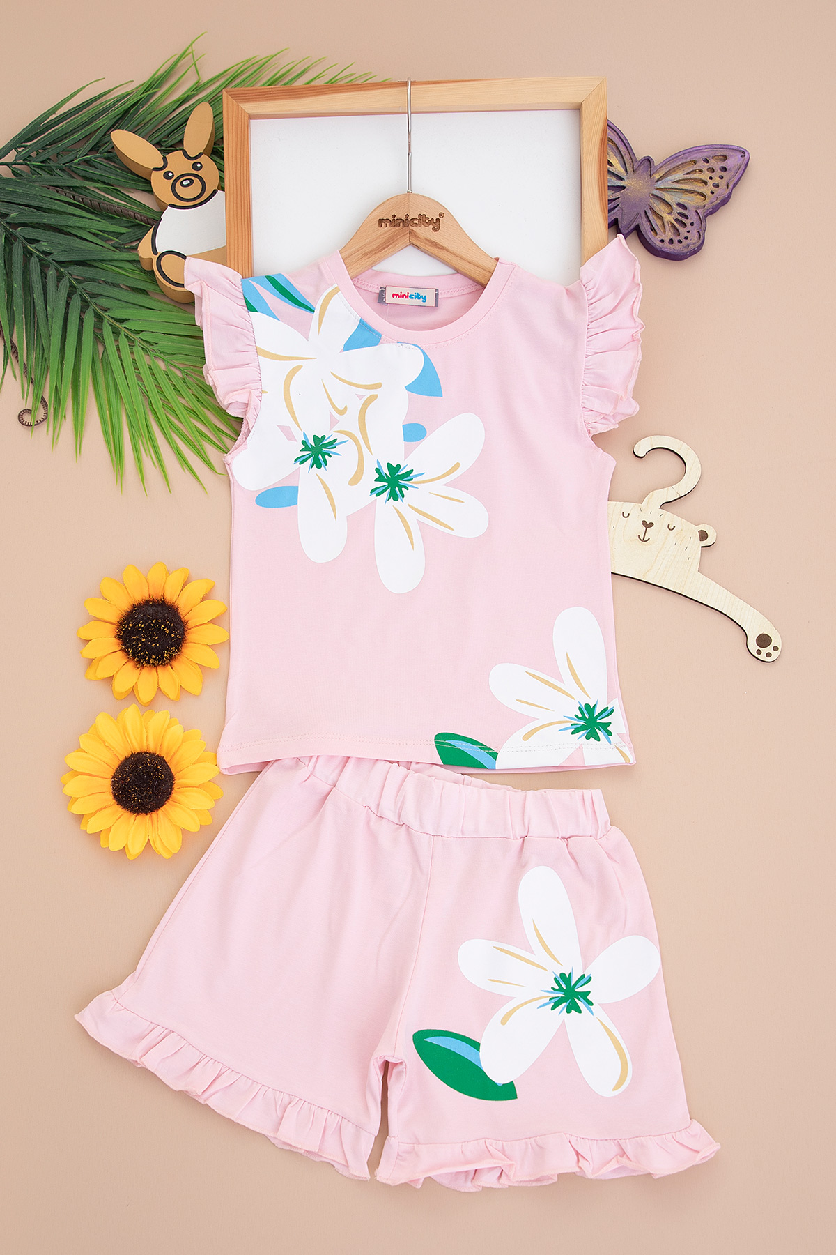 Kız Çocuk Çiçek Baskılı Şortlu Takım - 3840 (3-8 Yaş)