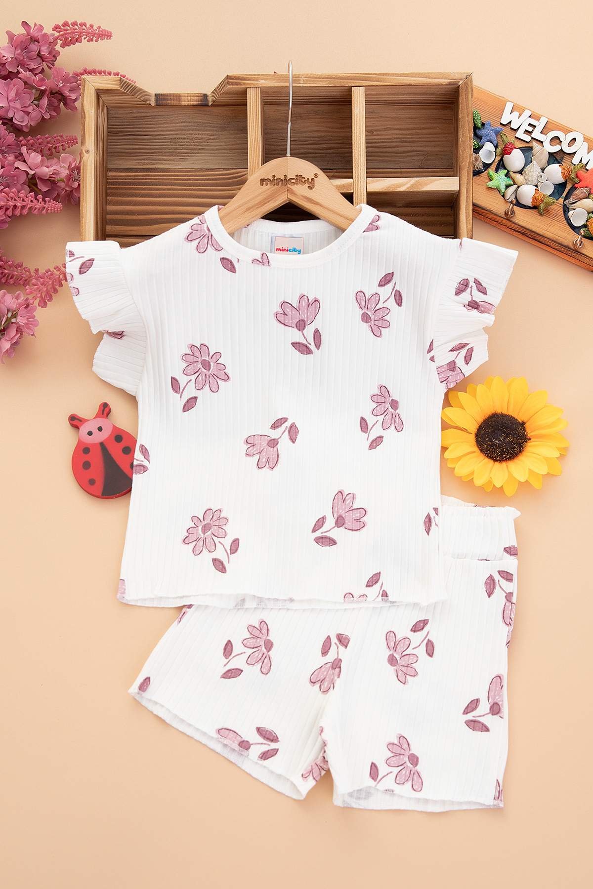 Kız Çocuk Çiçek Baskılı Şortlu Takım - 7634 (3-10 Yaş)
