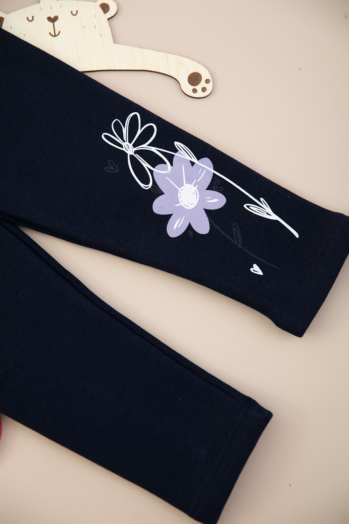 Kız Çocuk Çiçek Baskılı Üçip Tayt - 64504 (4-9 Yaş)
